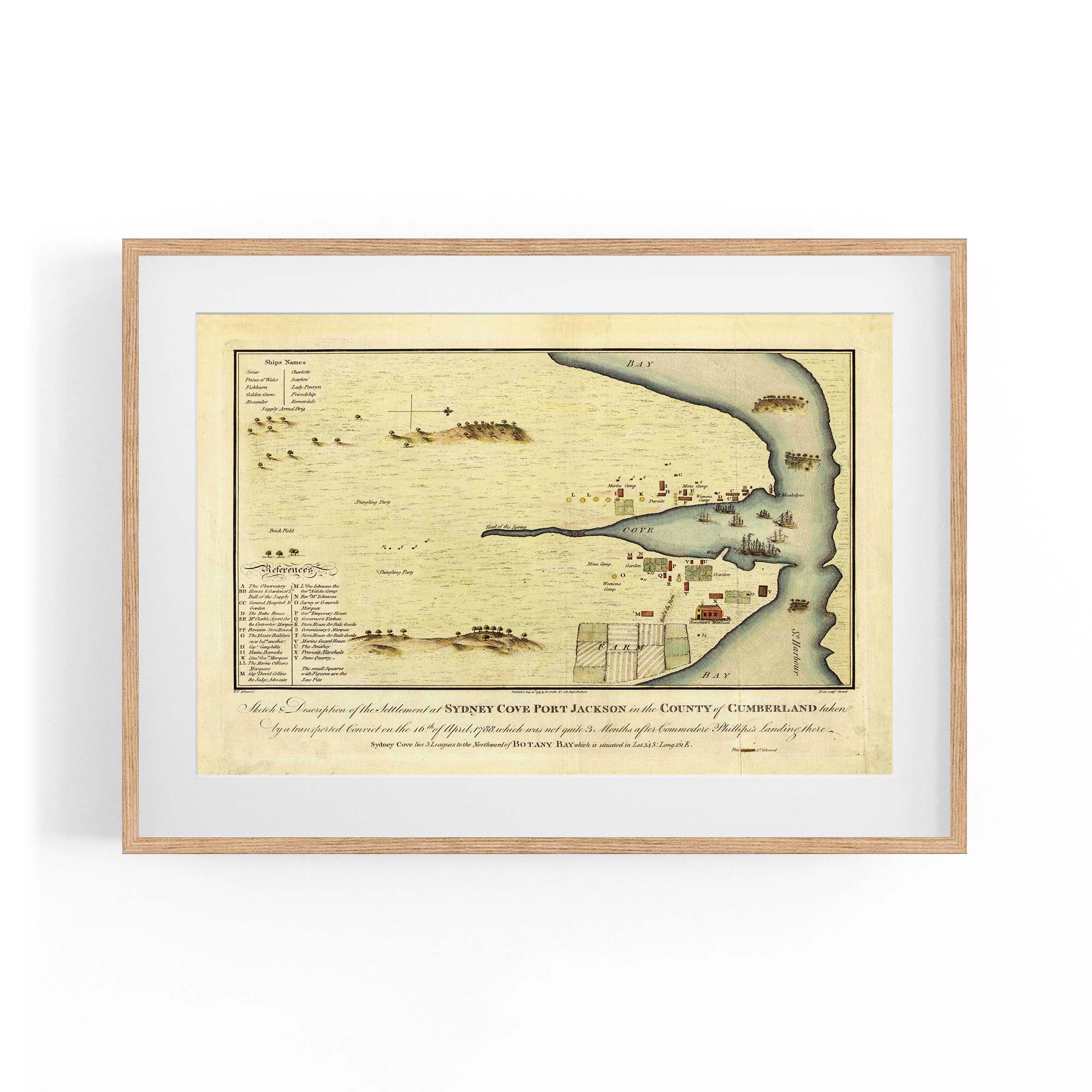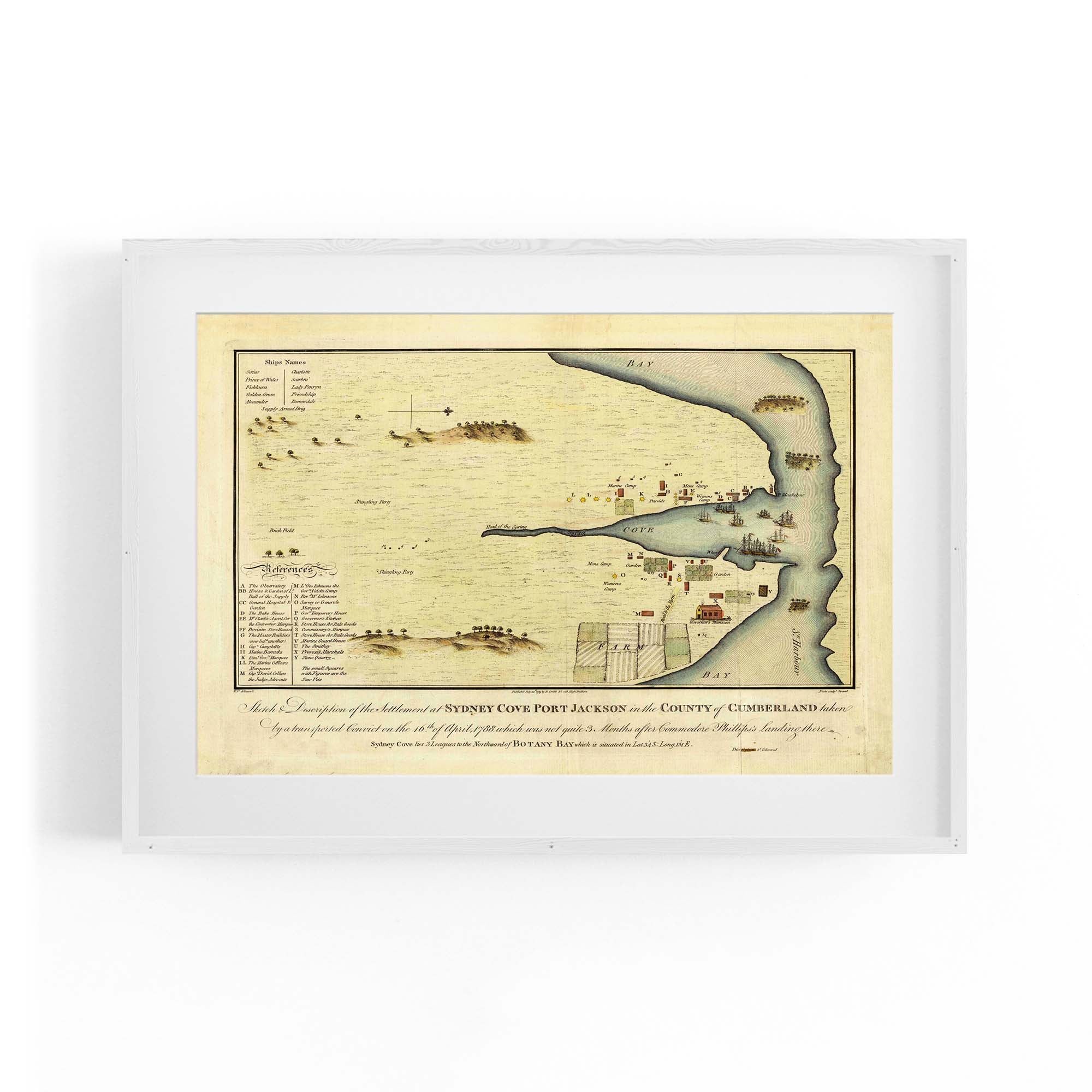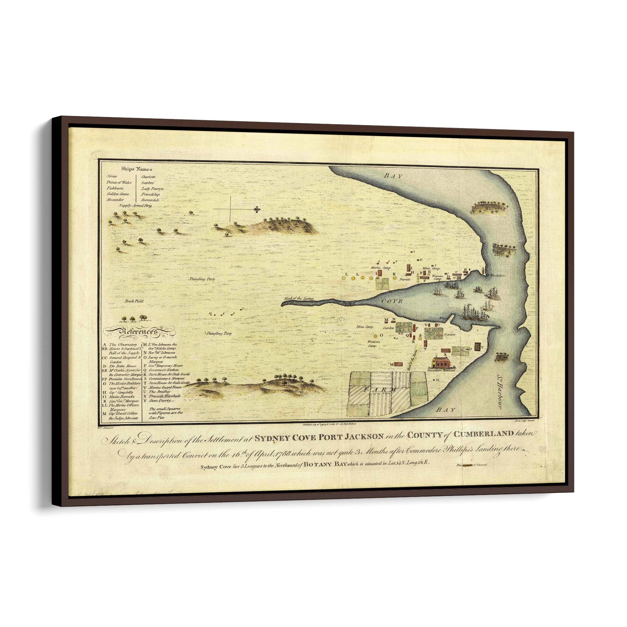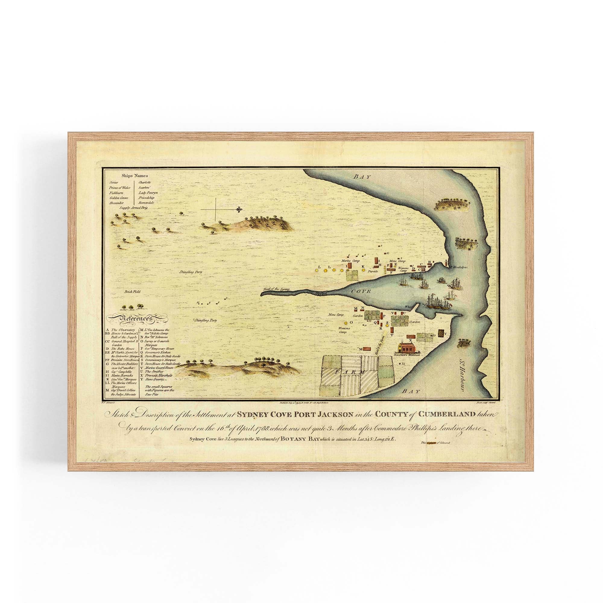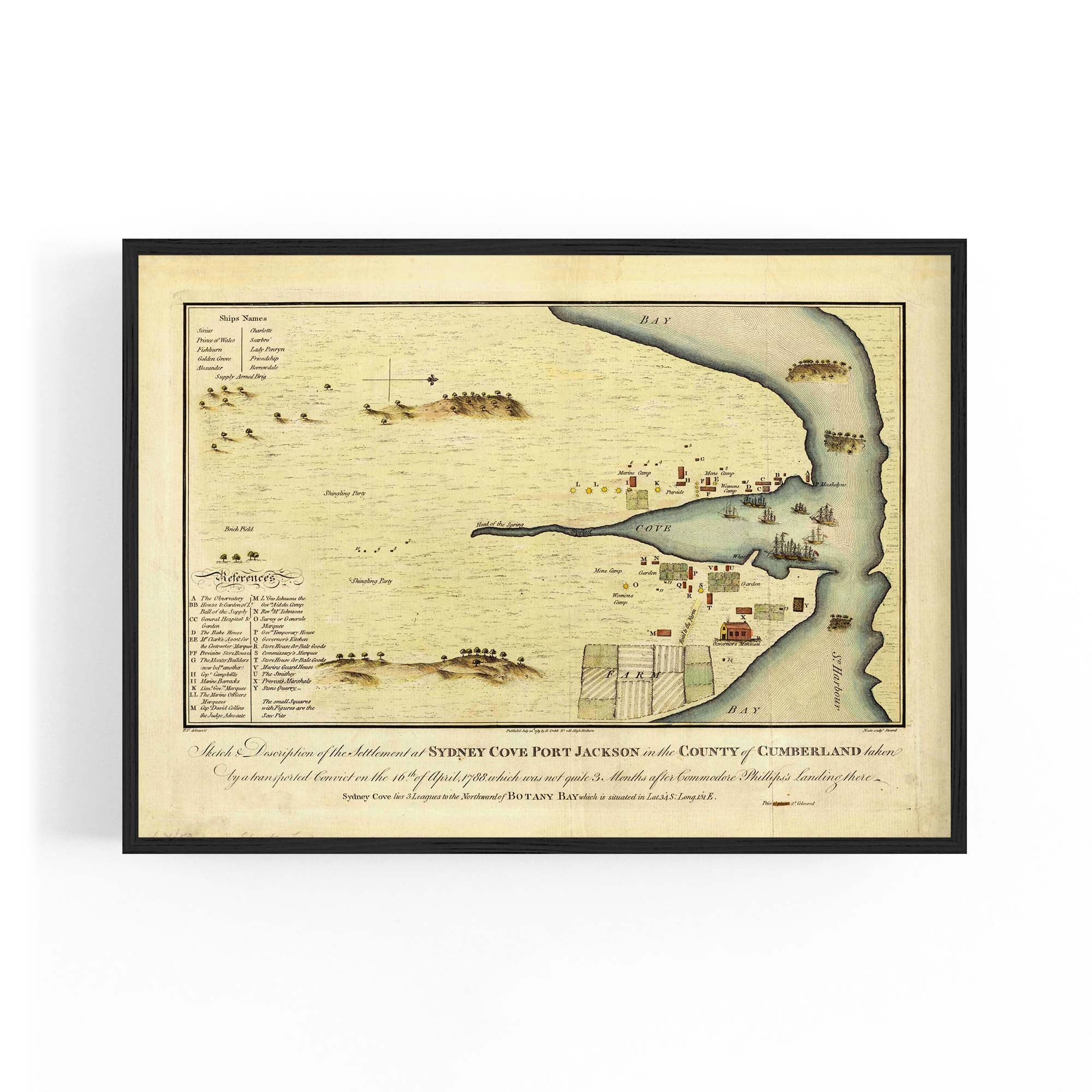 Sketch & description of the settlement at Sydney Cove Port Jackson in the County of Cumberland taken by a transported convict on the 16th of April, 1788, which was not quite 3 months after Commodore Phillips's landing there.