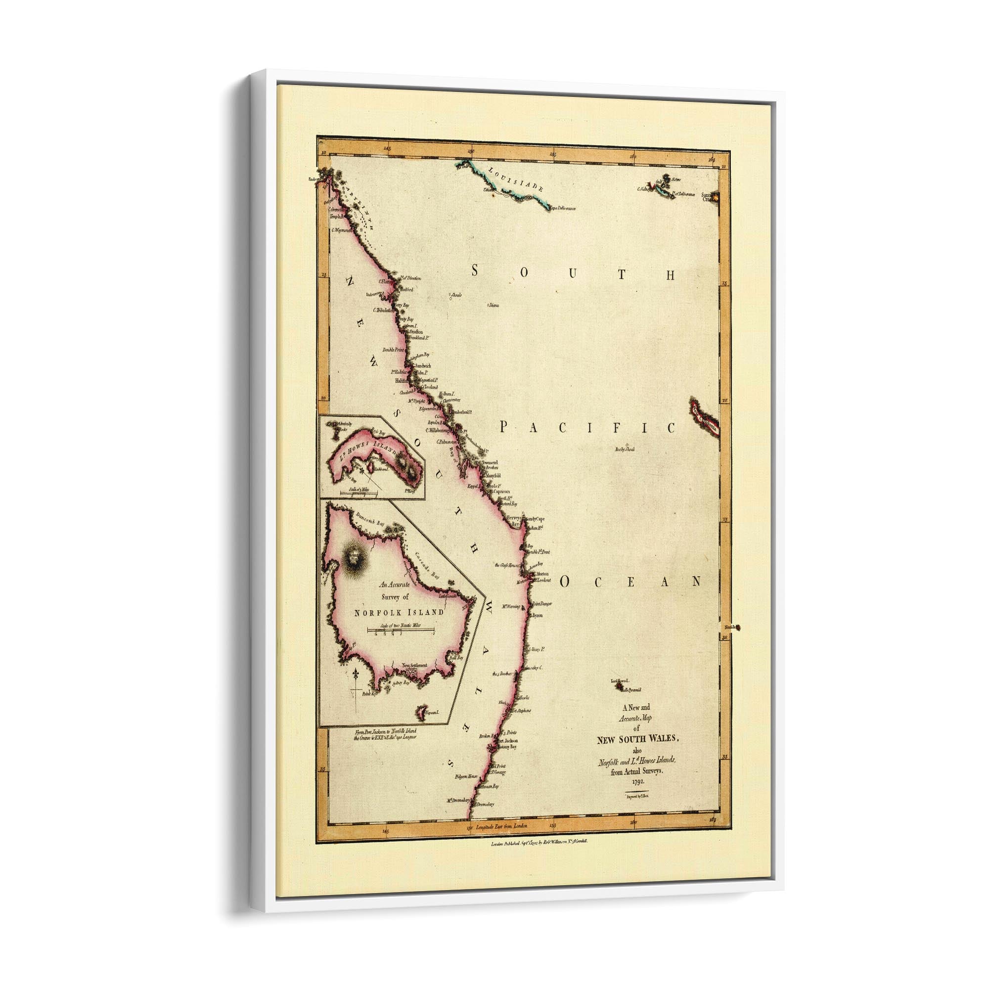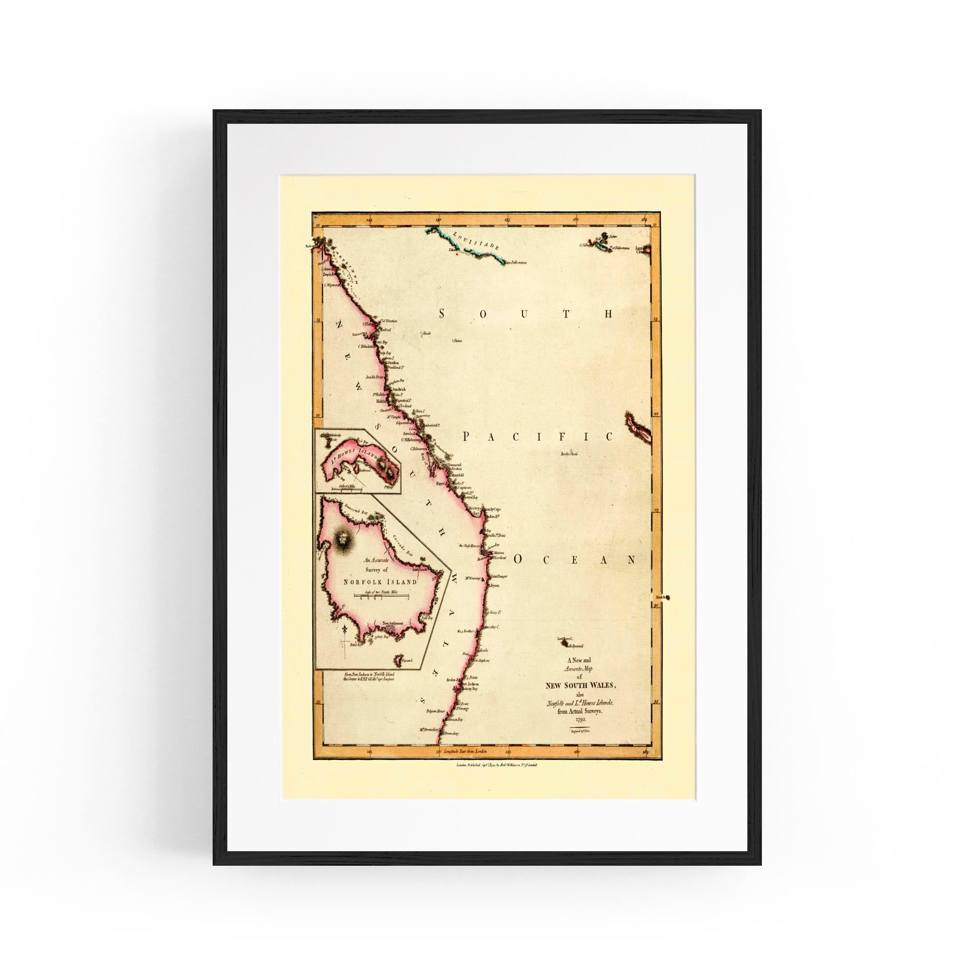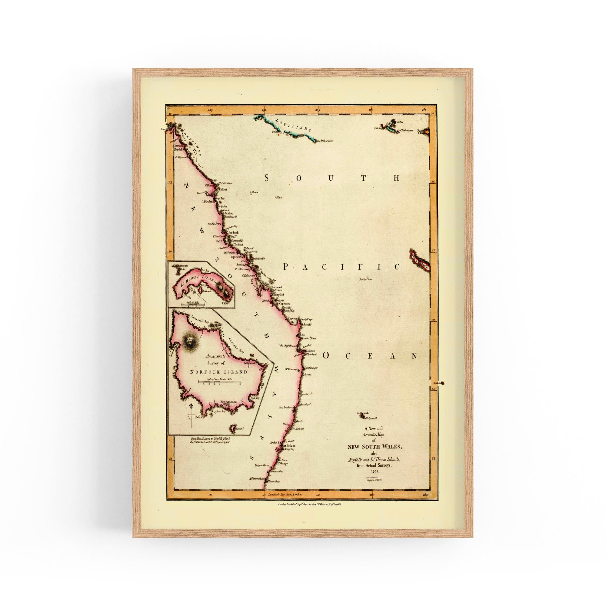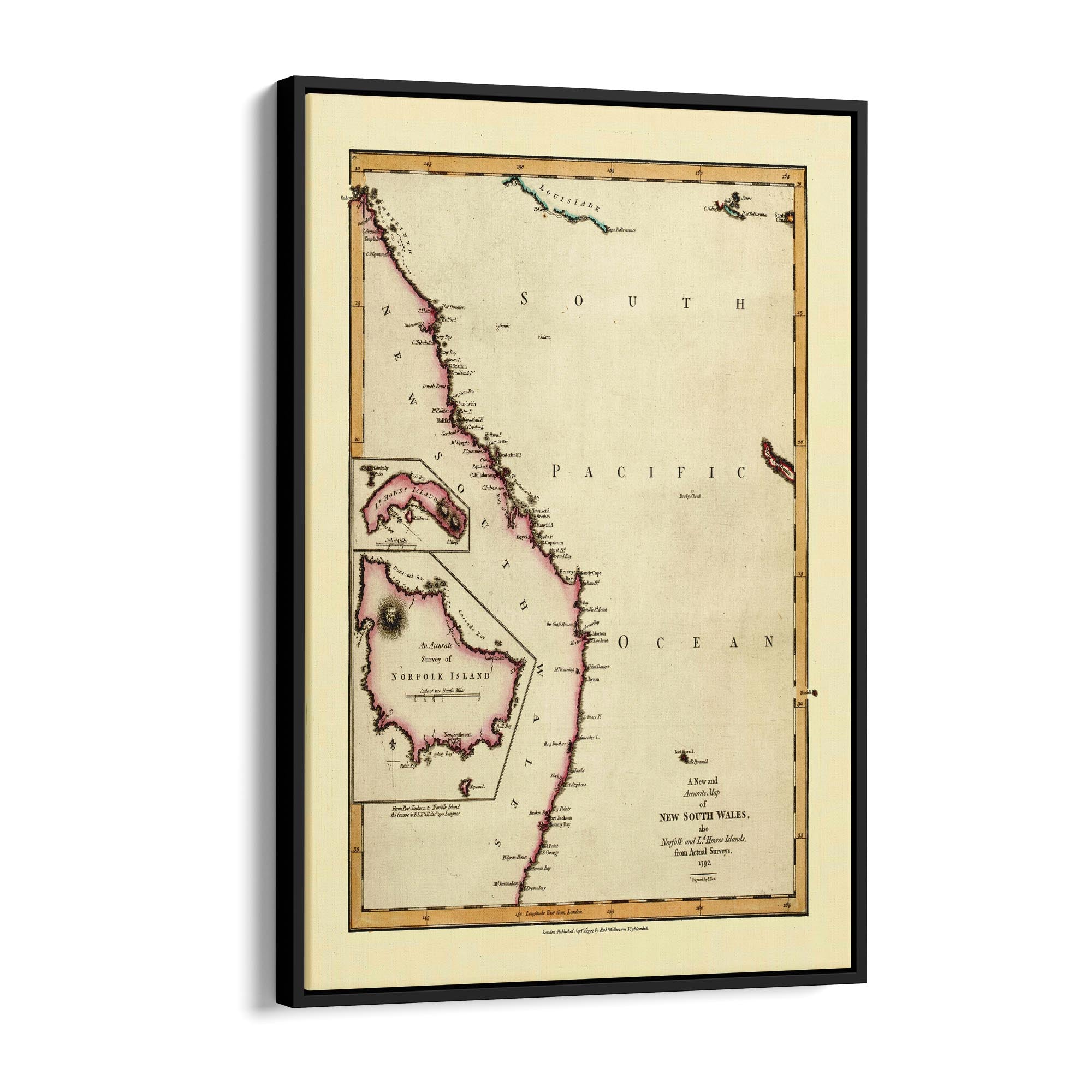 Map of the east coast of Australia with islands of Norfolk, Lord Howe, and New Caledonia. Relief is shown by hachures.