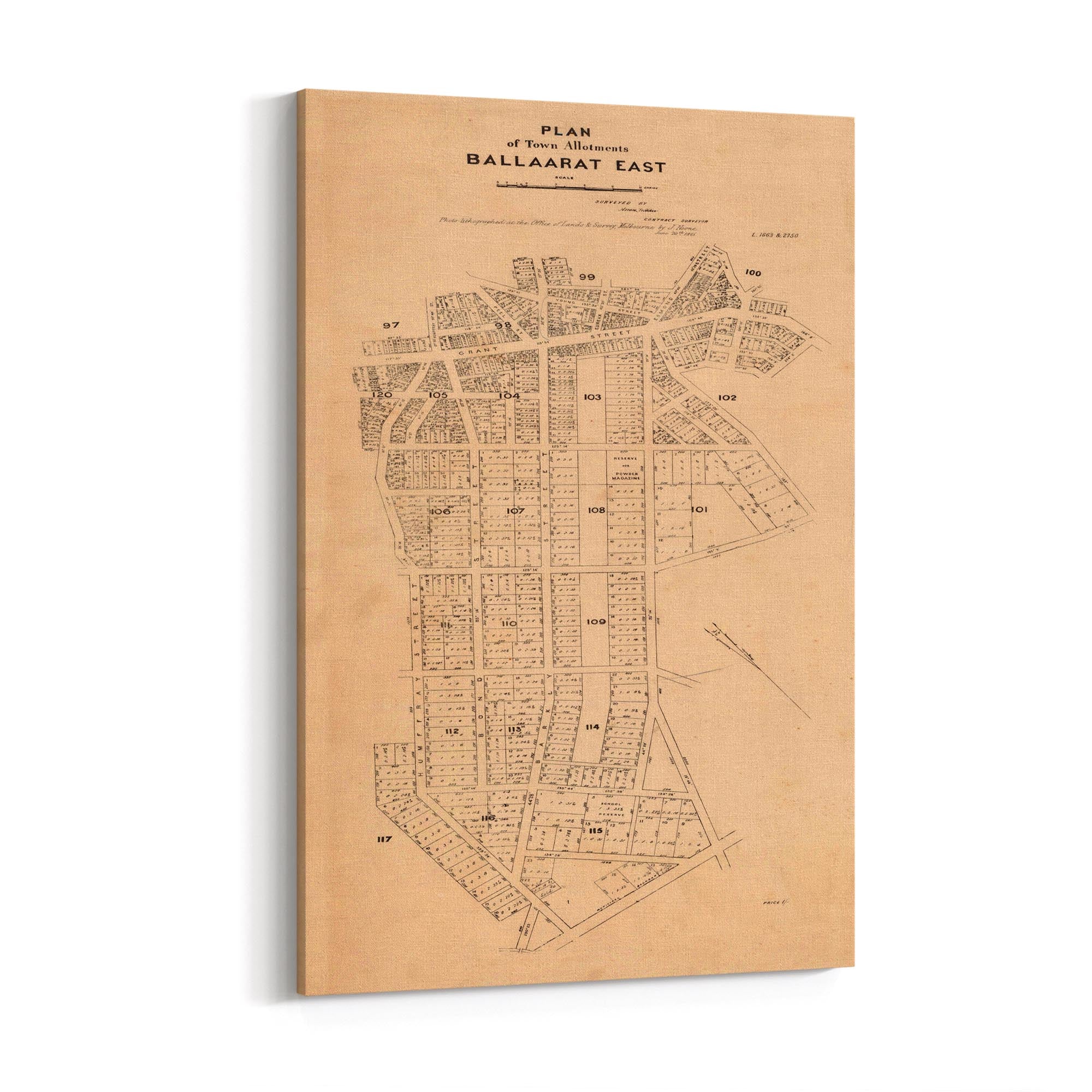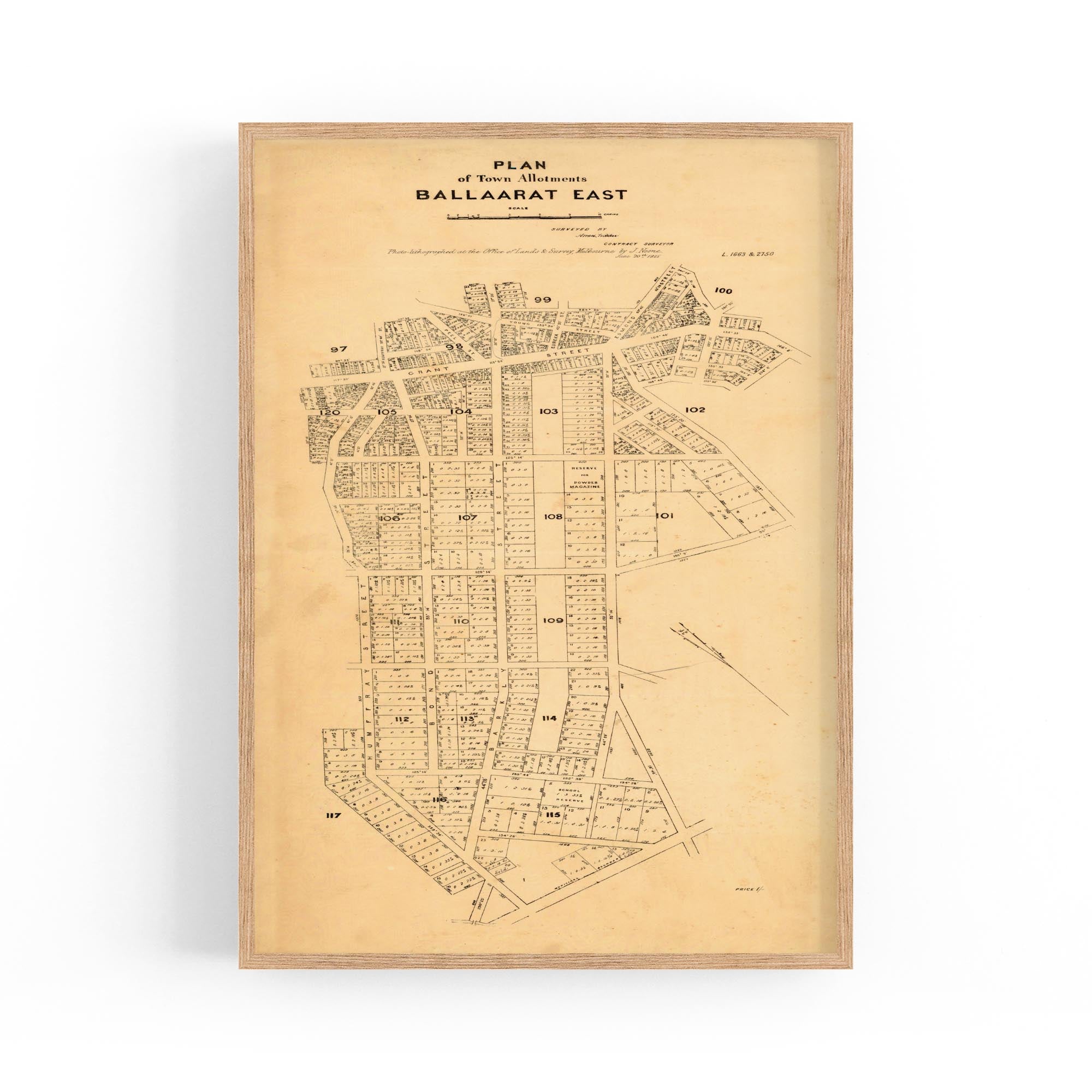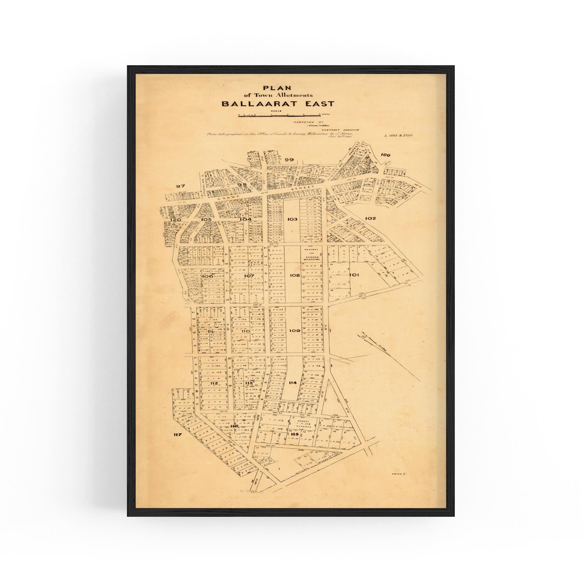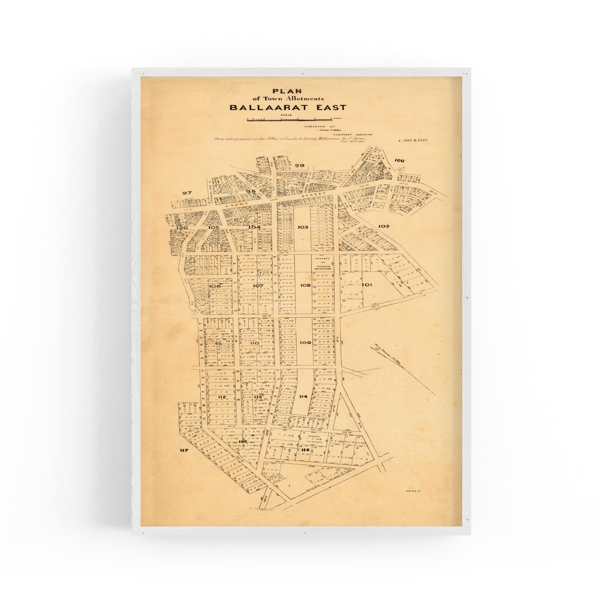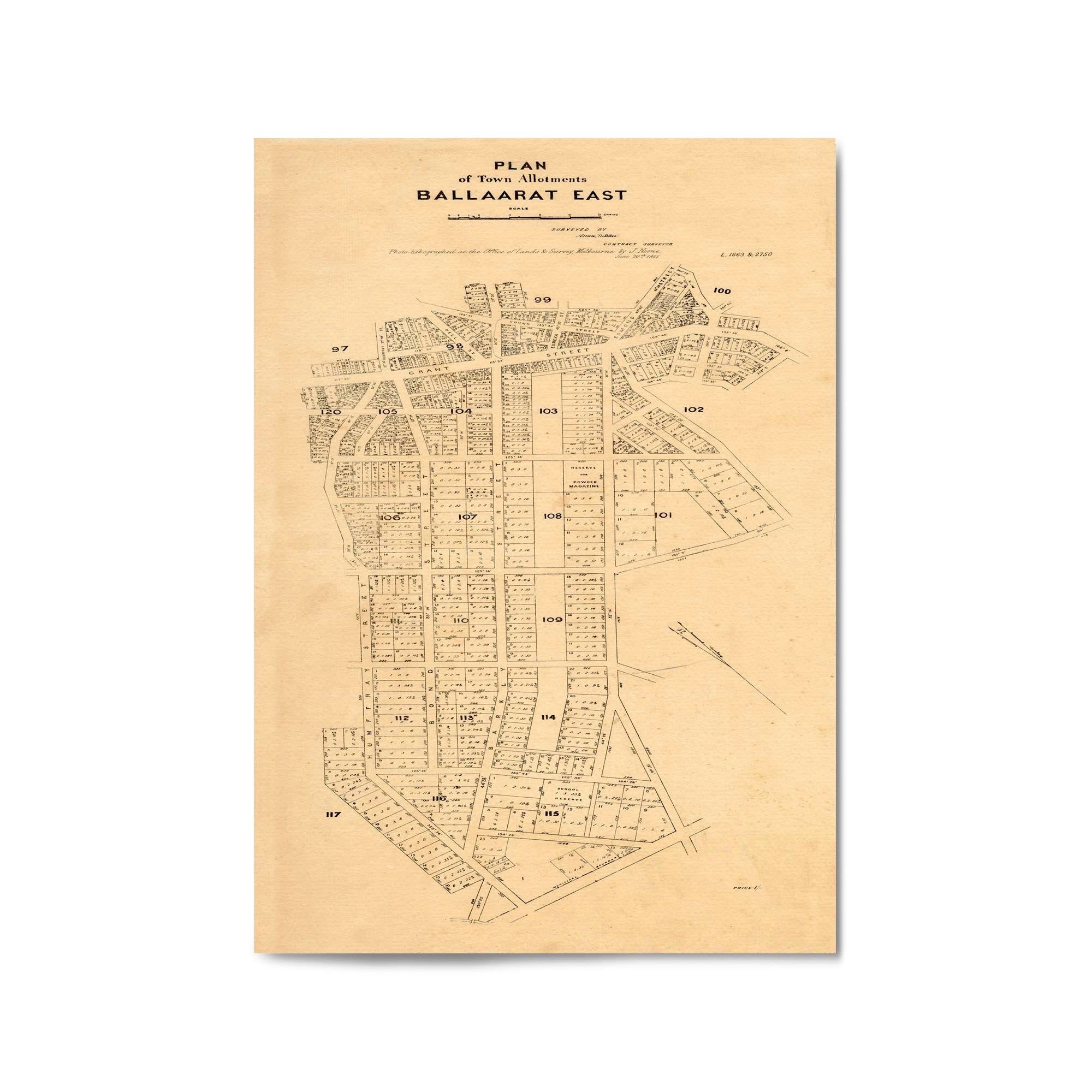 Plan of town allotments, Ballaarat East. Photolithographed at the Office of Lands and Survey by J. Noone.