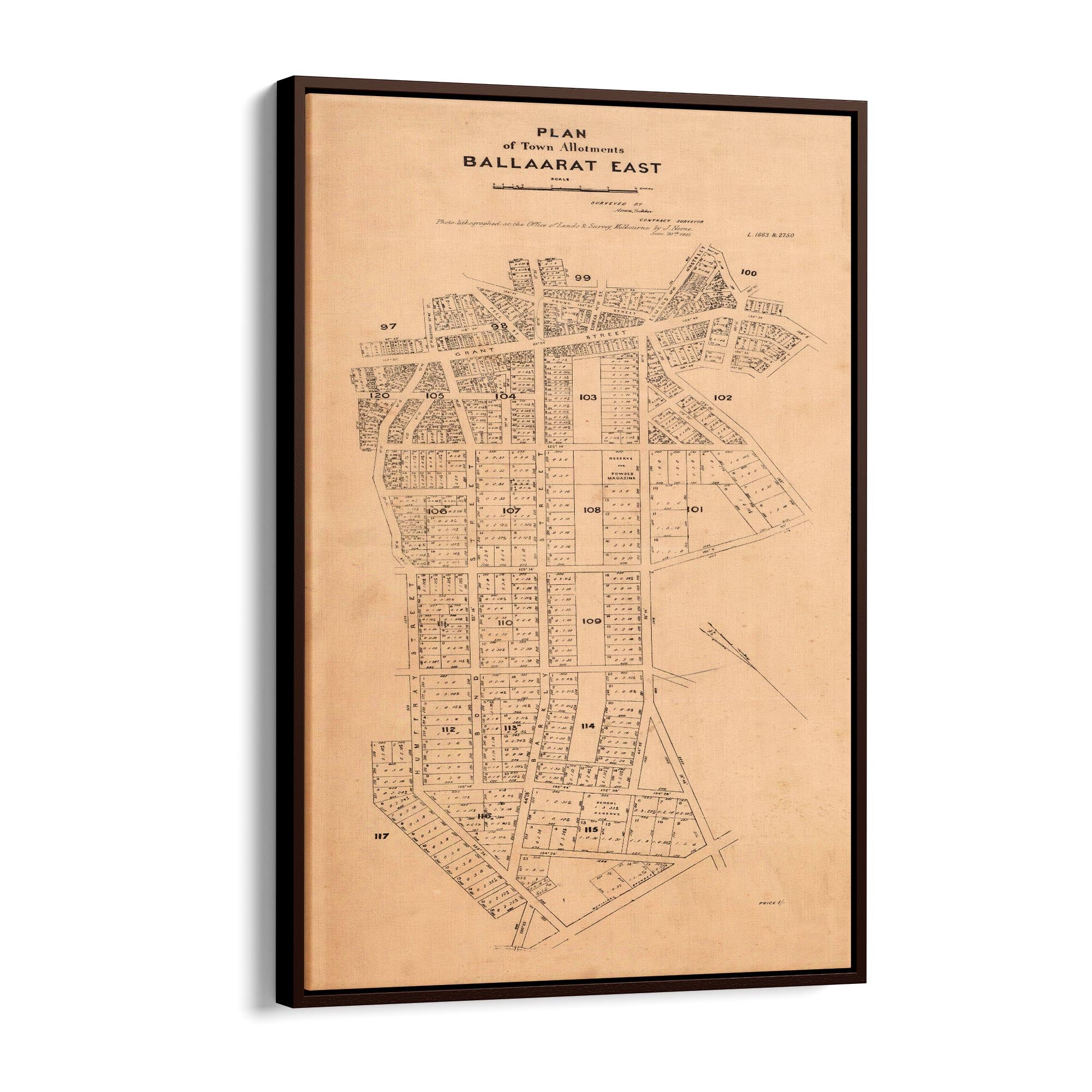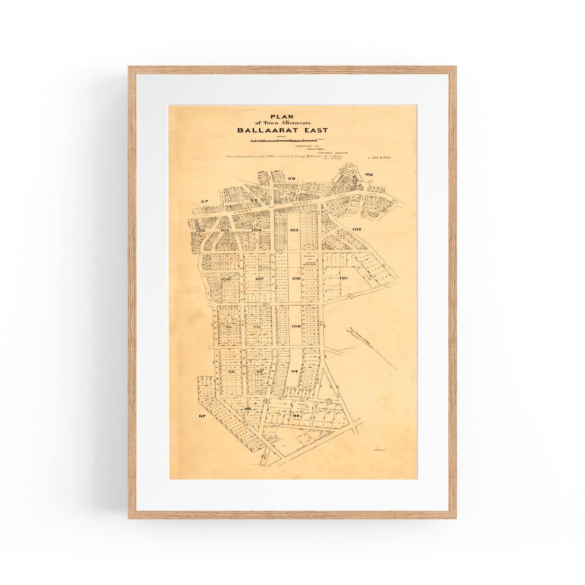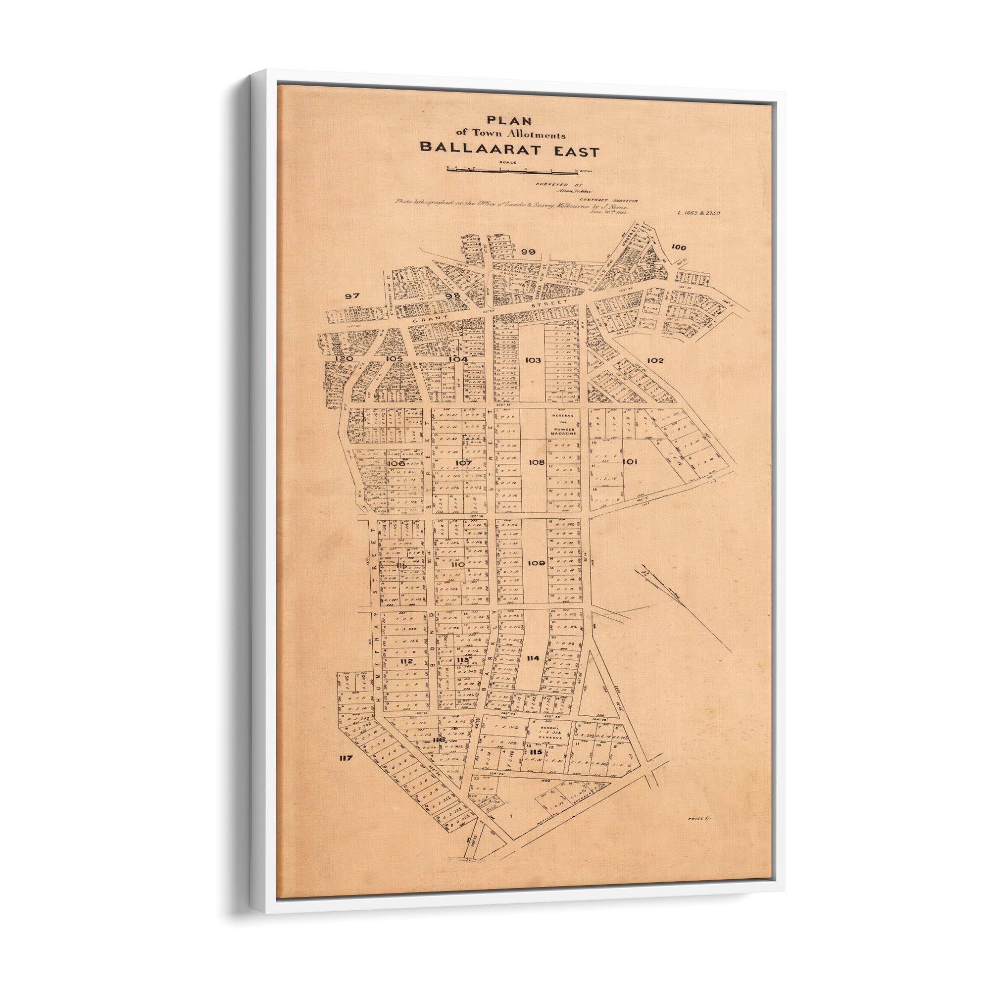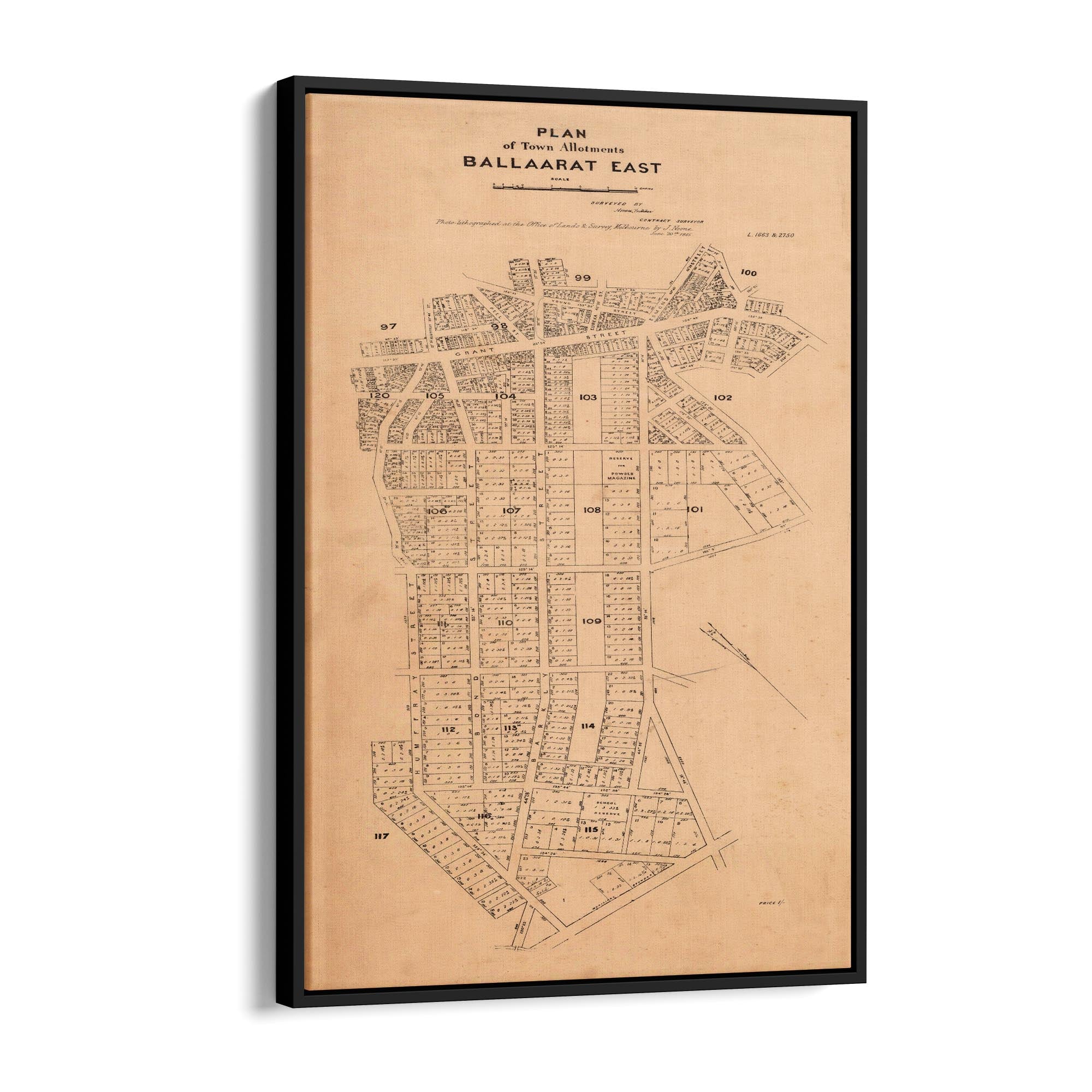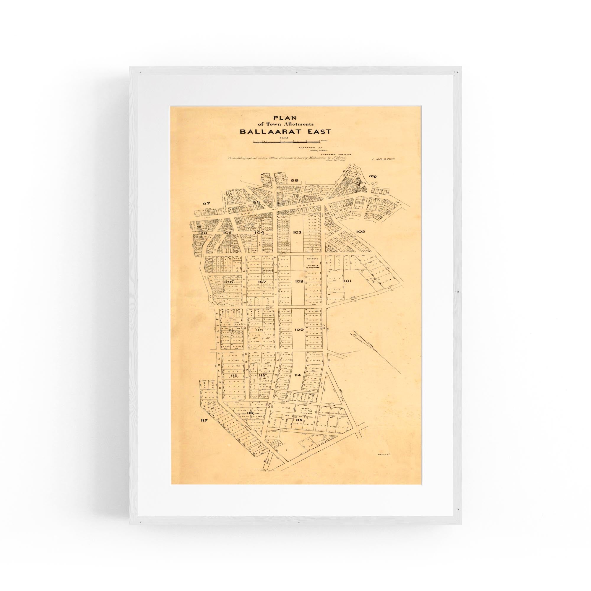 Plan of town allotments, Ballaarat East. Photolithographed at the Office of Lands and Survey by J. Noone.