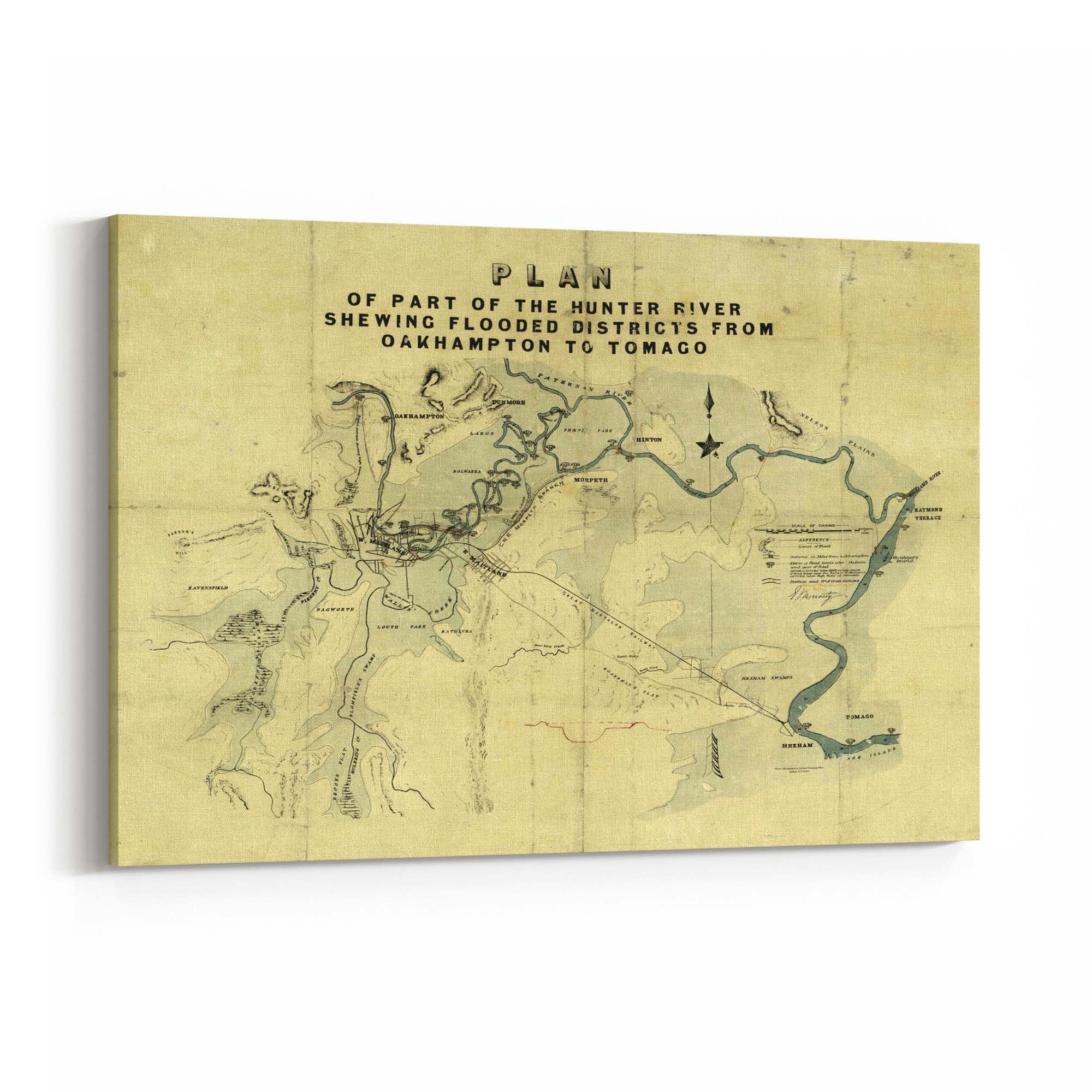 Plan of part of the Hunter River showing flooded districts from Oakhampton to Tomago.