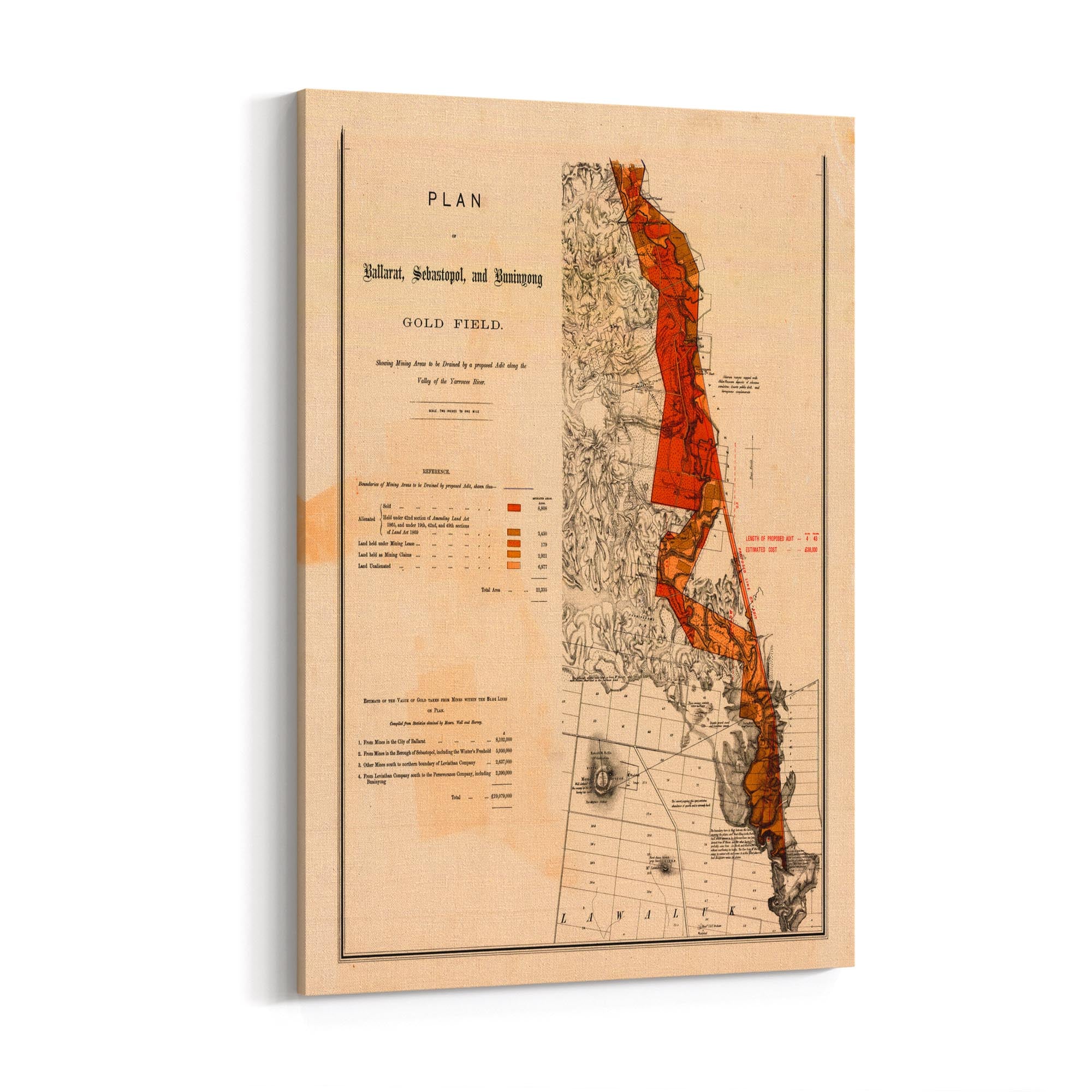 1870's Plan of Ballarat, Sebastopol and Buninyong Gold Field, Victoria