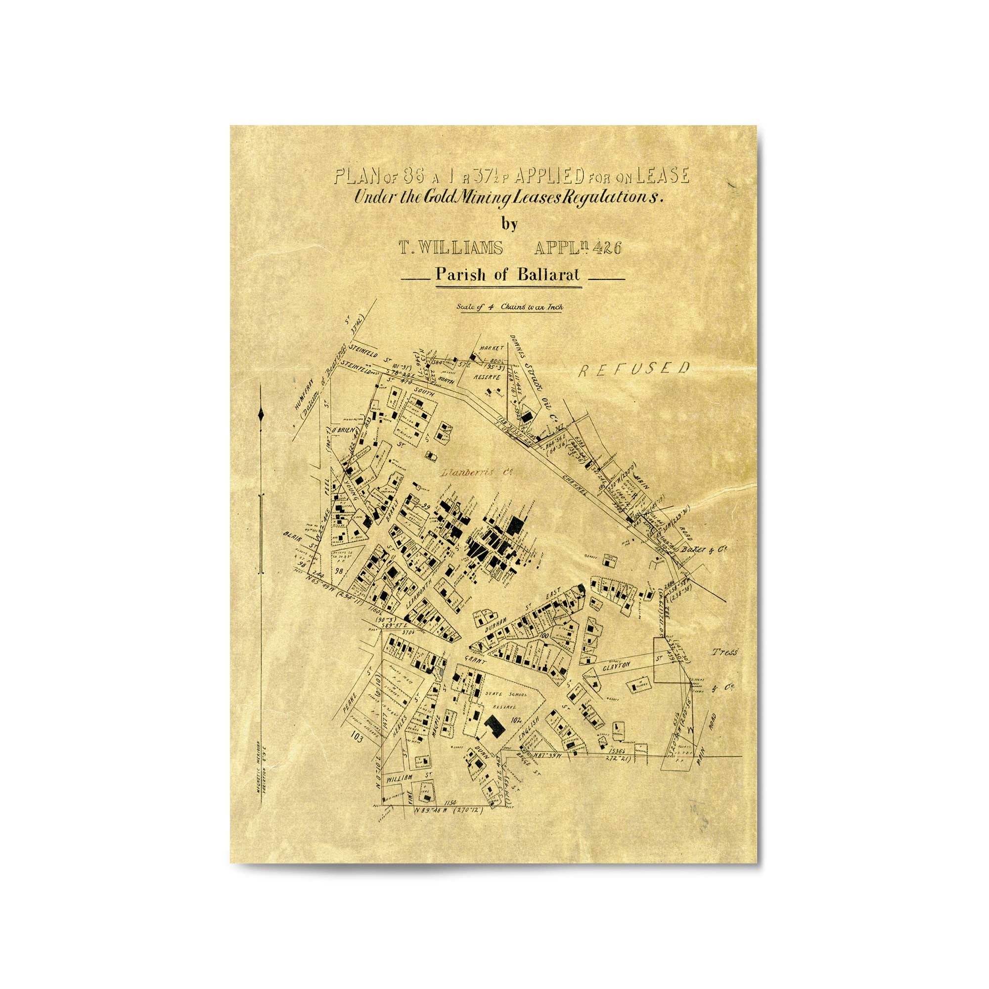 1883 Map of Ballarat Region Gold Mining Leases, Victoria