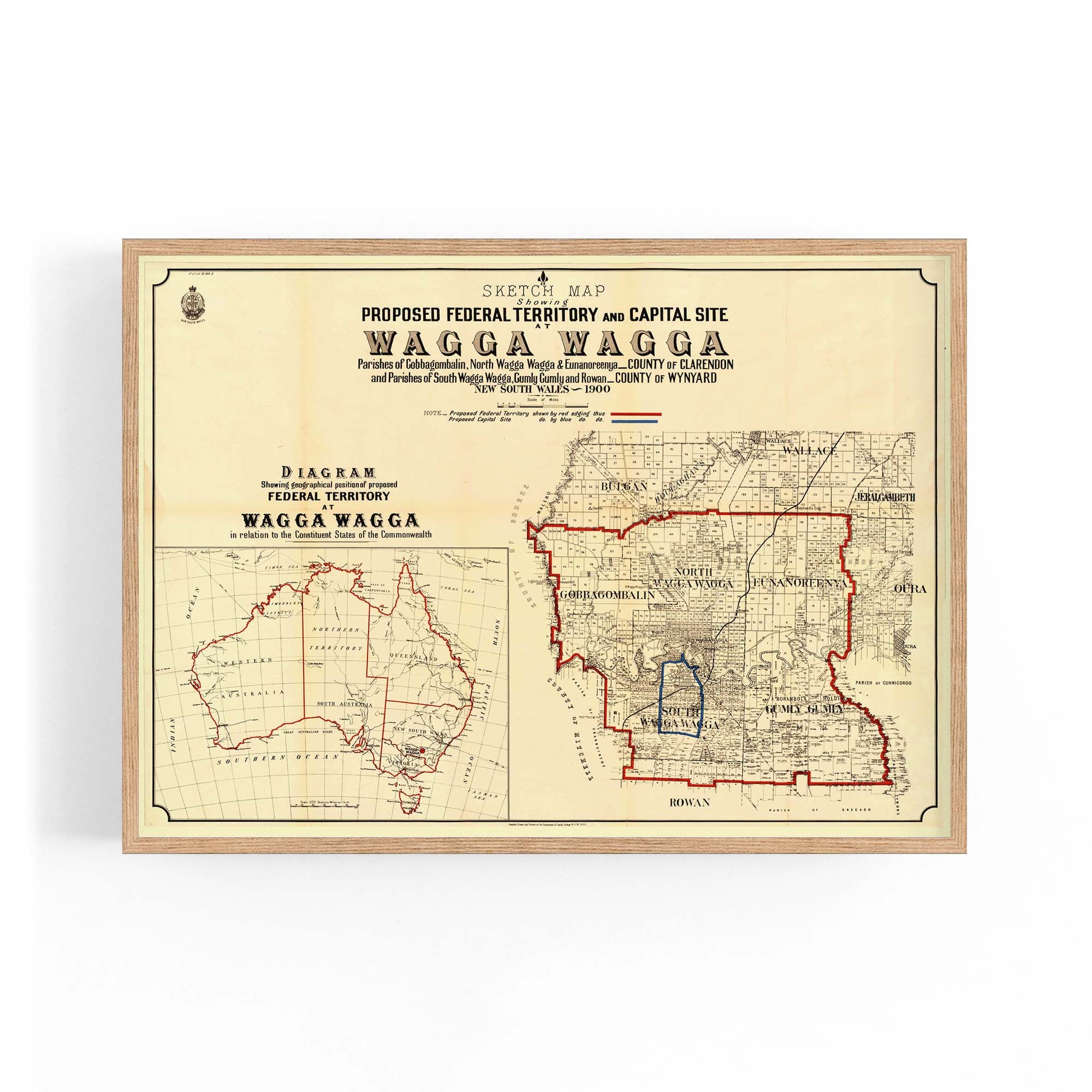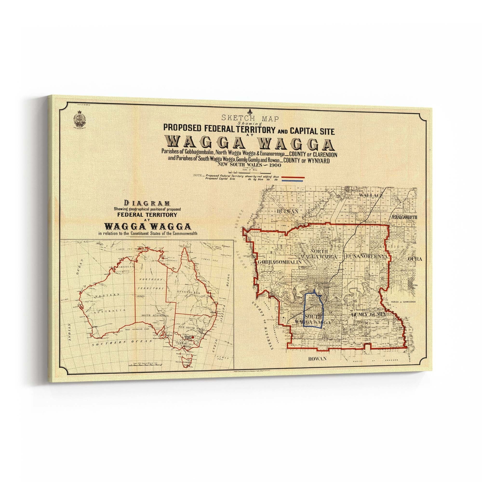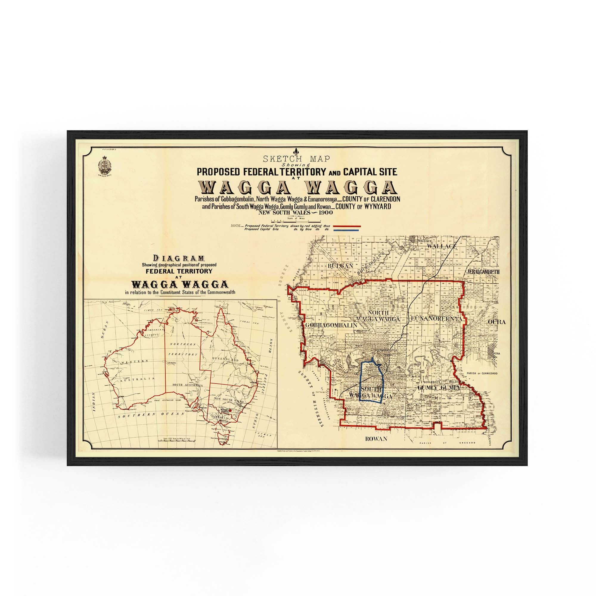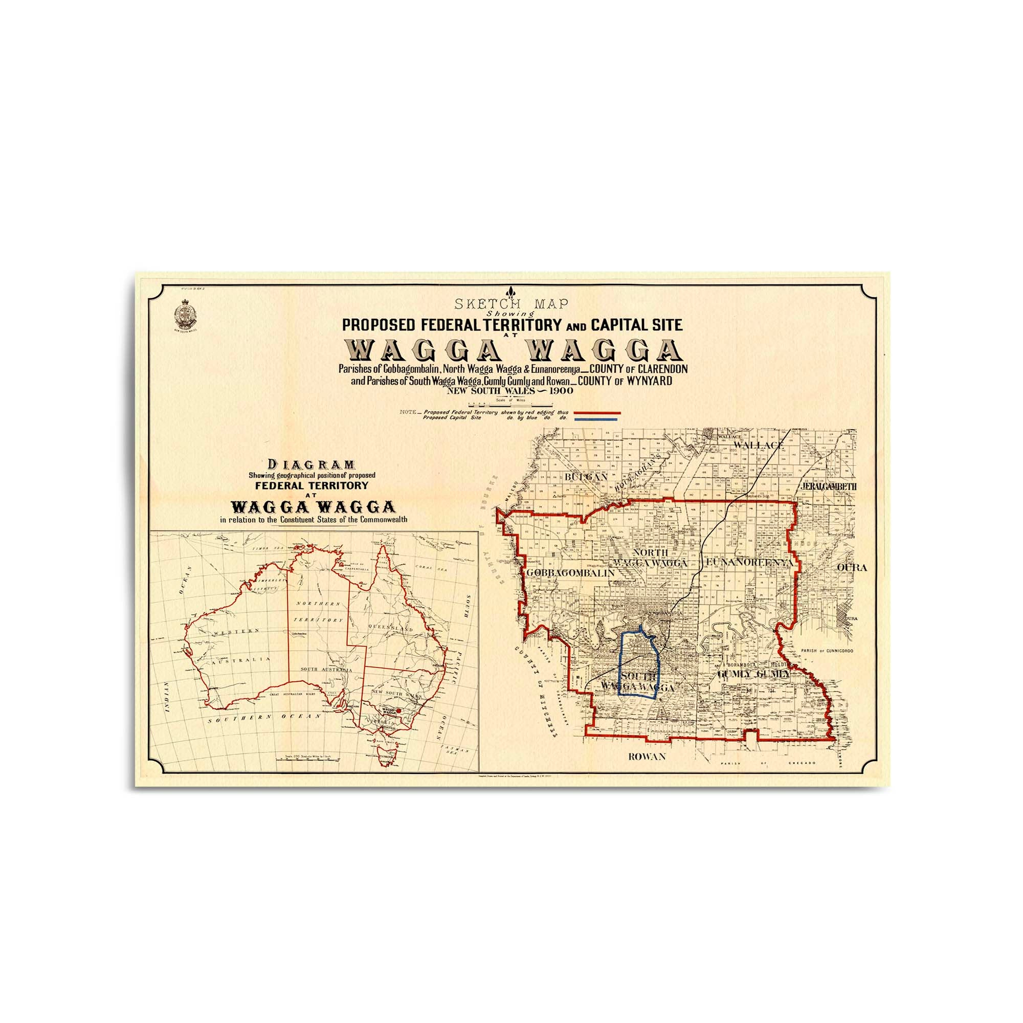 1900 Vintage Map of Wagga Wagga, New South Wales