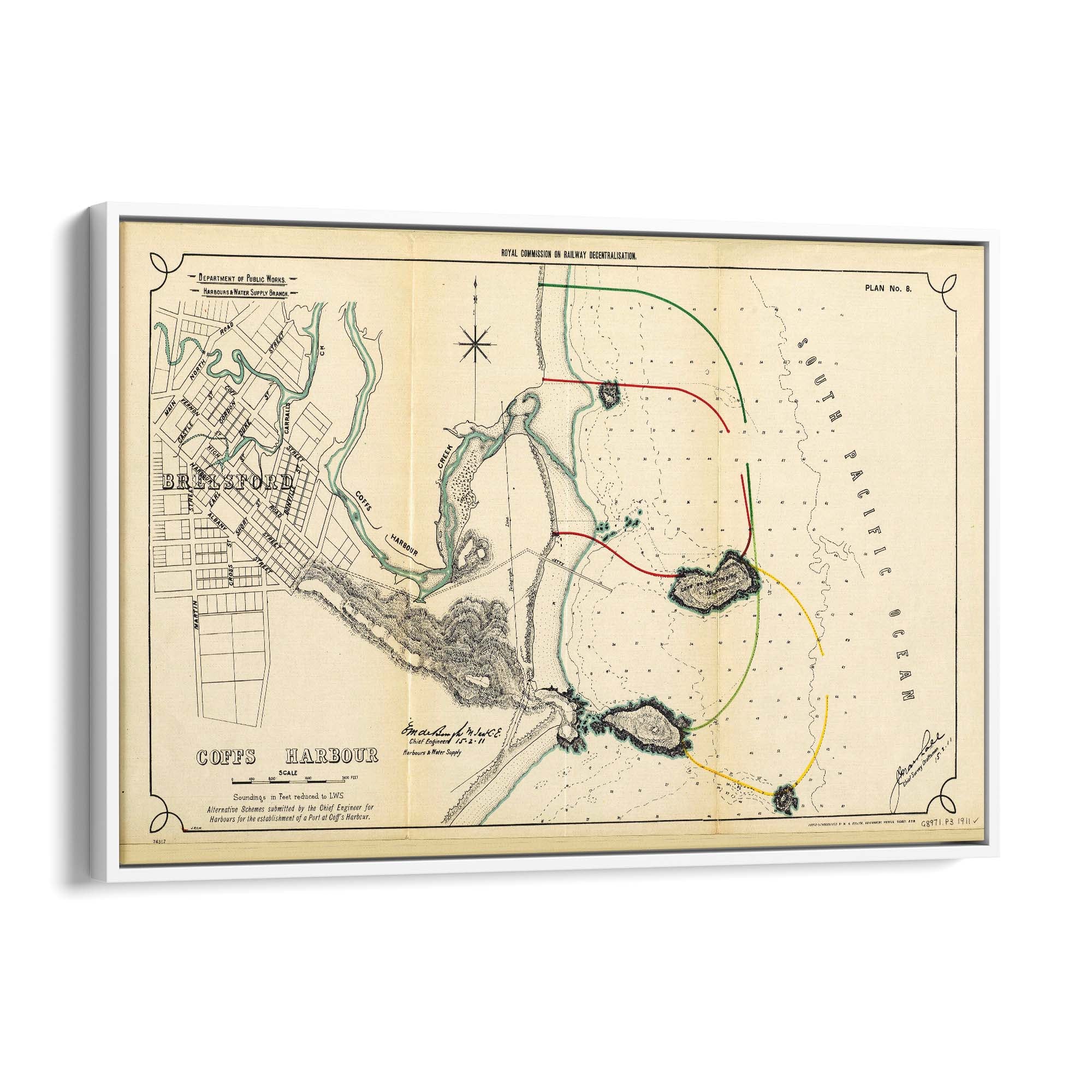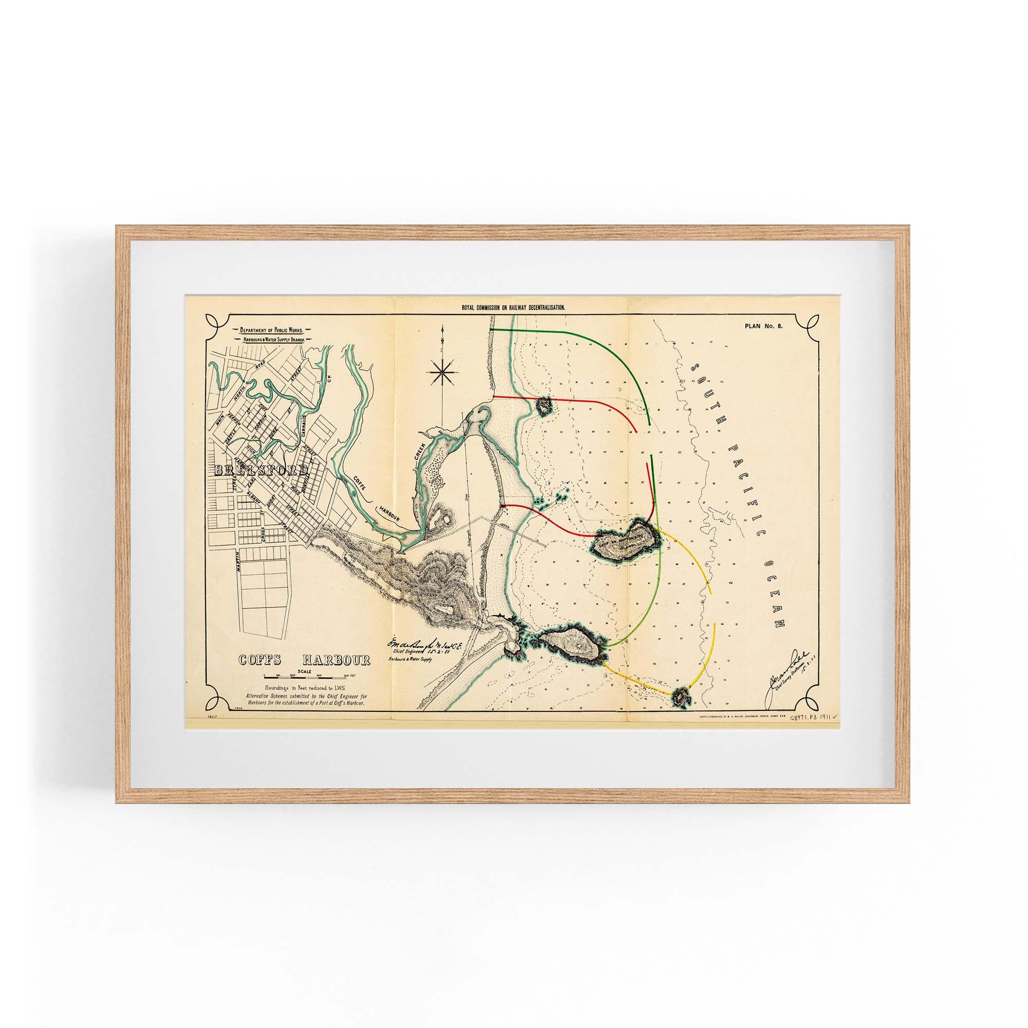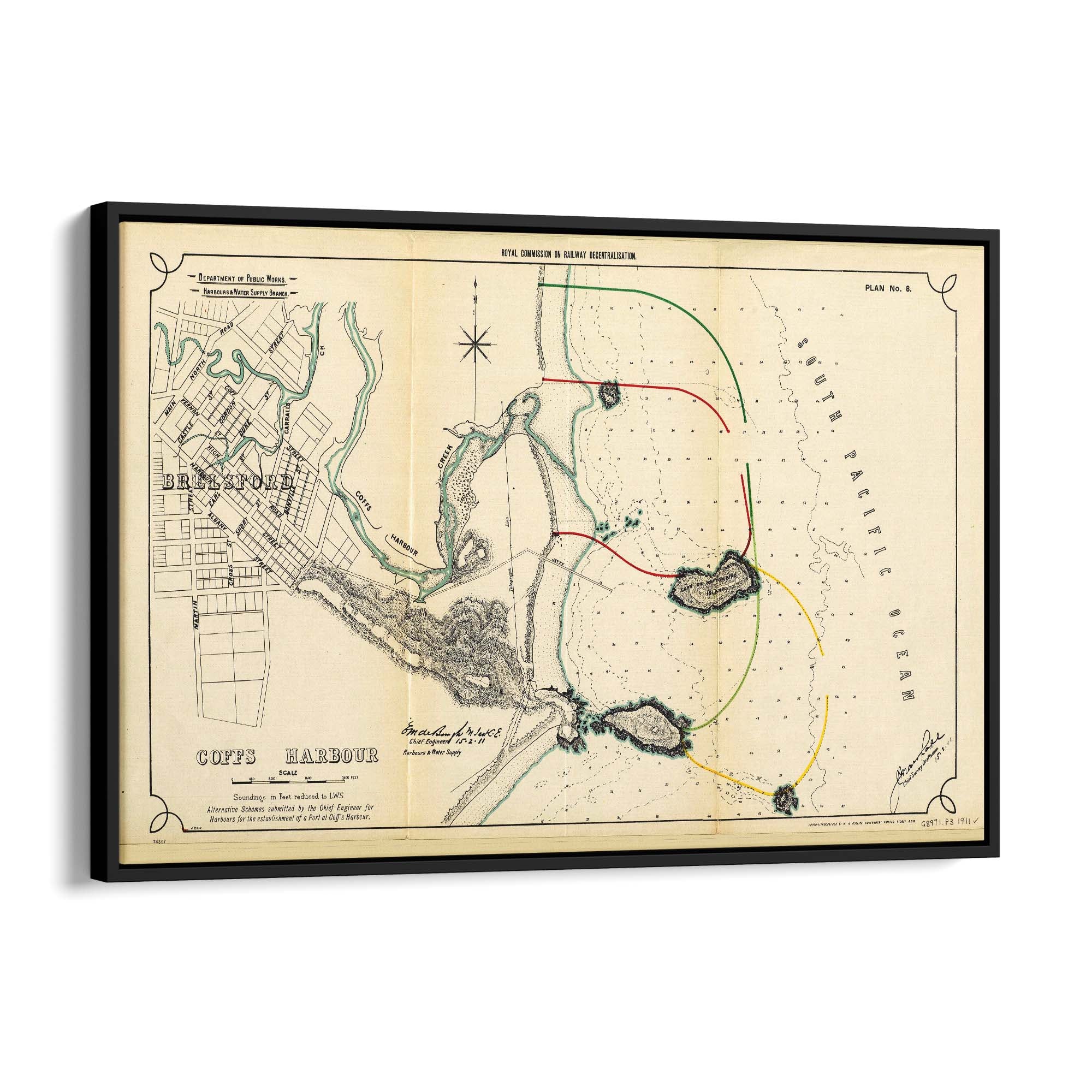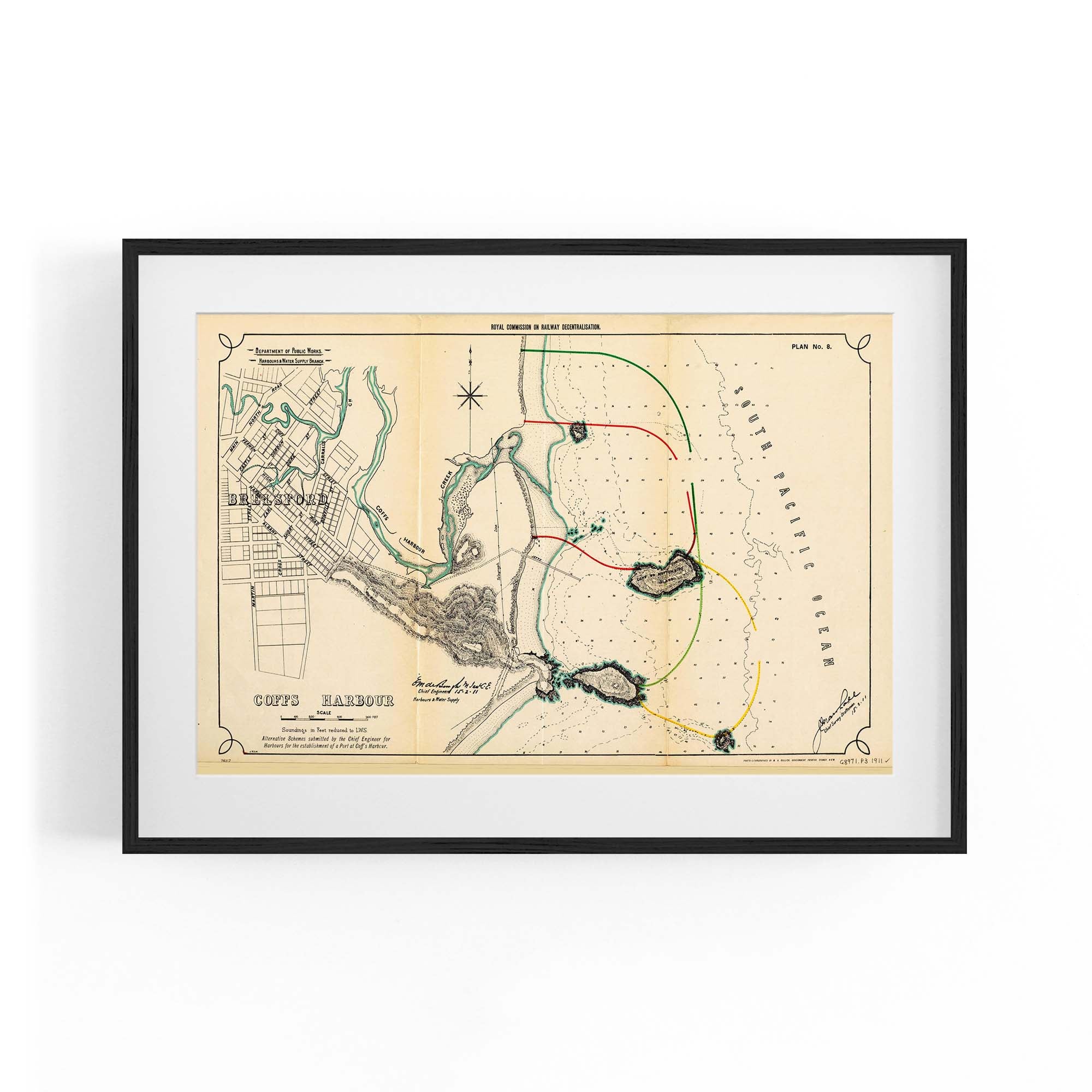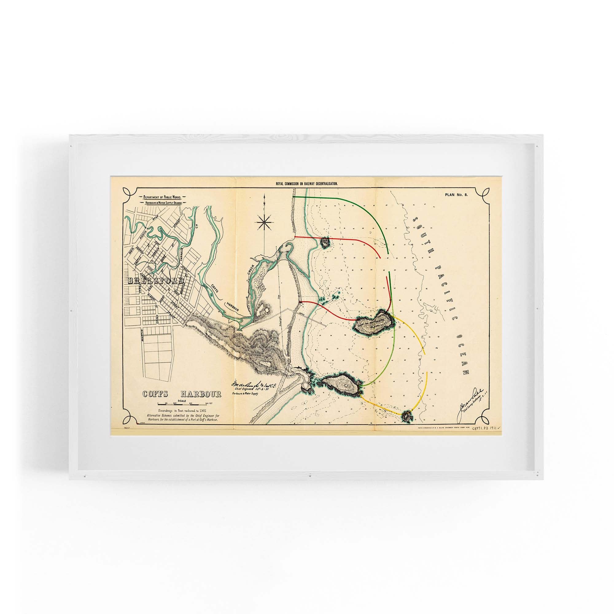 Coffs Harbour. Map showing a proposed plan for a port at Coff's Harbour. Relief is shown by hachures. Depth is shown by soundings.