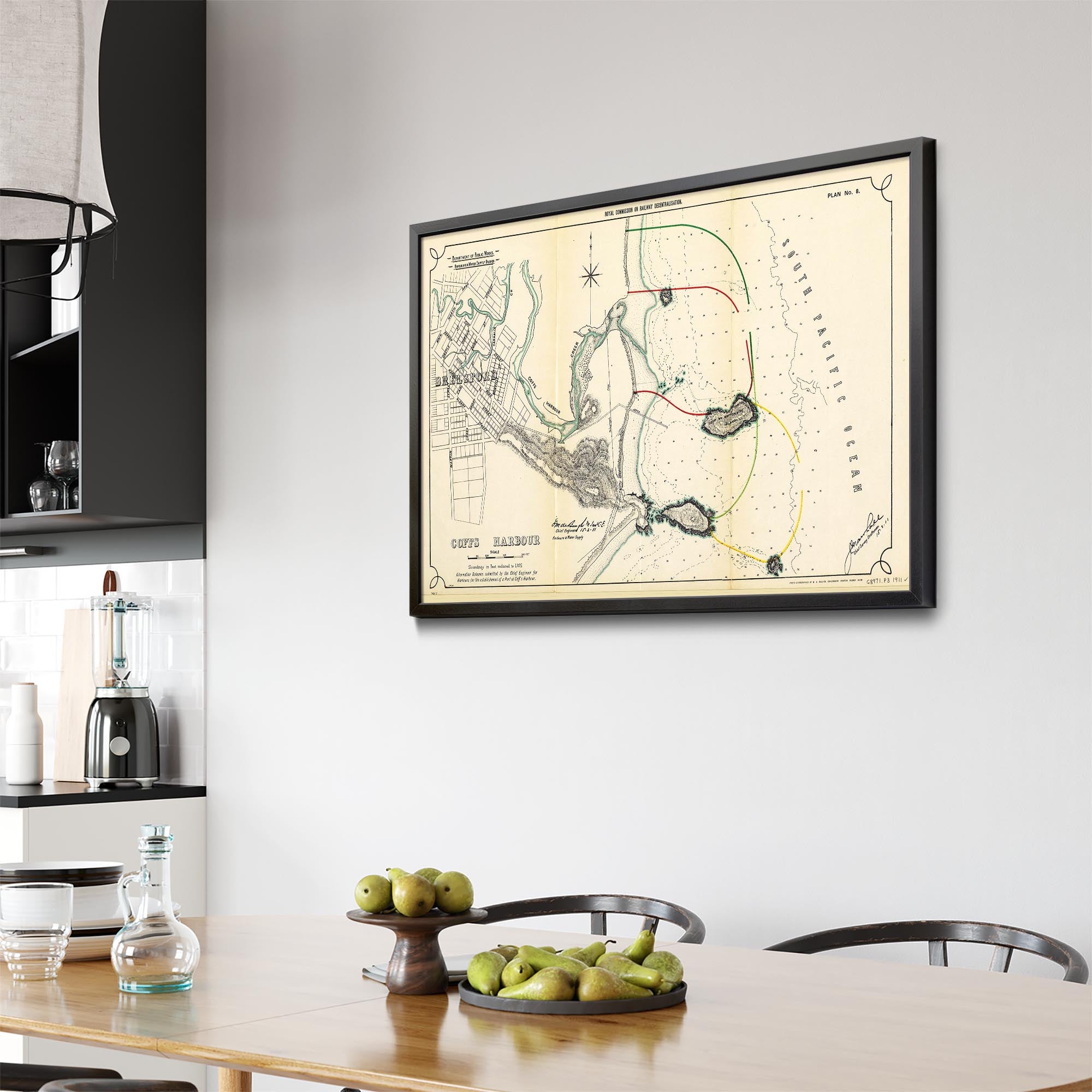 Recently moving to Harcourt and being interested in the history of the area, it seemed fitting to purchase a vintage map of the area which is displayed on our kitchen wall for us to study easily, identifying the block of land we bought. Nicely framed too.