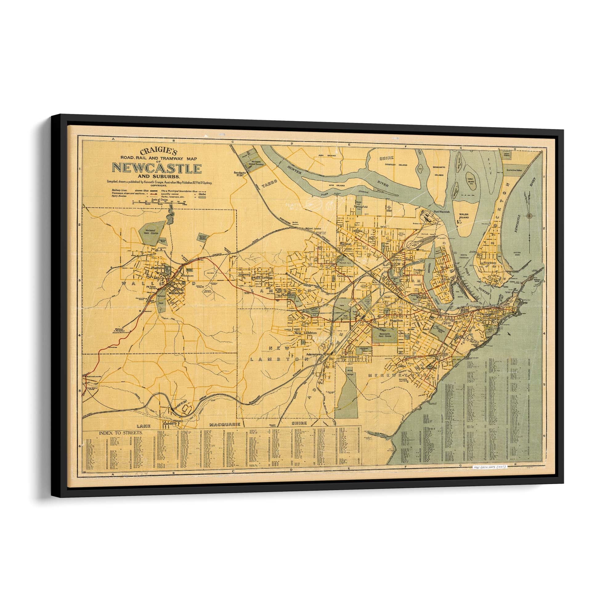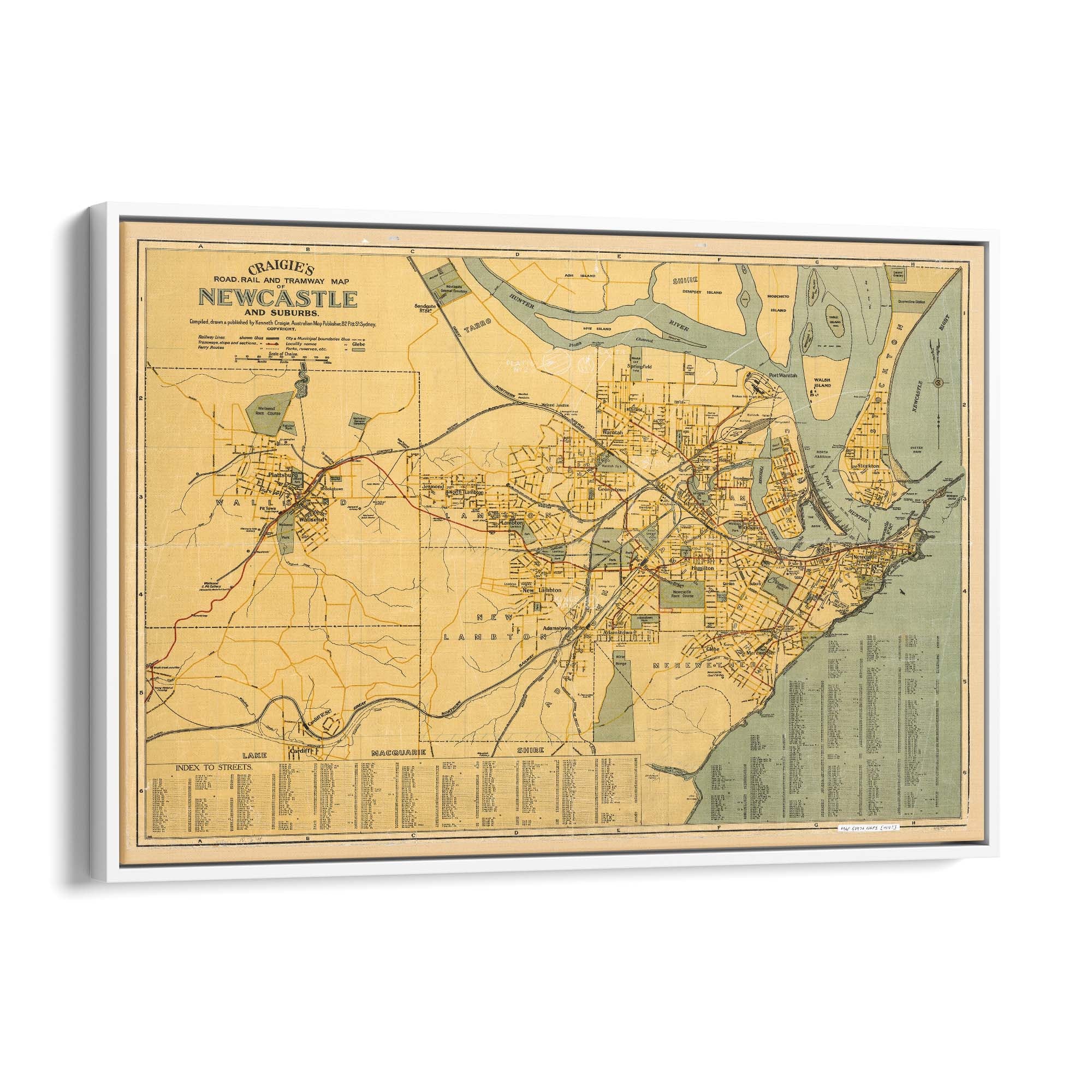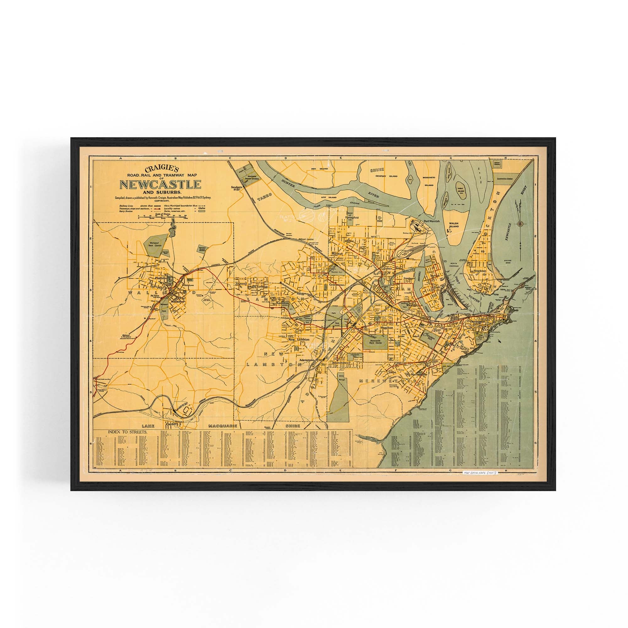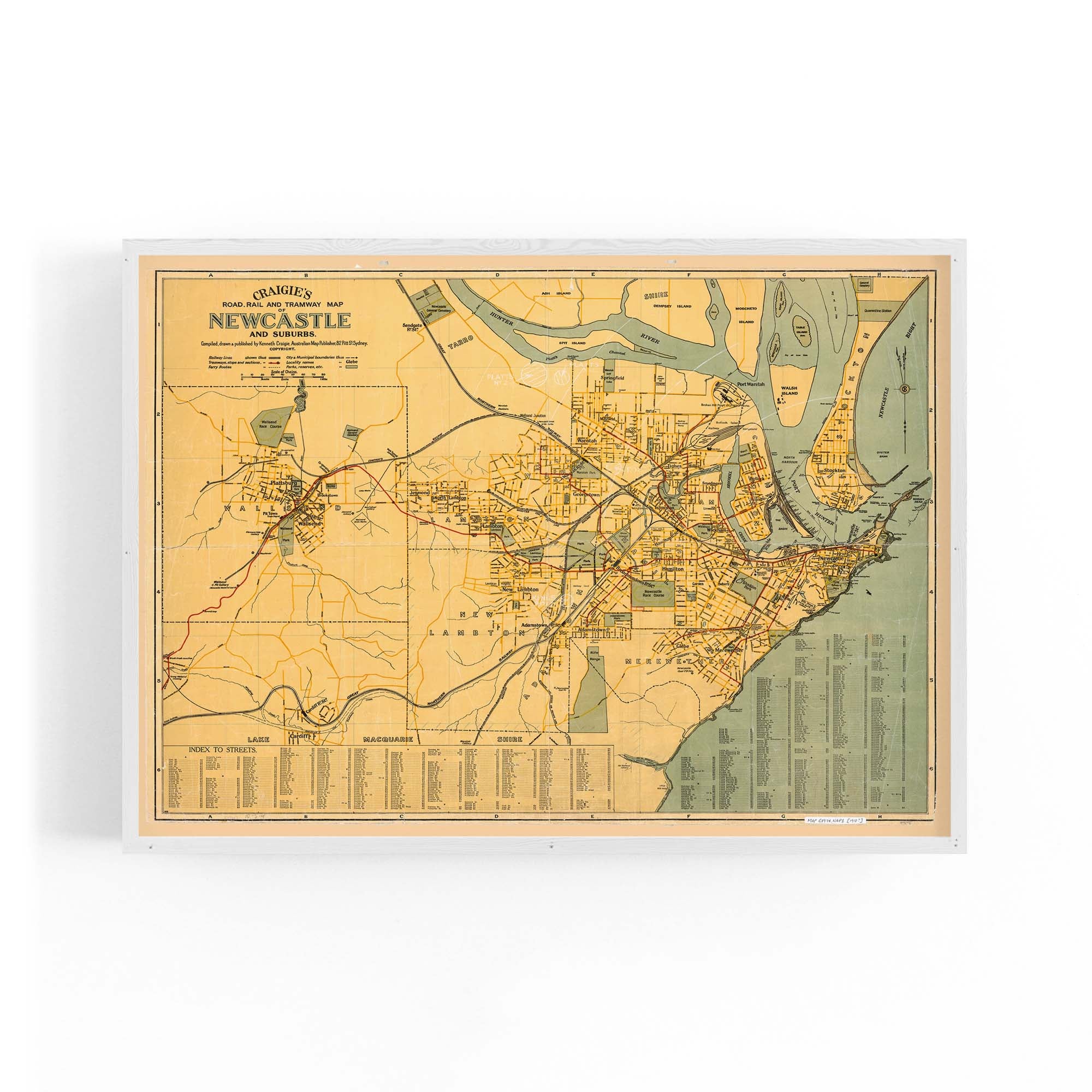 1918 Map of Newcastle and Suburbs, New South Wales