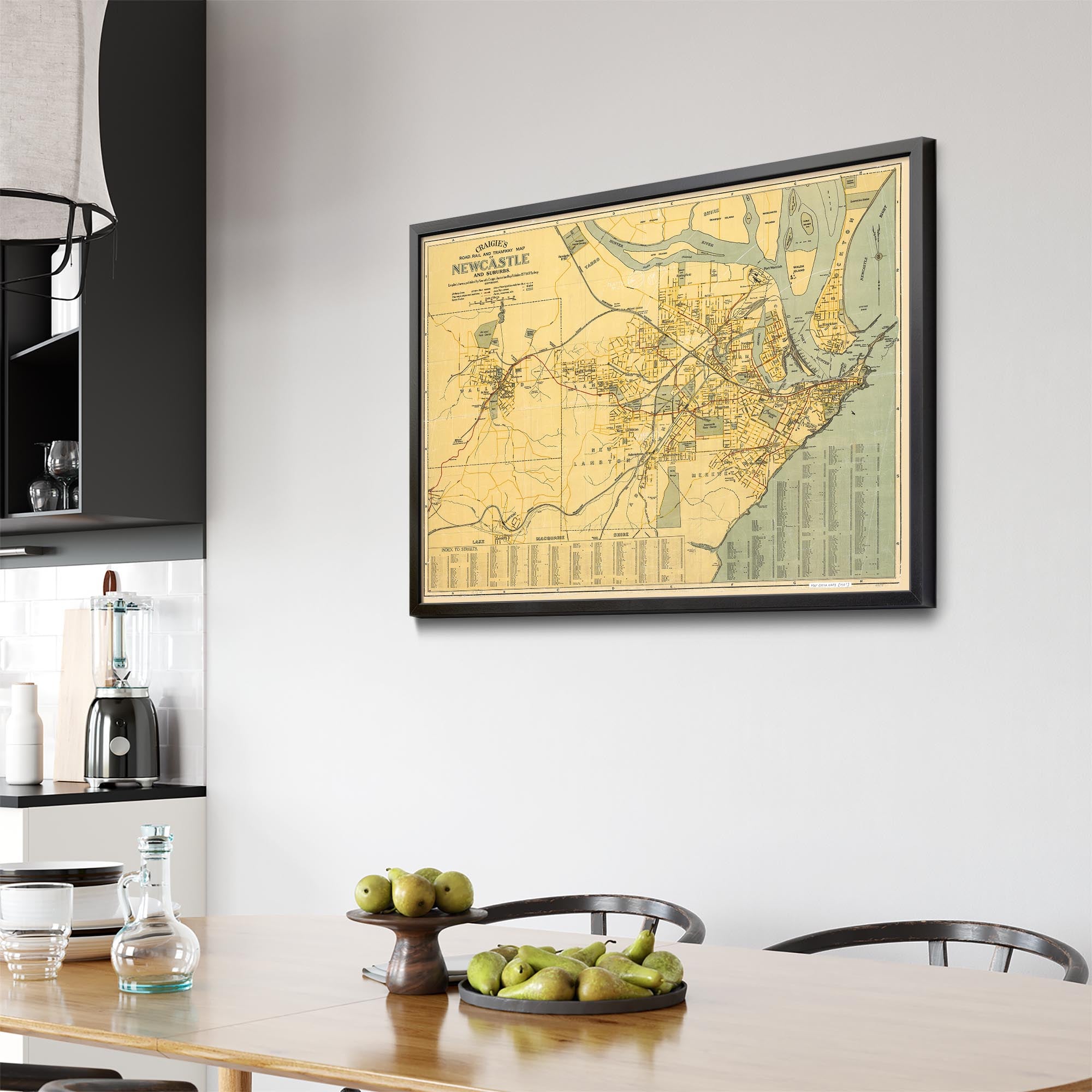 Recently moving to Harcourt and being interested in the history of the area, it seemed fitting to purchase a vintage map of the area which is displayed on our kitchen wall for us to study easily, identifying the block of land we bought. Nicely framed too.
