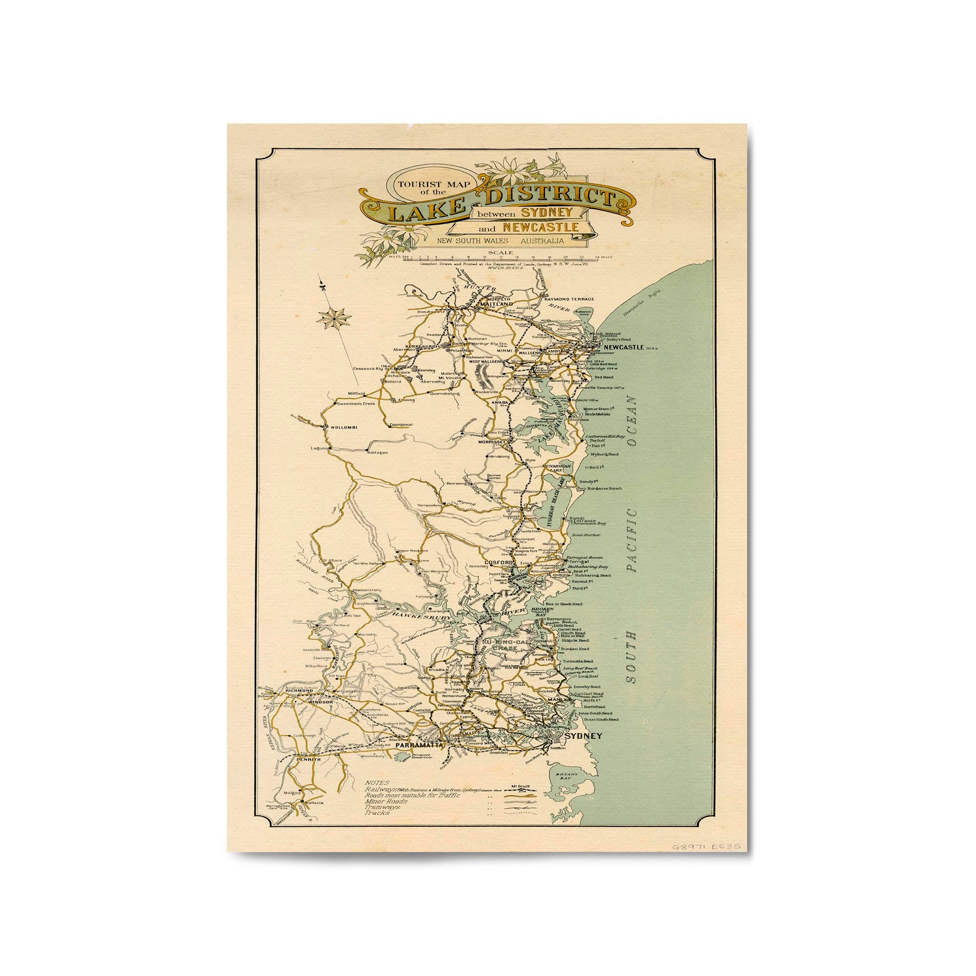 1920 Tourist Map of the Lake District between Sydney and Newcastle, New South Wales
