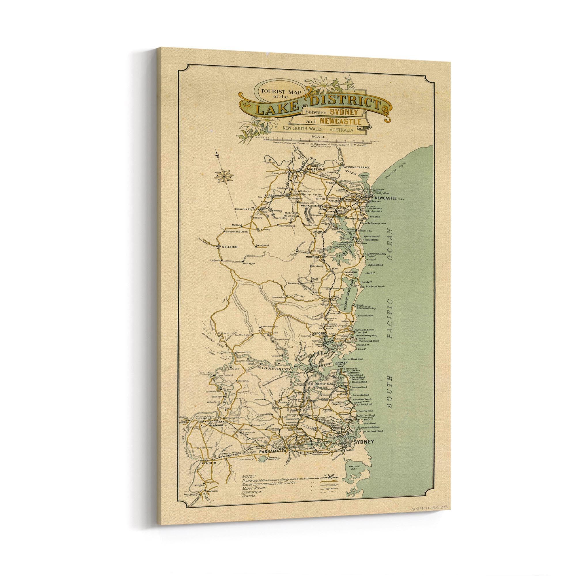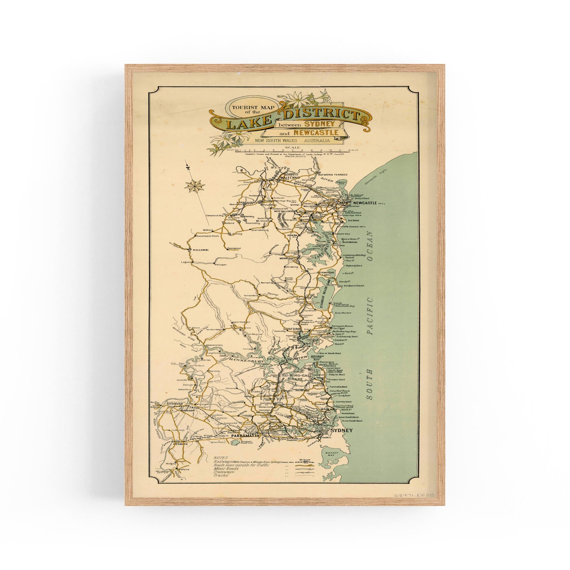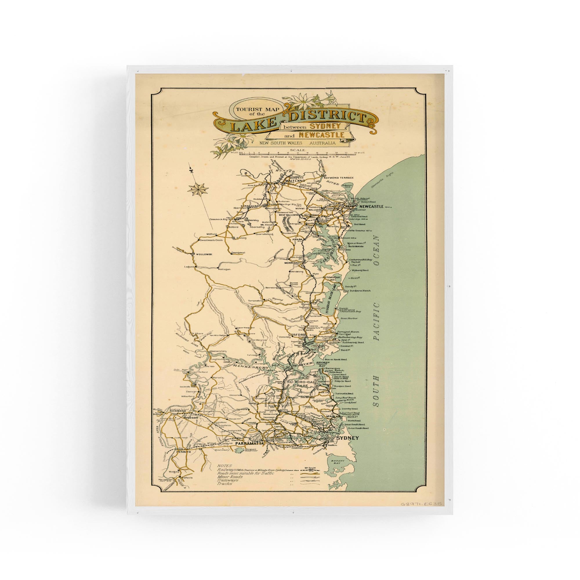 Tourist map of the lake district between Sydney and Newcastle, New South Wales.