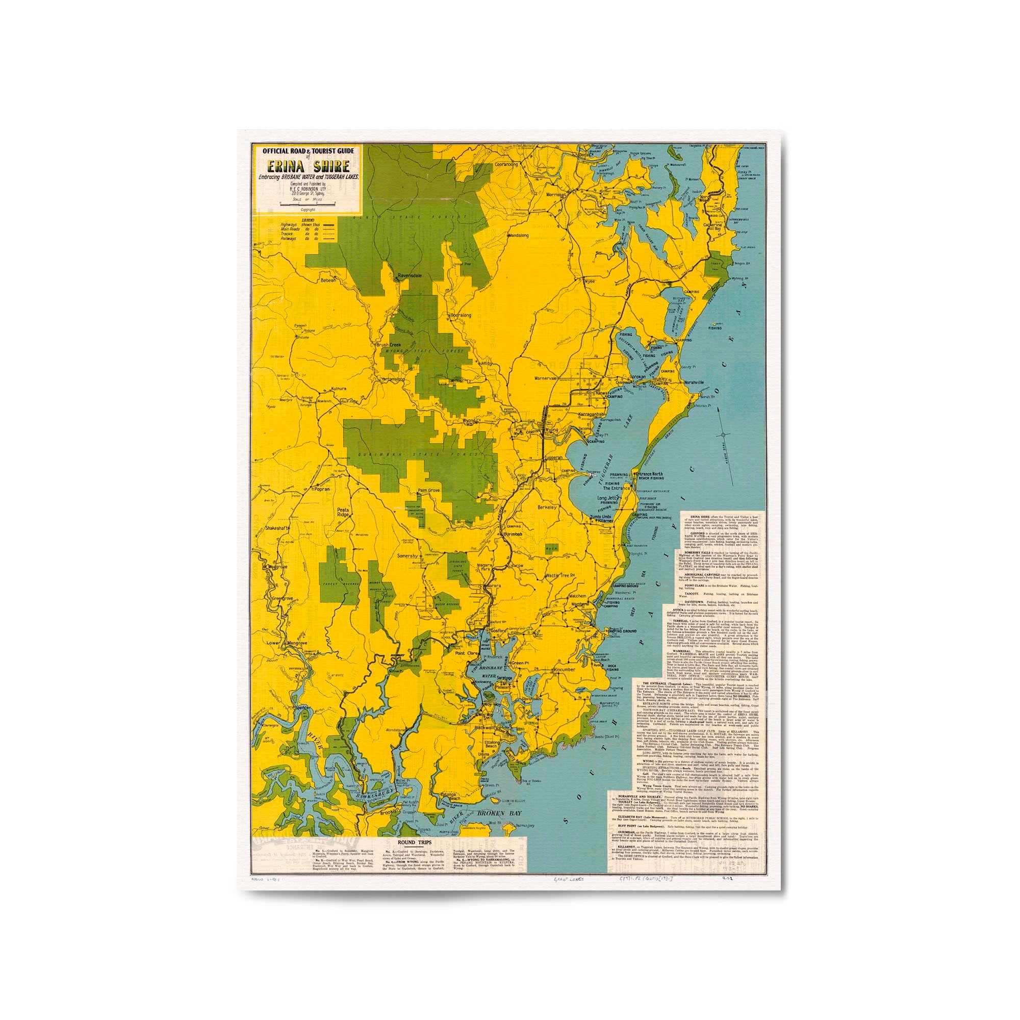 Official road & tourist guide of Erina Shire Road map of Erina Shire which encompassed Wyong and Gosford in the 1930s.