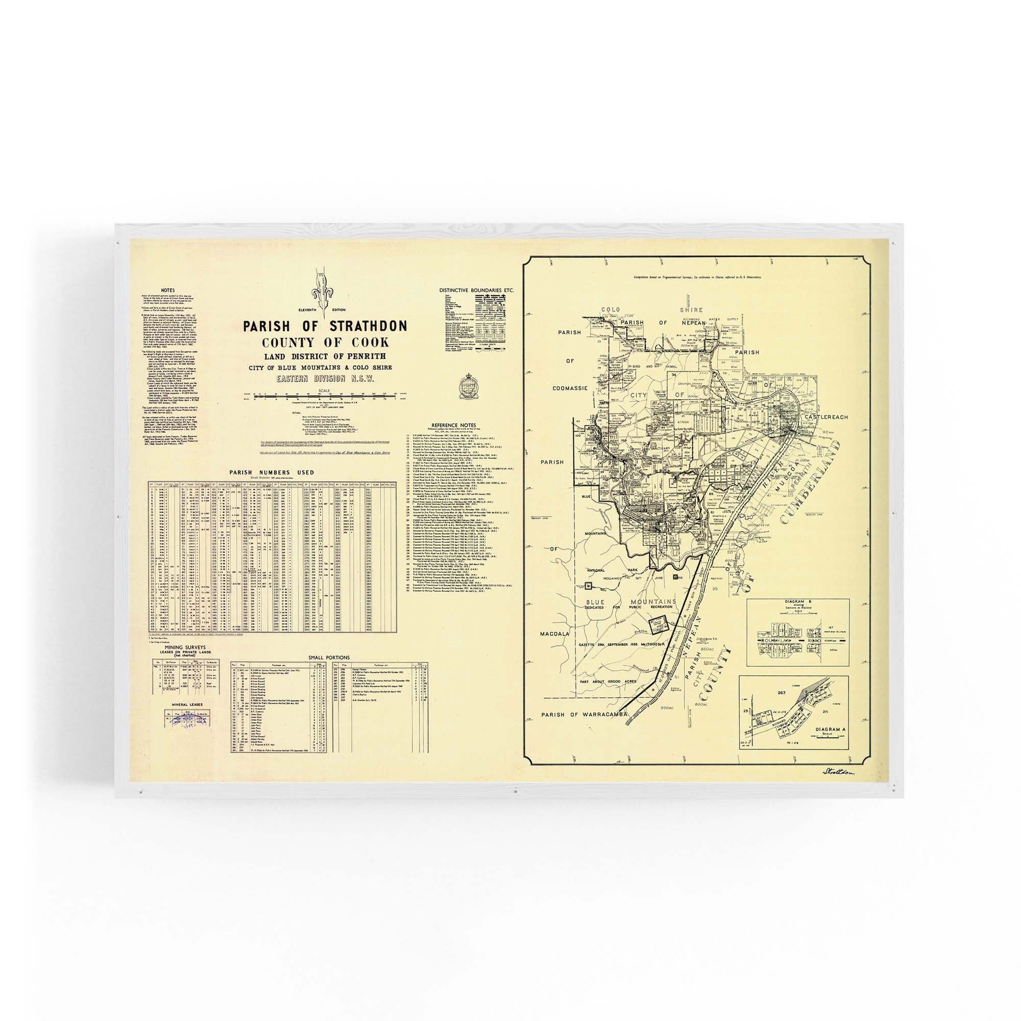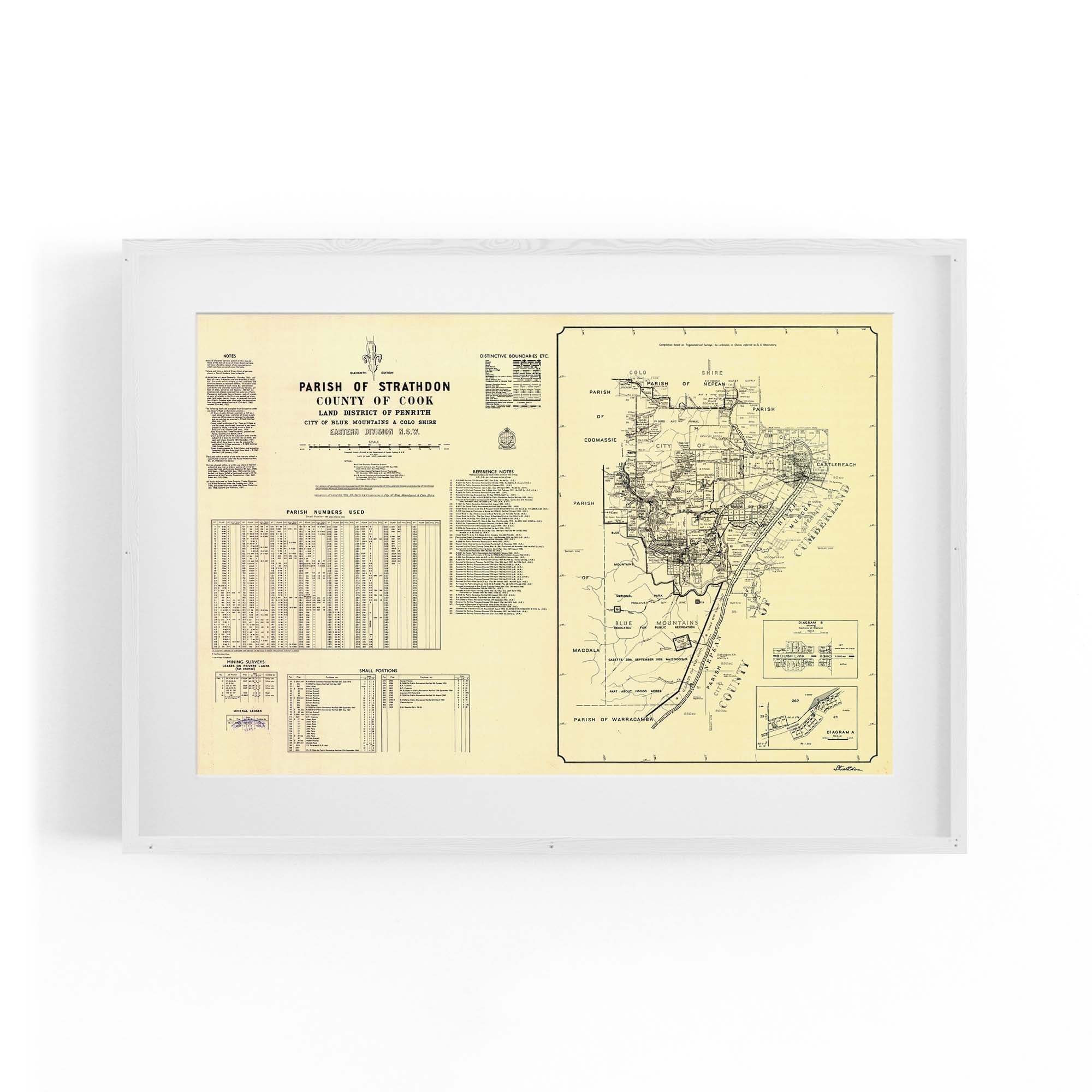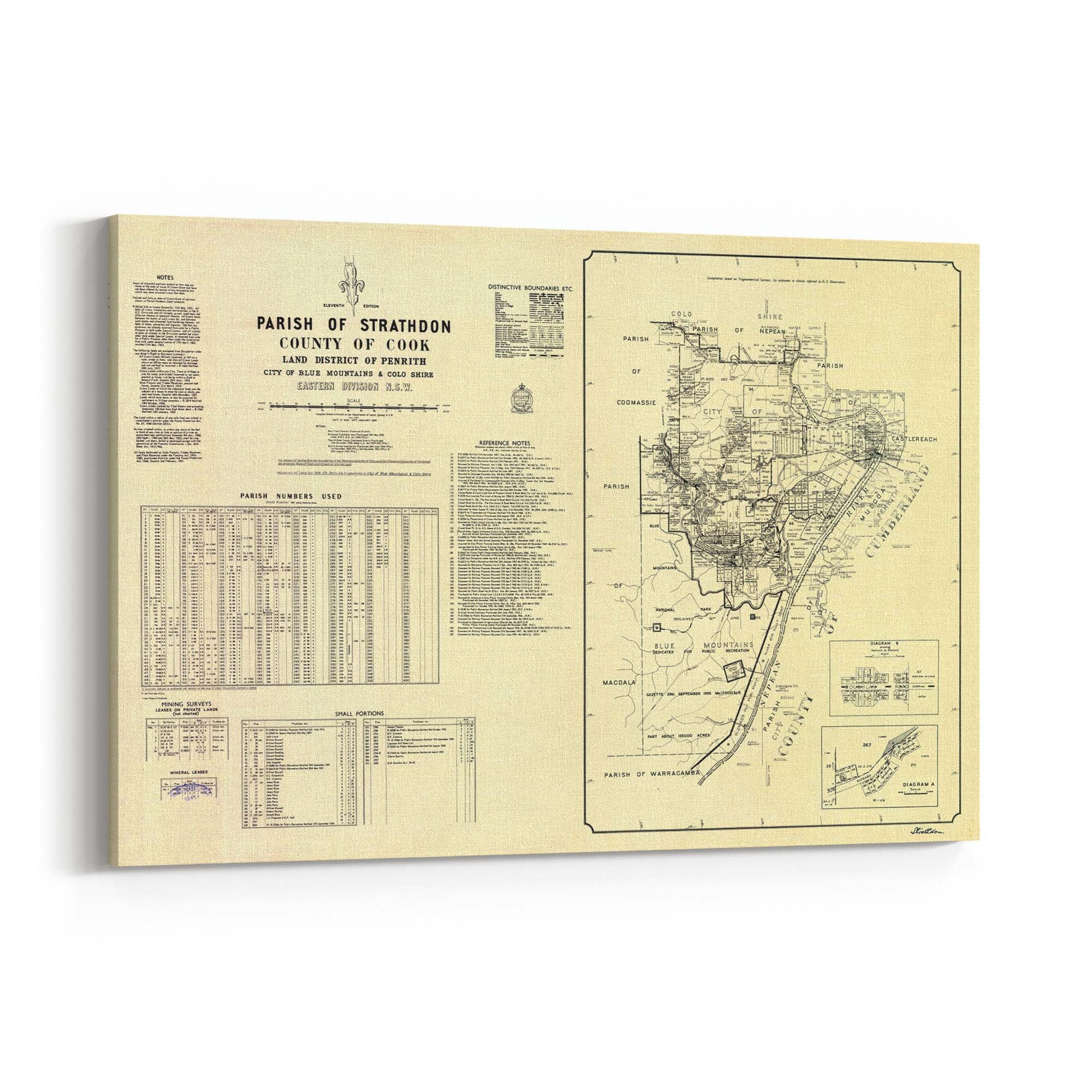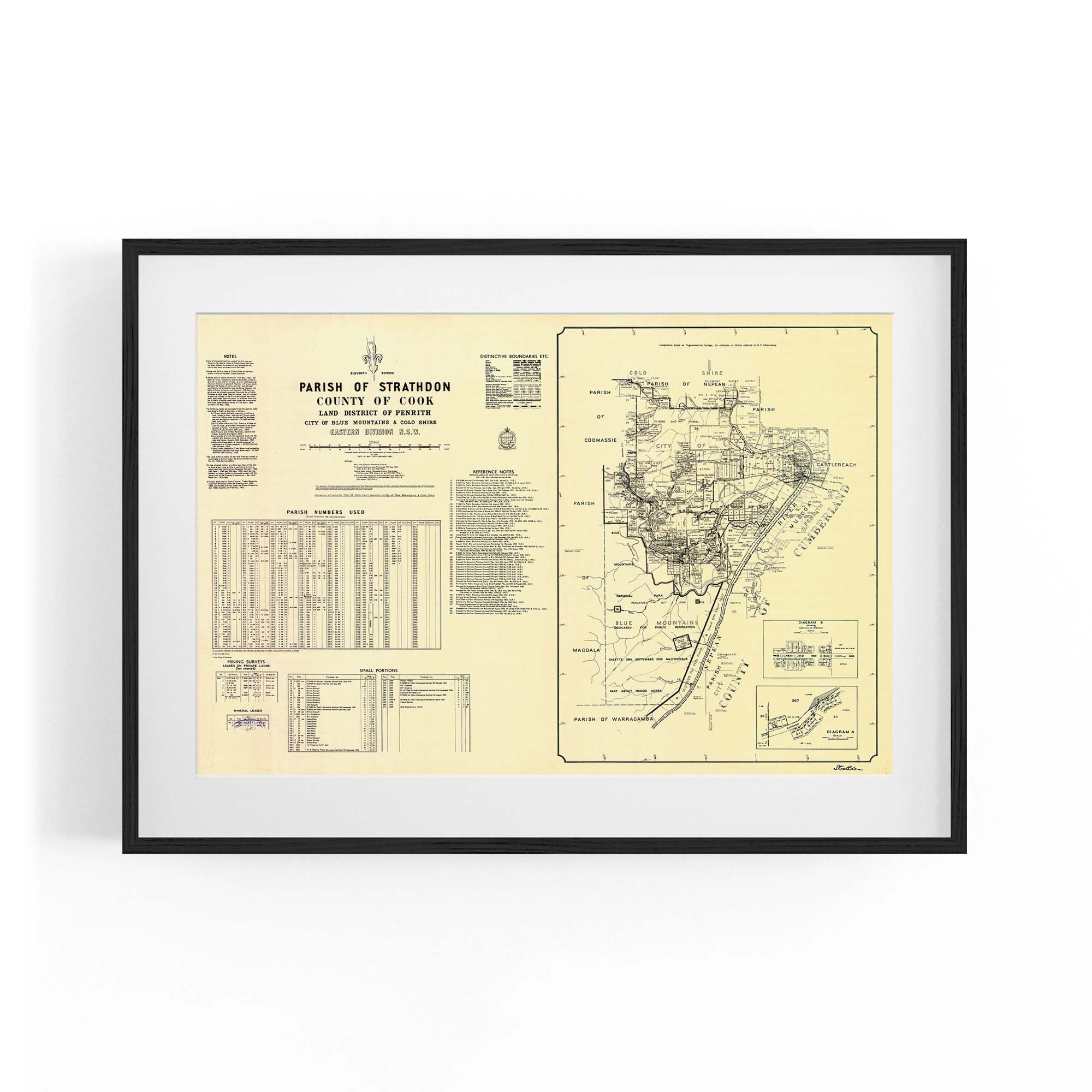 Parish of Strathdon, County of Cook Land District of Penrith, City of Blue Mountains & Colo Shire, Eastern Division New South Wales. Cadastral map showing parish boundaries and land holdings.