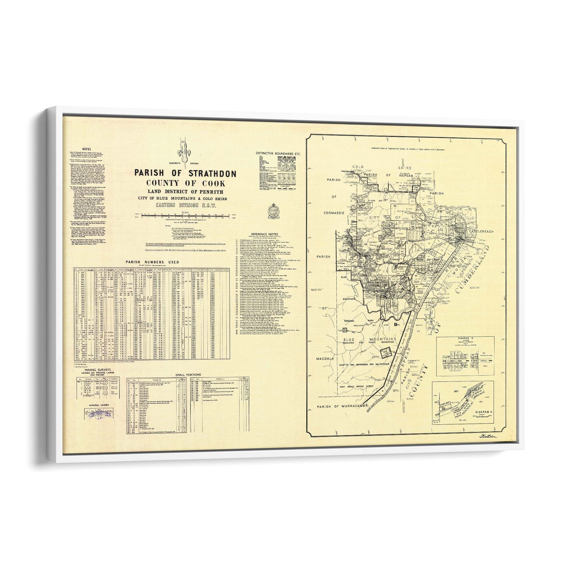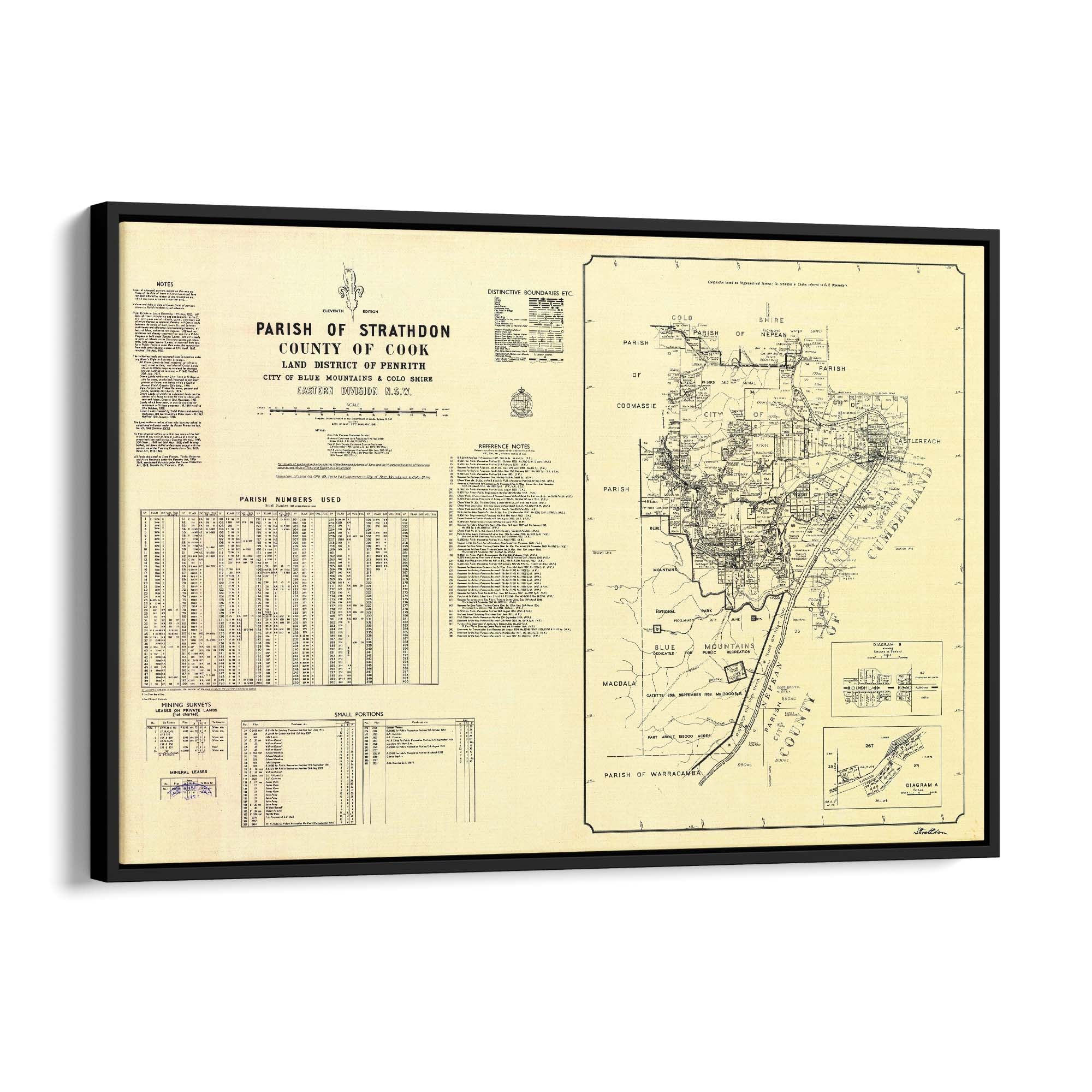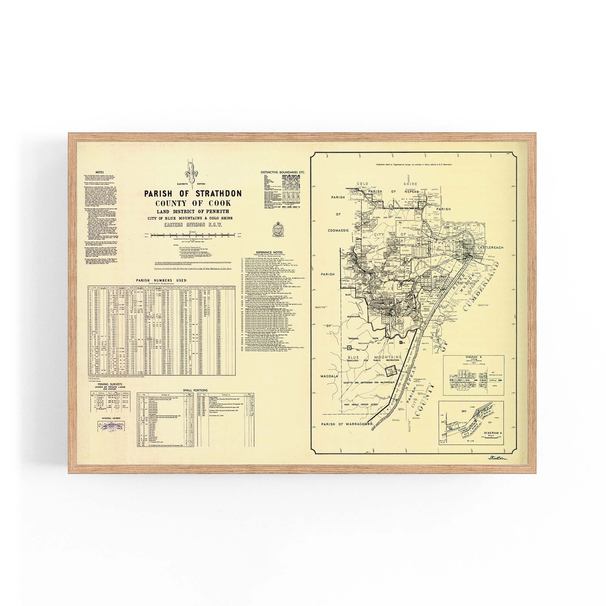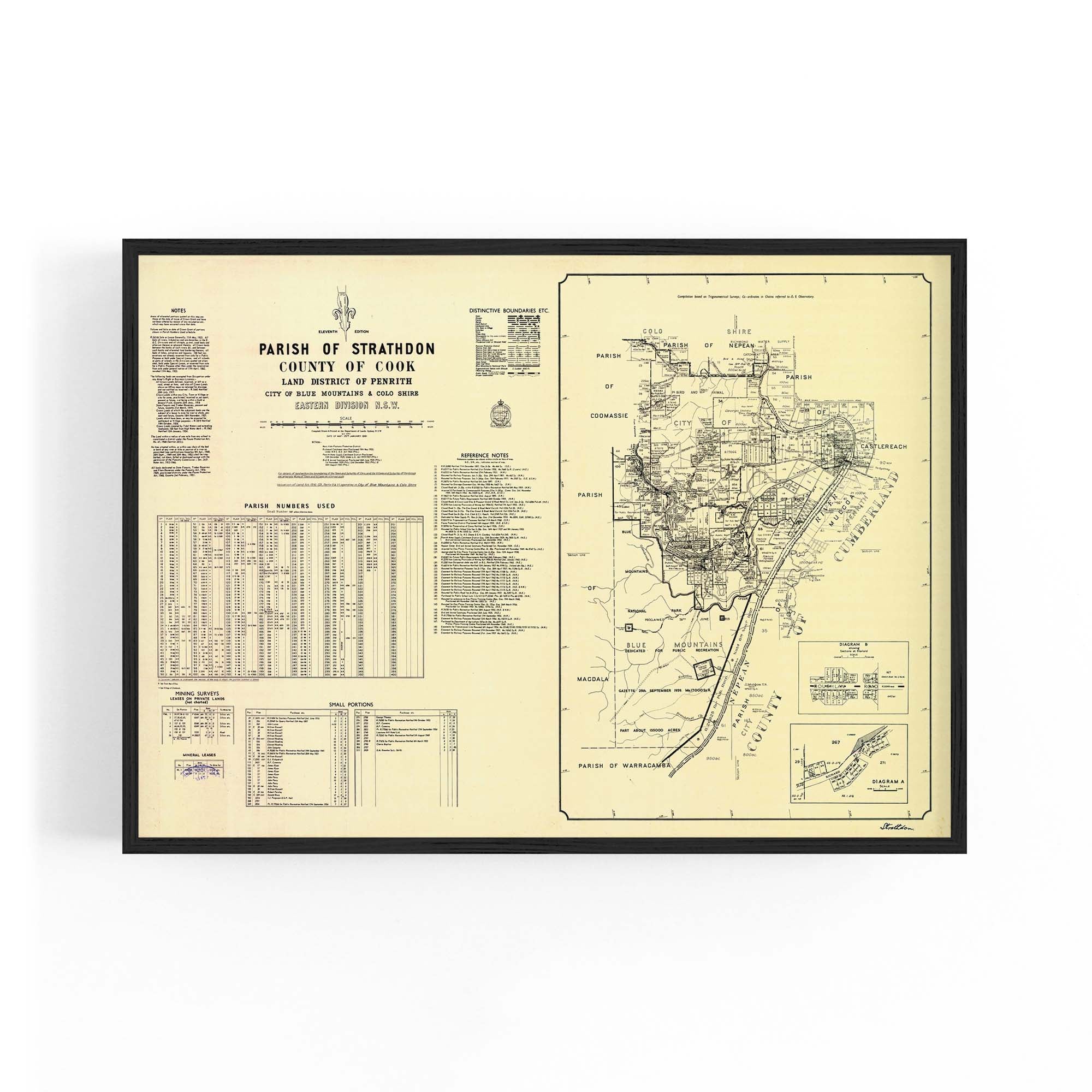 Parish of Strathdon, County of Cook Land District of Penrith, City of Blue Mountains & Colo Shire, Eastern Division New South Wales. Cadastral map showing parish boundaries and land holdings.