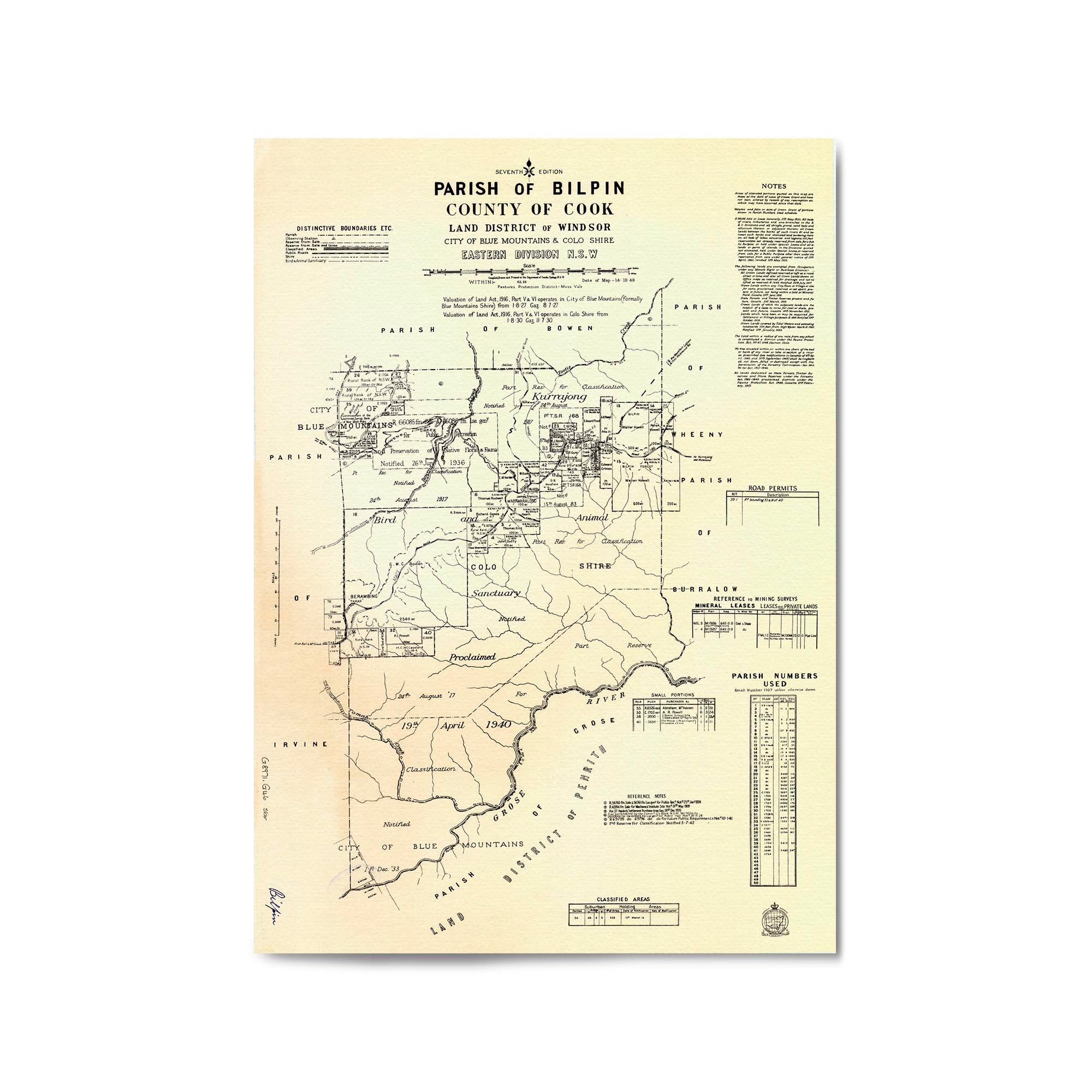 Parish of Bilpin, County of Cook Land District of Windsor, City of the Blue Mountains & Colo Shire, Eastern Division New South Wales. Cadastral map showing parish boundaries and land holdings.