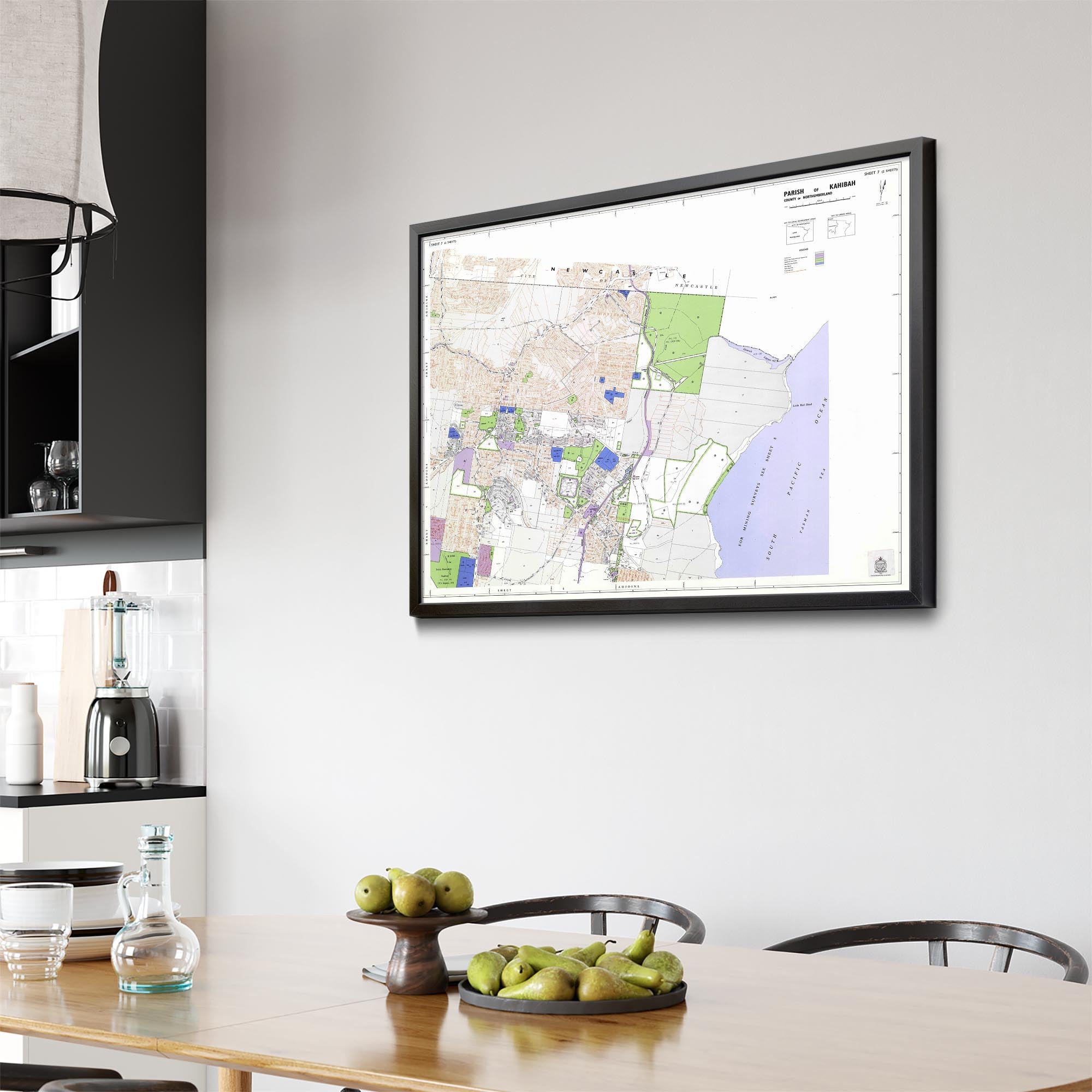 Recently moving to Harcourt and being interested in the history of the area, it seemed fitting to purchase a vintage map of the area which is displayed on our kitchen wall for us to study easily, identifying the block of land we bought. Nicely framed too.
