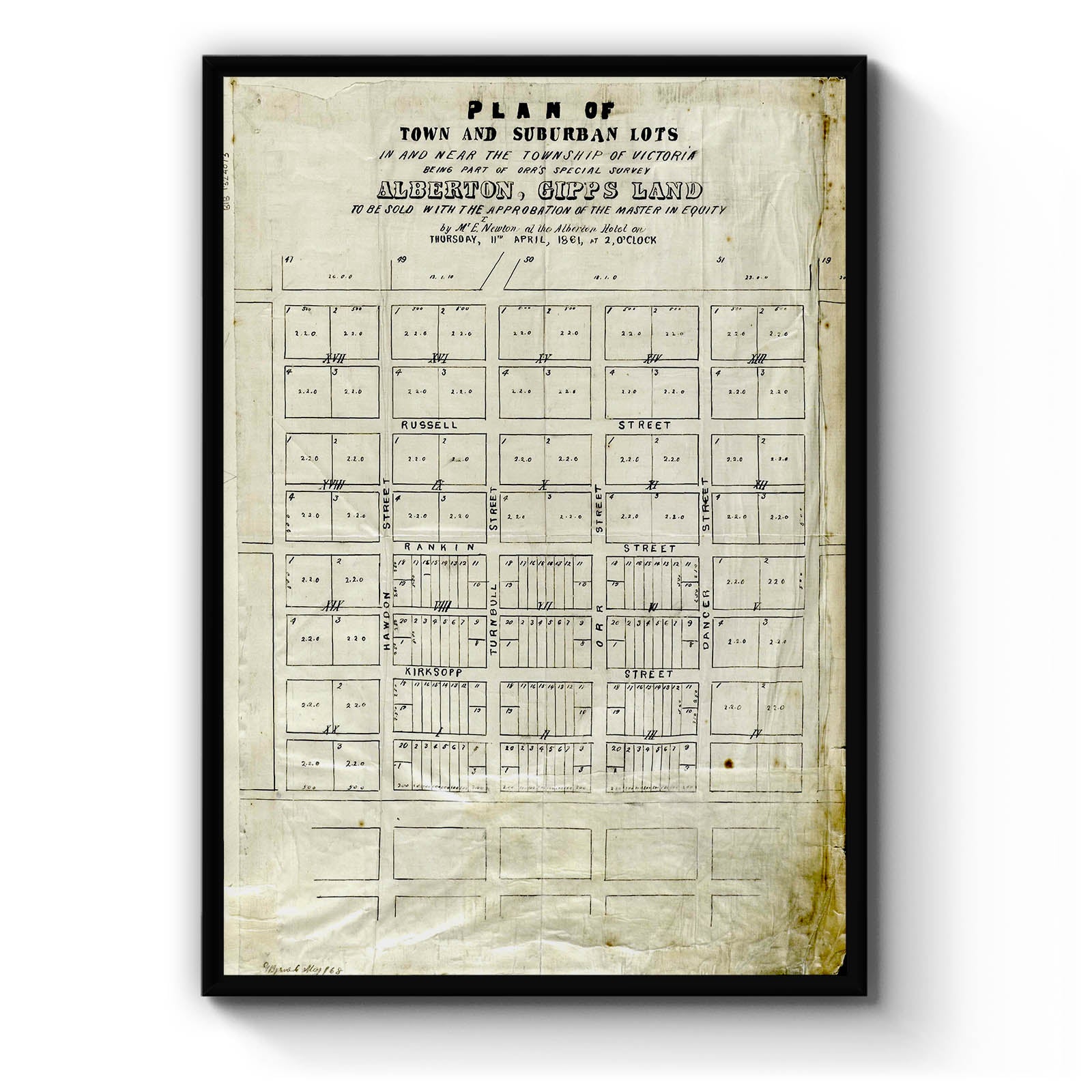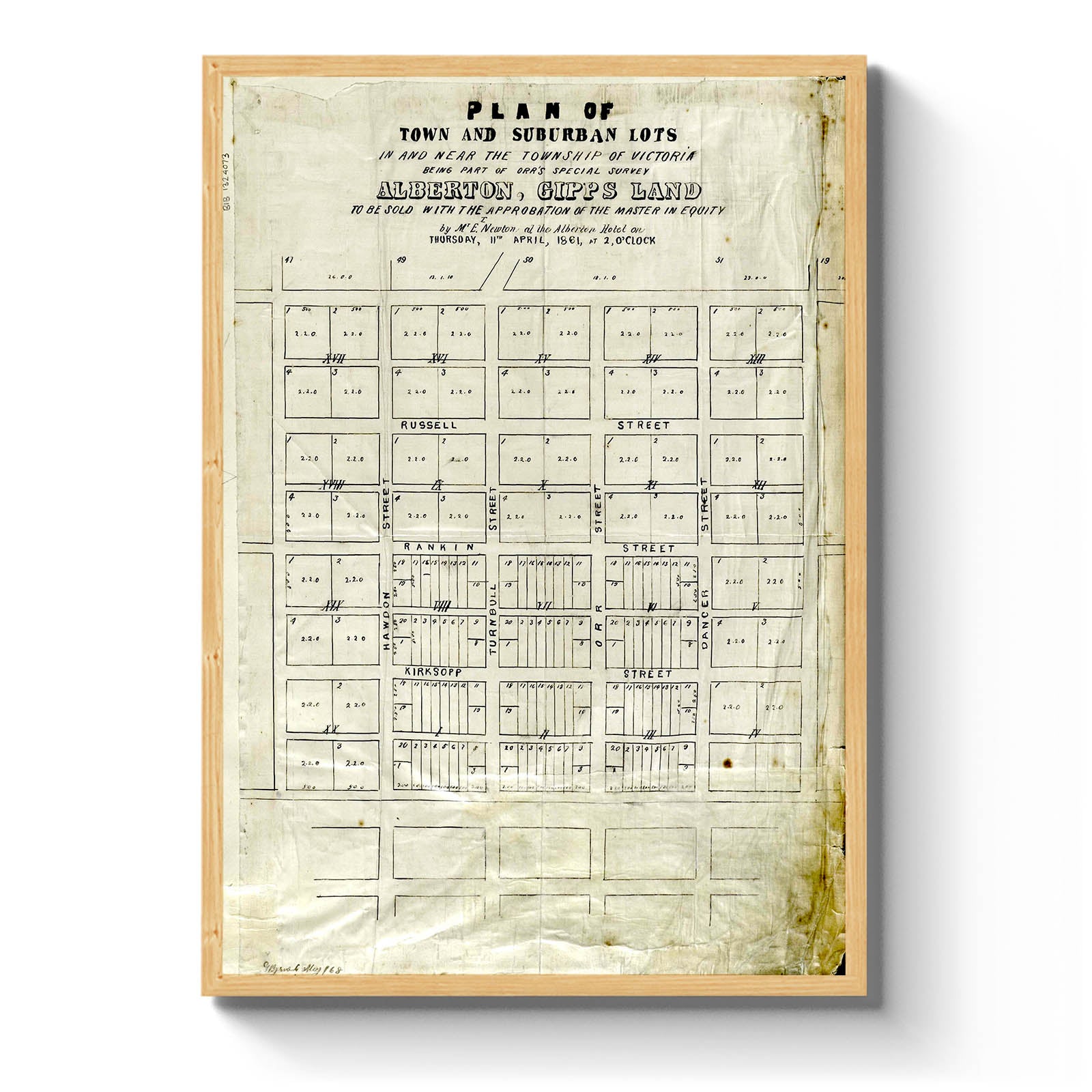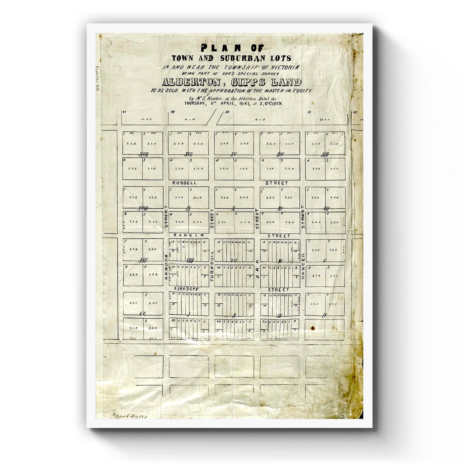 Plan of town and suburban lots, Alberton, Gipps Land (Gippsland) [cartographic material]. 1861