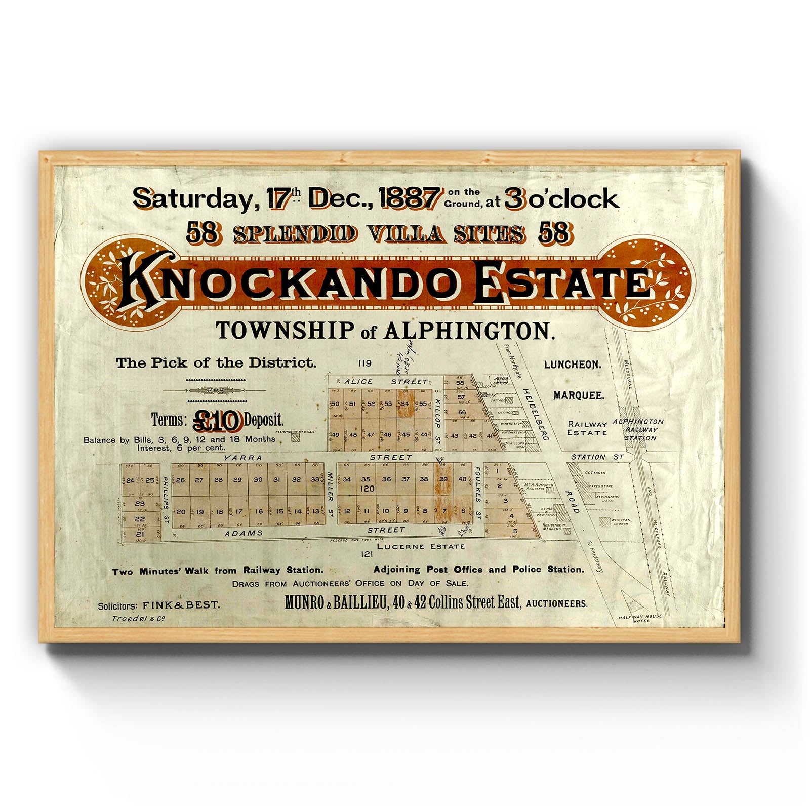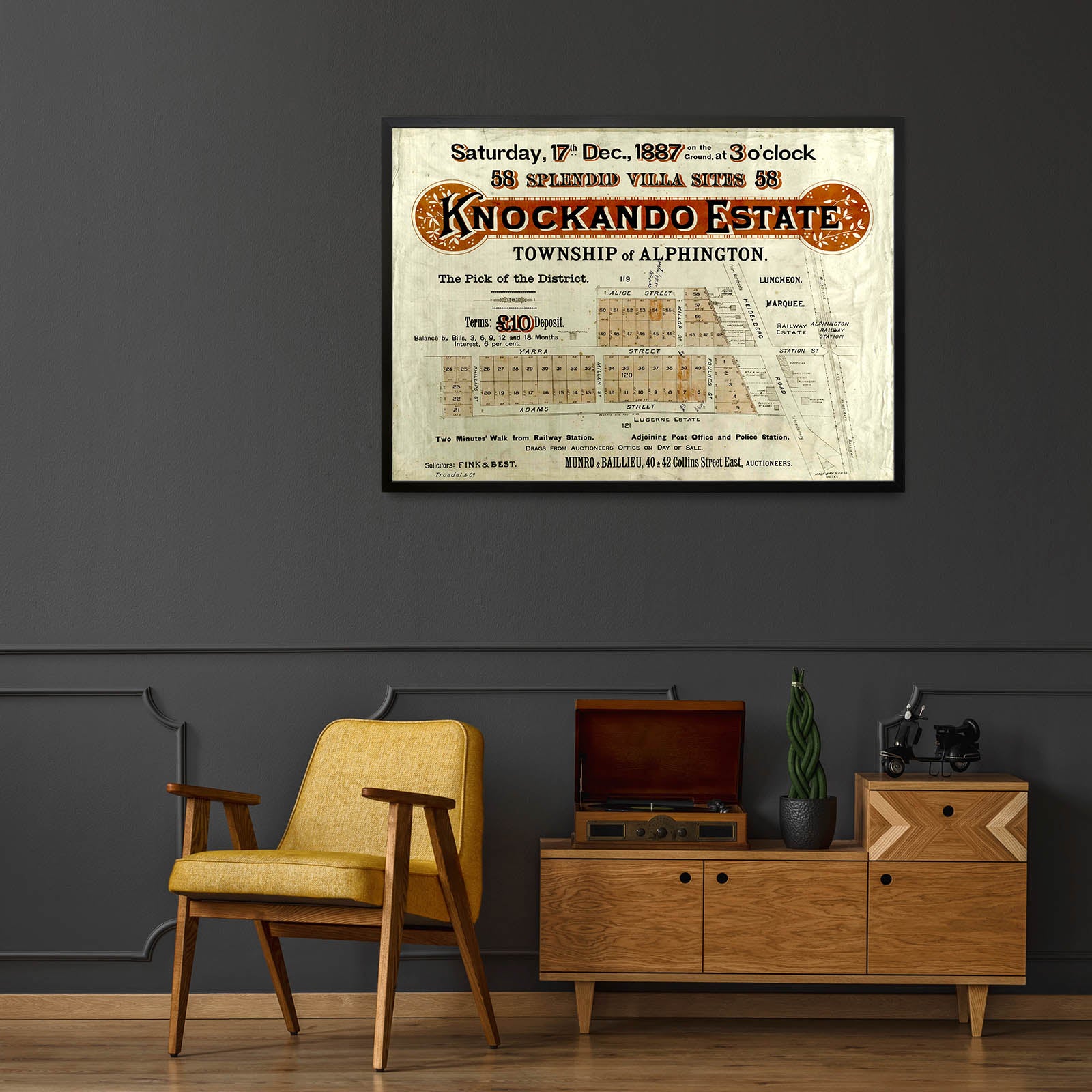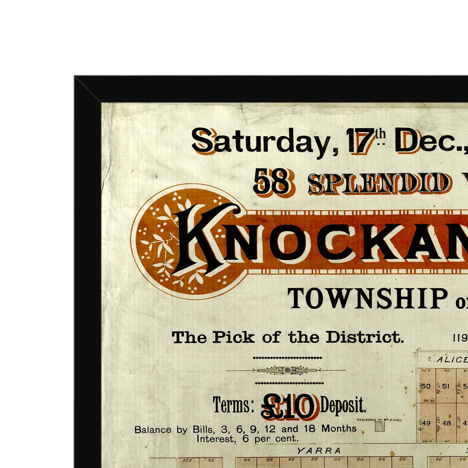 Recently moving to Harcourt and being interested in the history of the area, it seemed fitting to purchase a vintage map of the area which is displayed on our kitchen wall for us to study easily, identifying the block of land we bought. Nicely framed too.