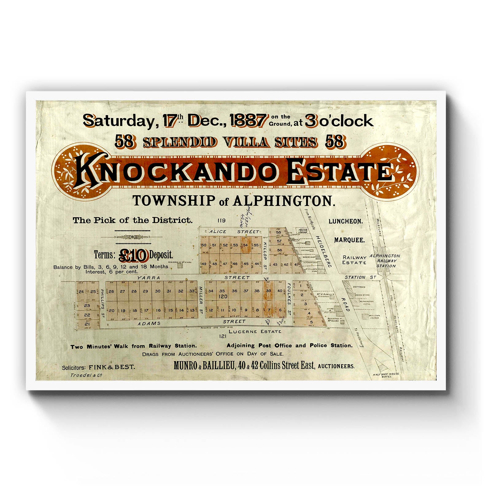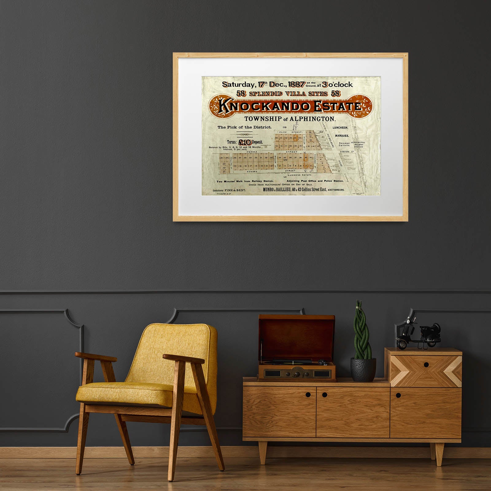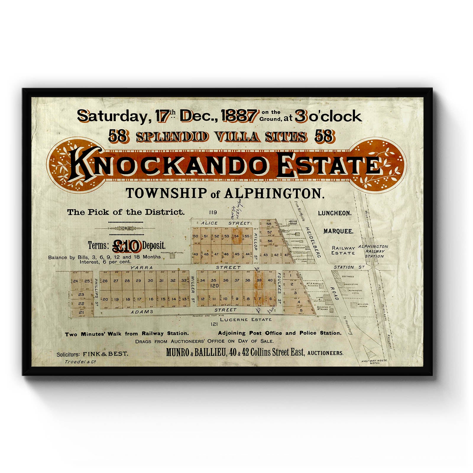 Recently moving to Harcourt and being interested in the history of the area, it seemed fitting to purchase a vintage map of the area which is displayed on our kitchen wall for us to study easily, identifying the block of land we bought. Nicely framed too.