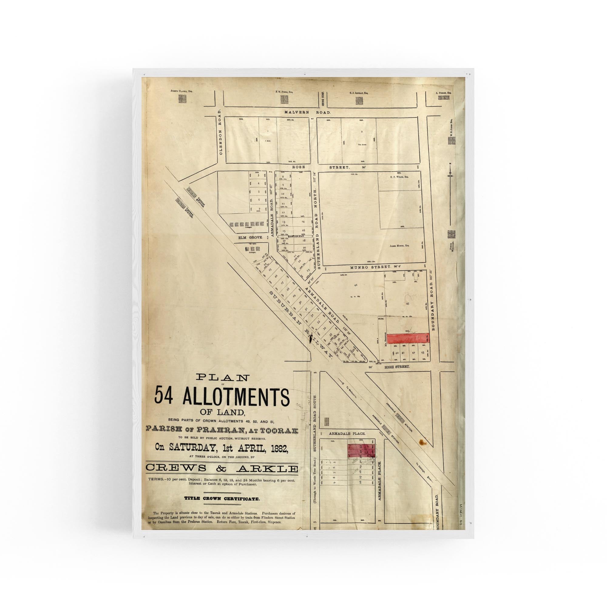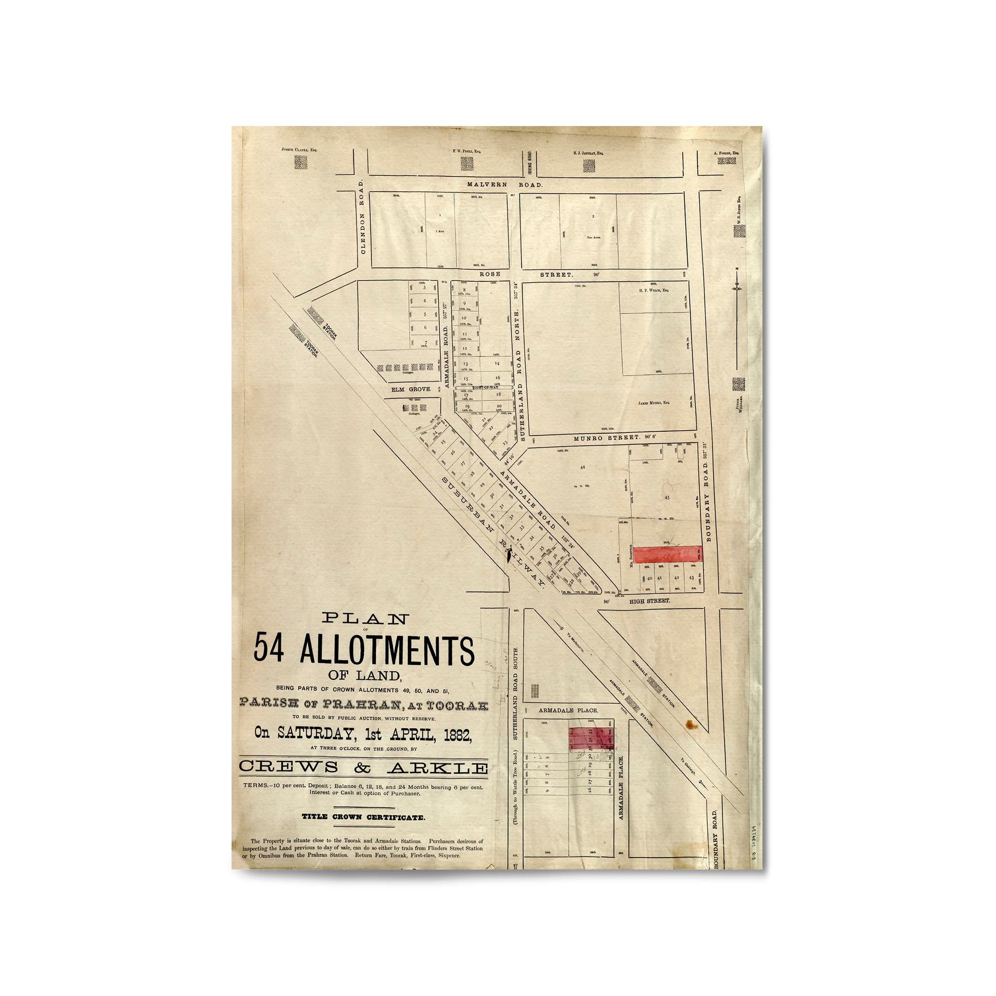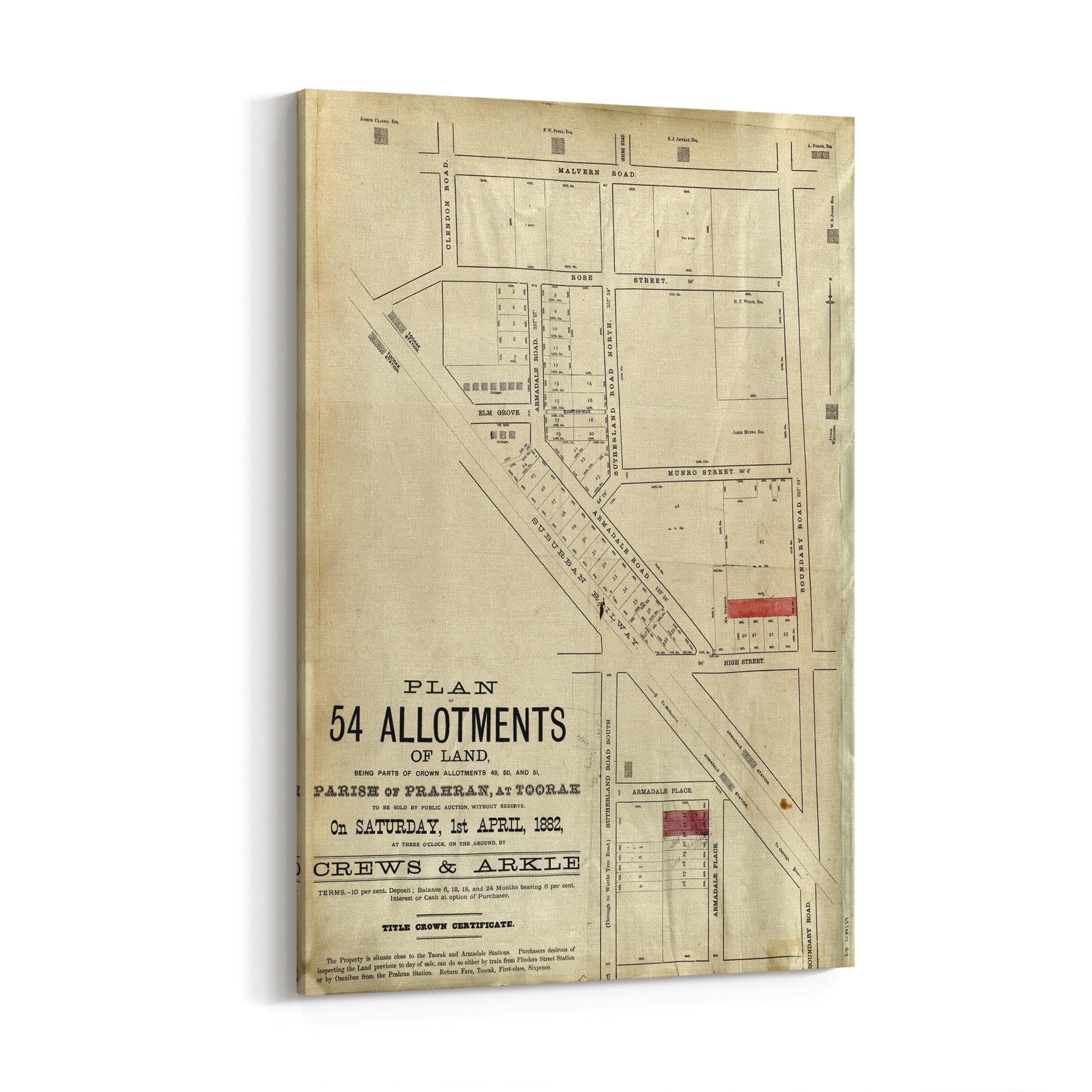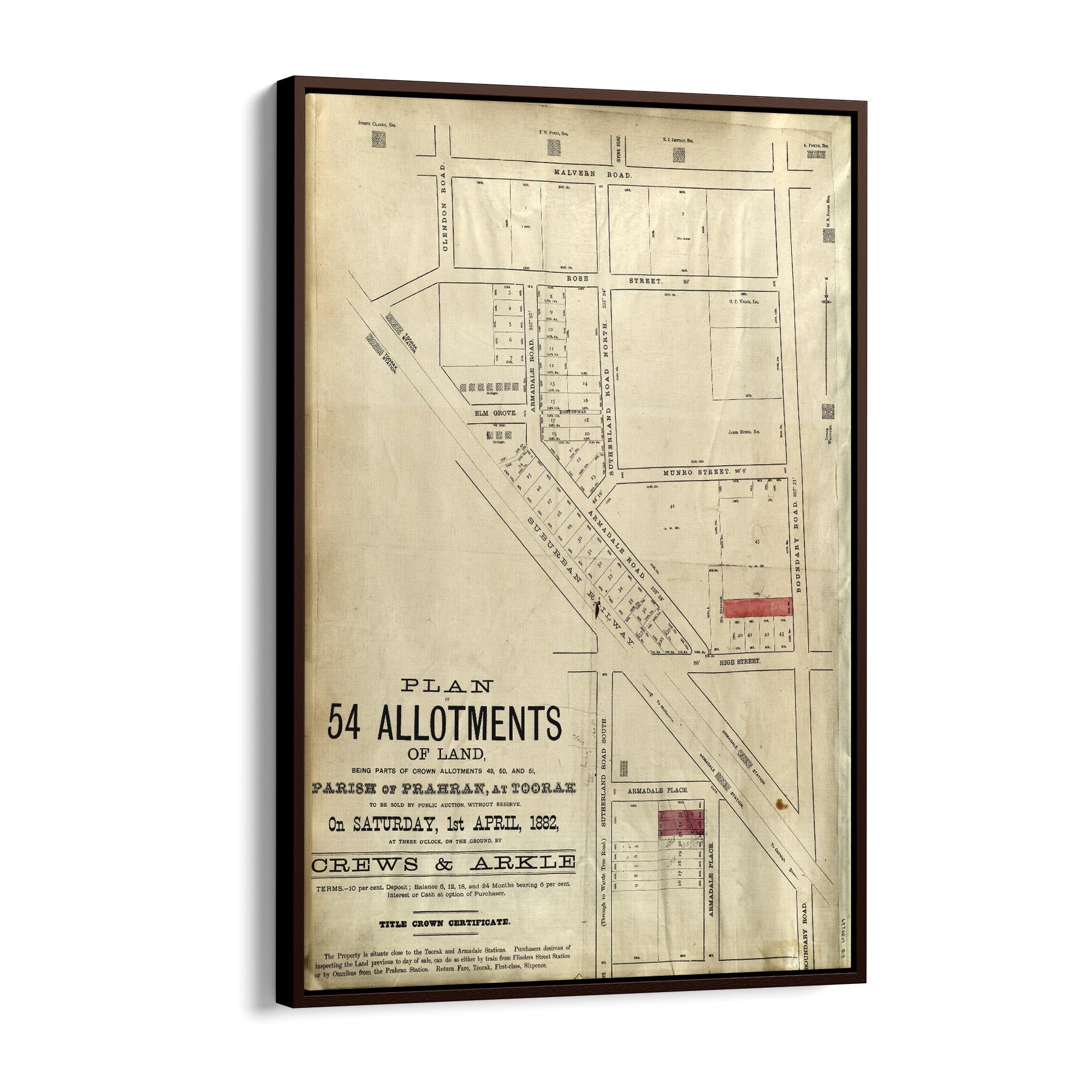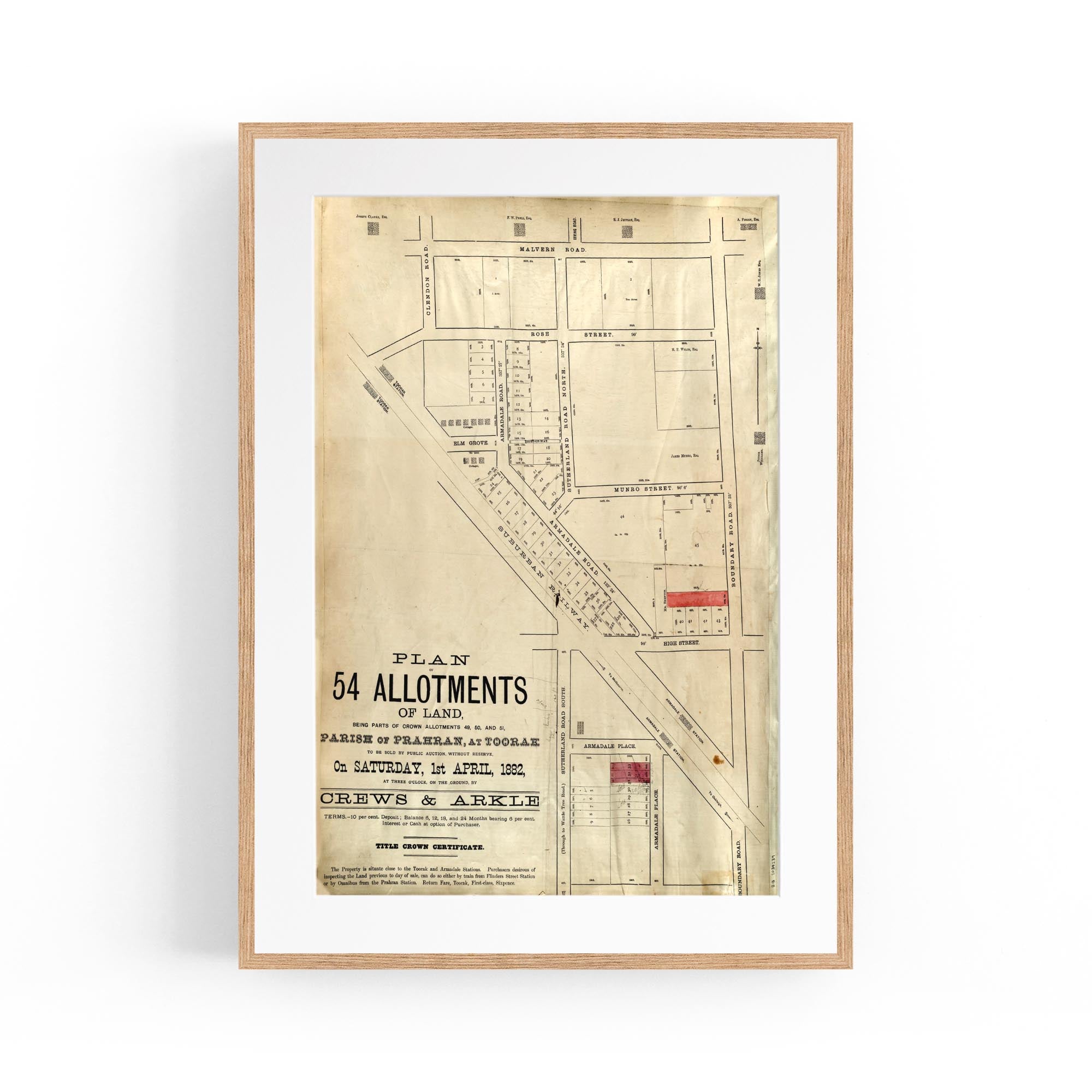 1882 Vintage Map of Armadale, Victoria Australia