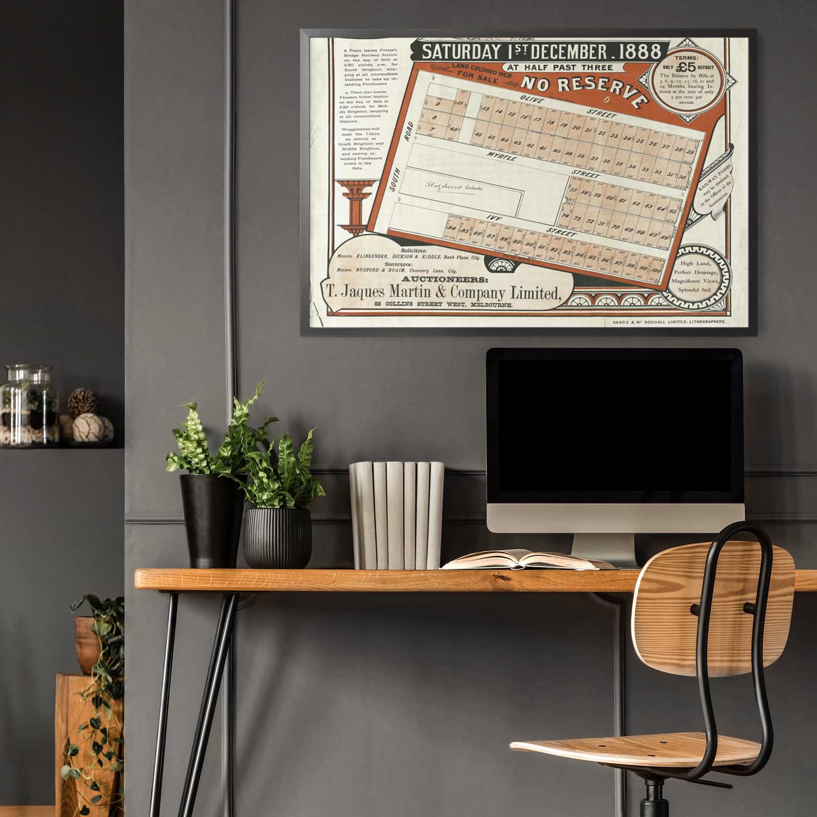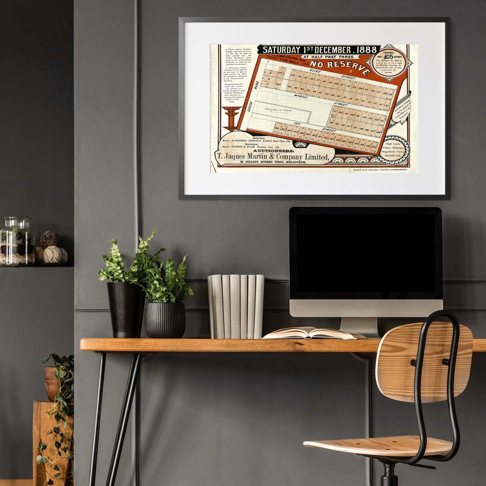 Recently moving to Harcourt and being interested in the history of the area, it seemed fitting to purchase a vintage map of the area which is displayed on our kitchen wall for us to study easily, identifying the block of land we bought. Nicely framed too.
