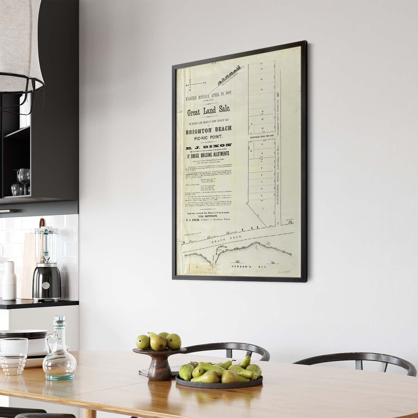 Recently moving to Harcourt and being interested in the history of the area, it seemed fitting to purchase a vintage map of the area which is displayed on our kitchen wall for us to study easily, identifying the block of land we bought. Nicely framed too.