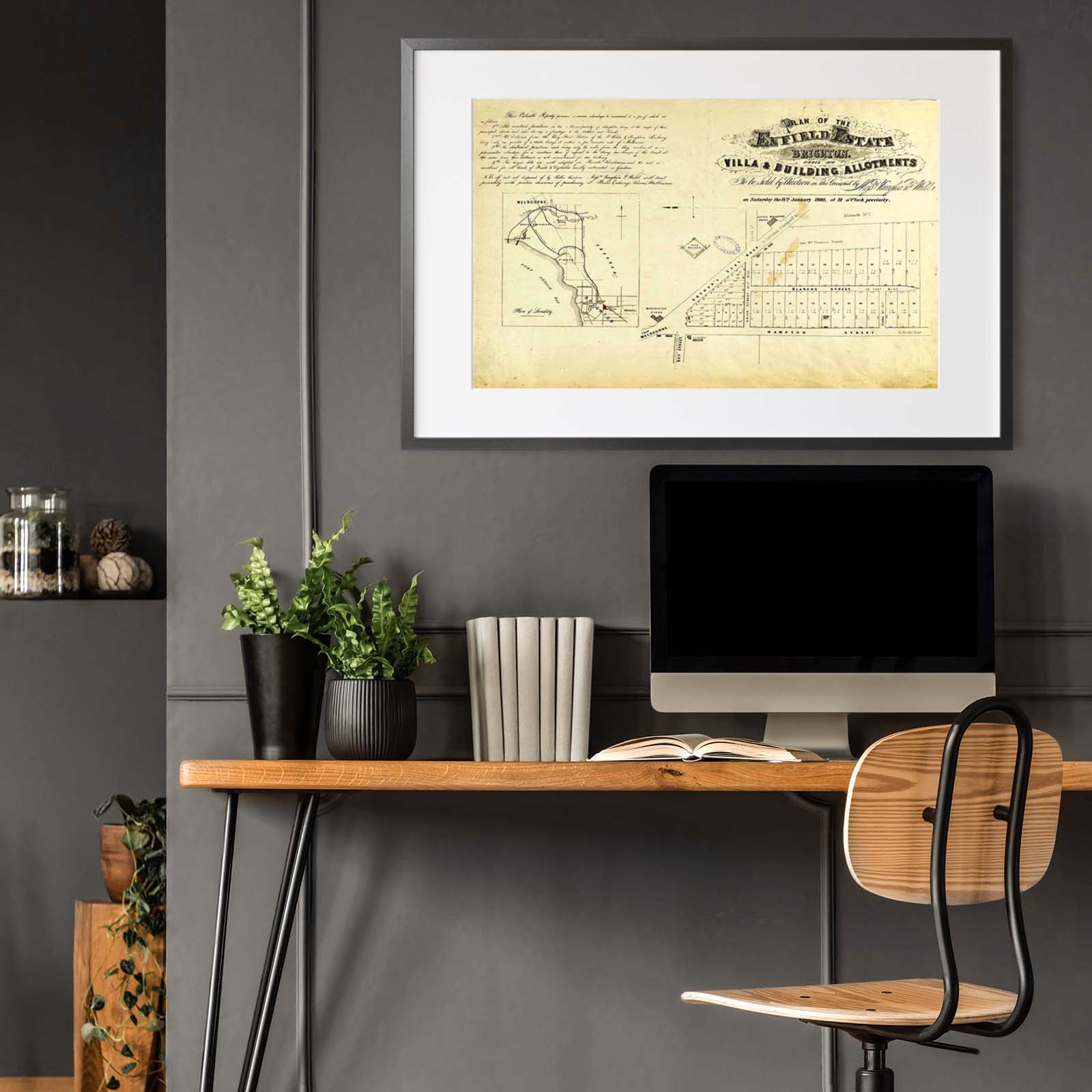 Recently moving to Harcourt and being interested in the history of the area, it seemed fitting to purchase a vintage map of the area which is displayed on our kitchen wall for us to study easily, identifying the block of land we bought. Nicely framed too.