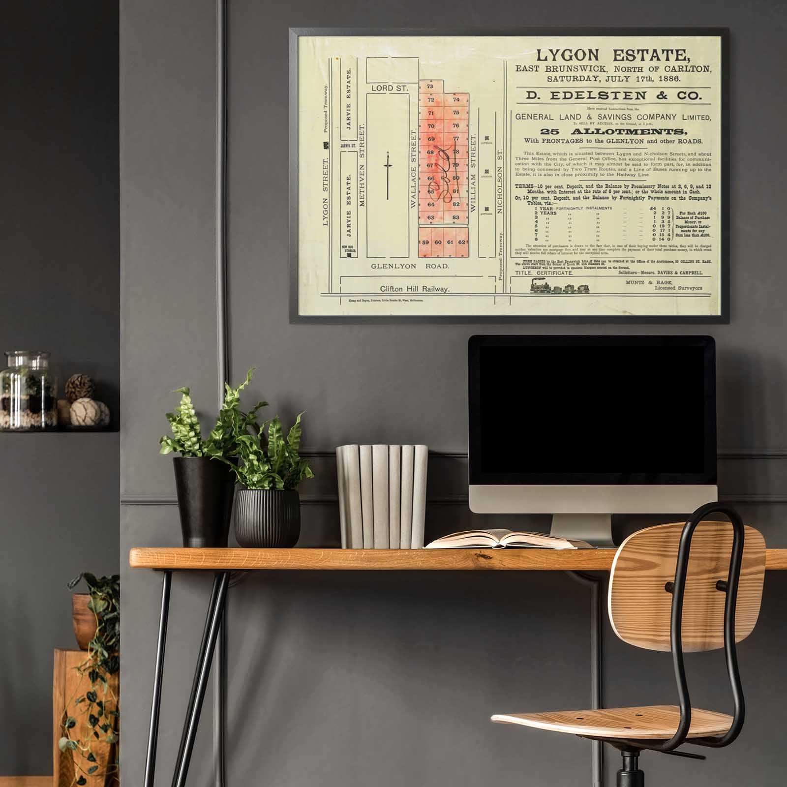 Recently moving to Harcourt and being interested in the history of the area, it seemed fitting to purchase a vintage map of the area which is displayed on our kitchen wall for us to study easily, identifying the block of land we bought. Nicely framed too.
