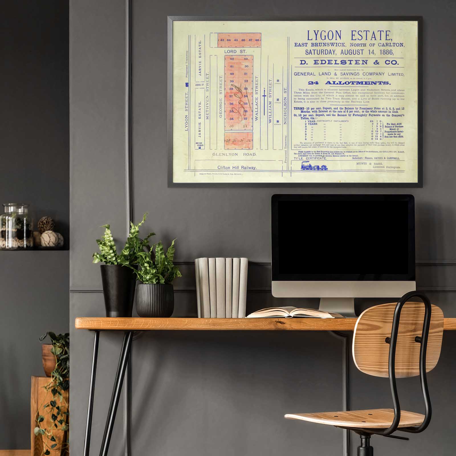 Recently moving to Harcourt and being interested in the history of the area, it seemed fitting to purchase a vintage map of the area which is displayed on our kitchen wall for us to study easily, identifying the block of land we bought. Nicely framed too.