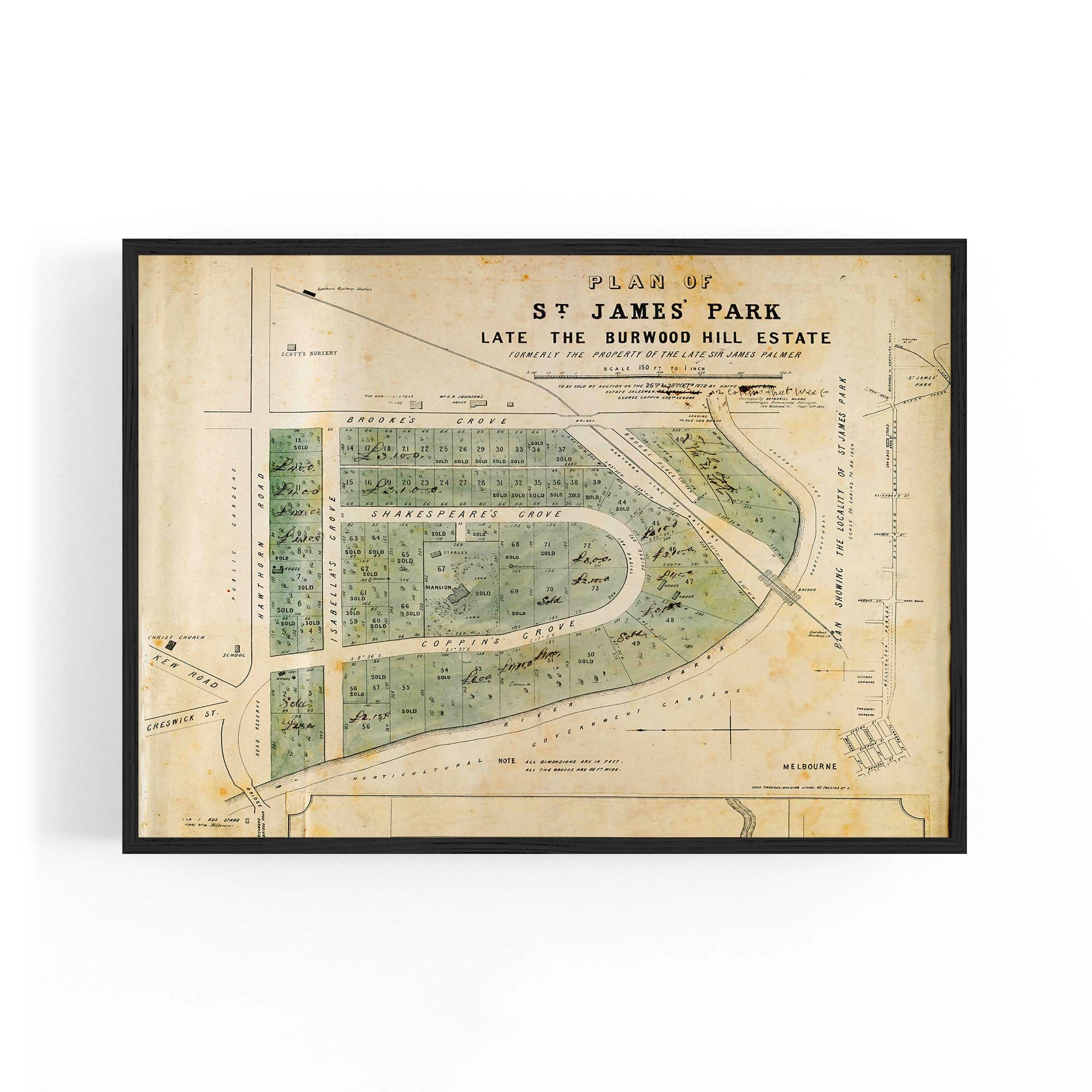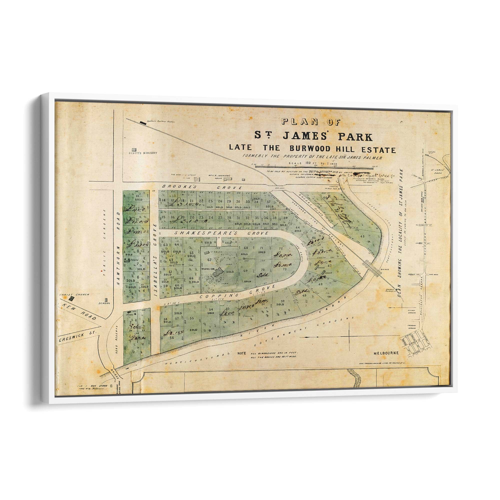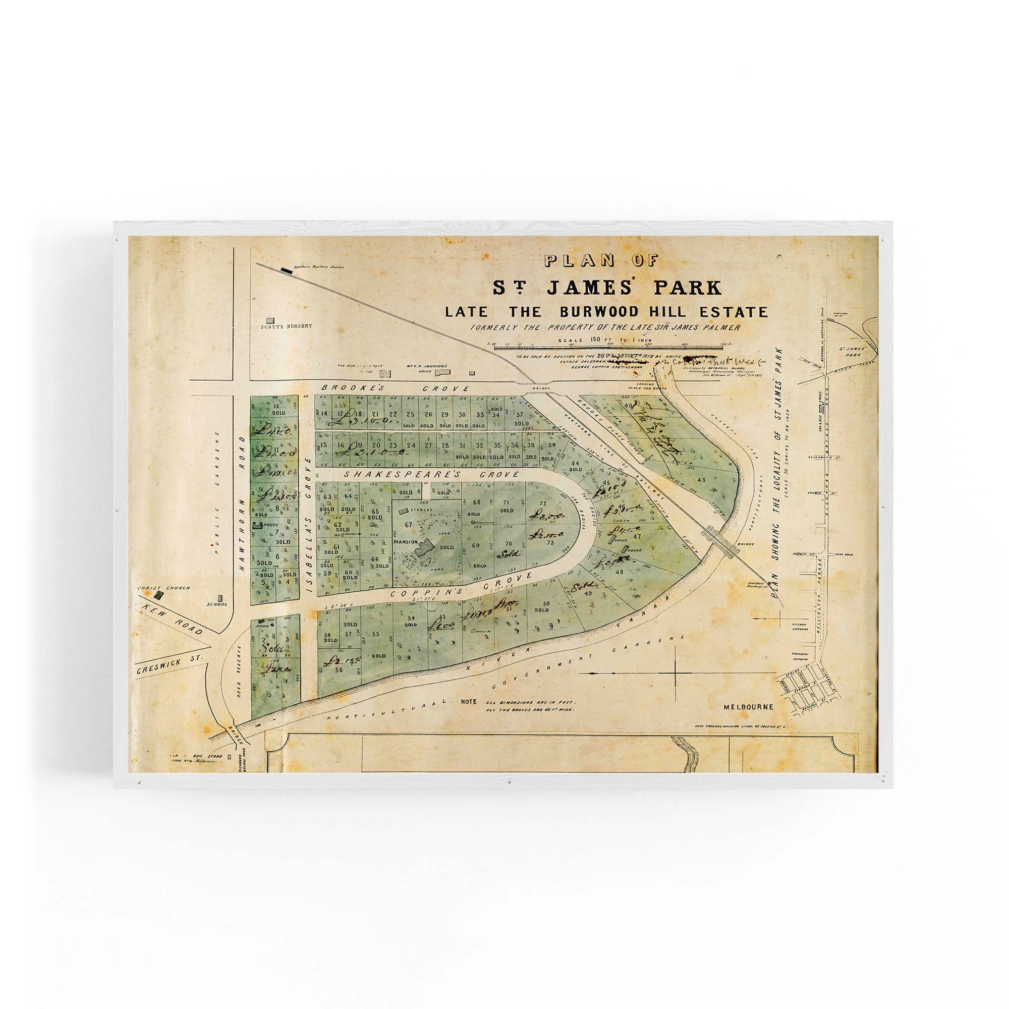 Plan of St. James' Park, late the Burwood Hill Estate, formerly the property of the late Sir James Palmer: to be sold by auction on the 26th & 28th. October 1872 by Knipe George & Co. estate salesmen, George Coppin, vendor.