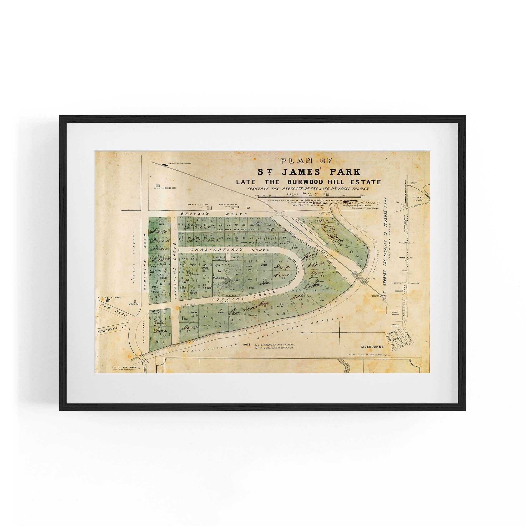 1872 Vintage Map of Hawthorn, Victoria Australia