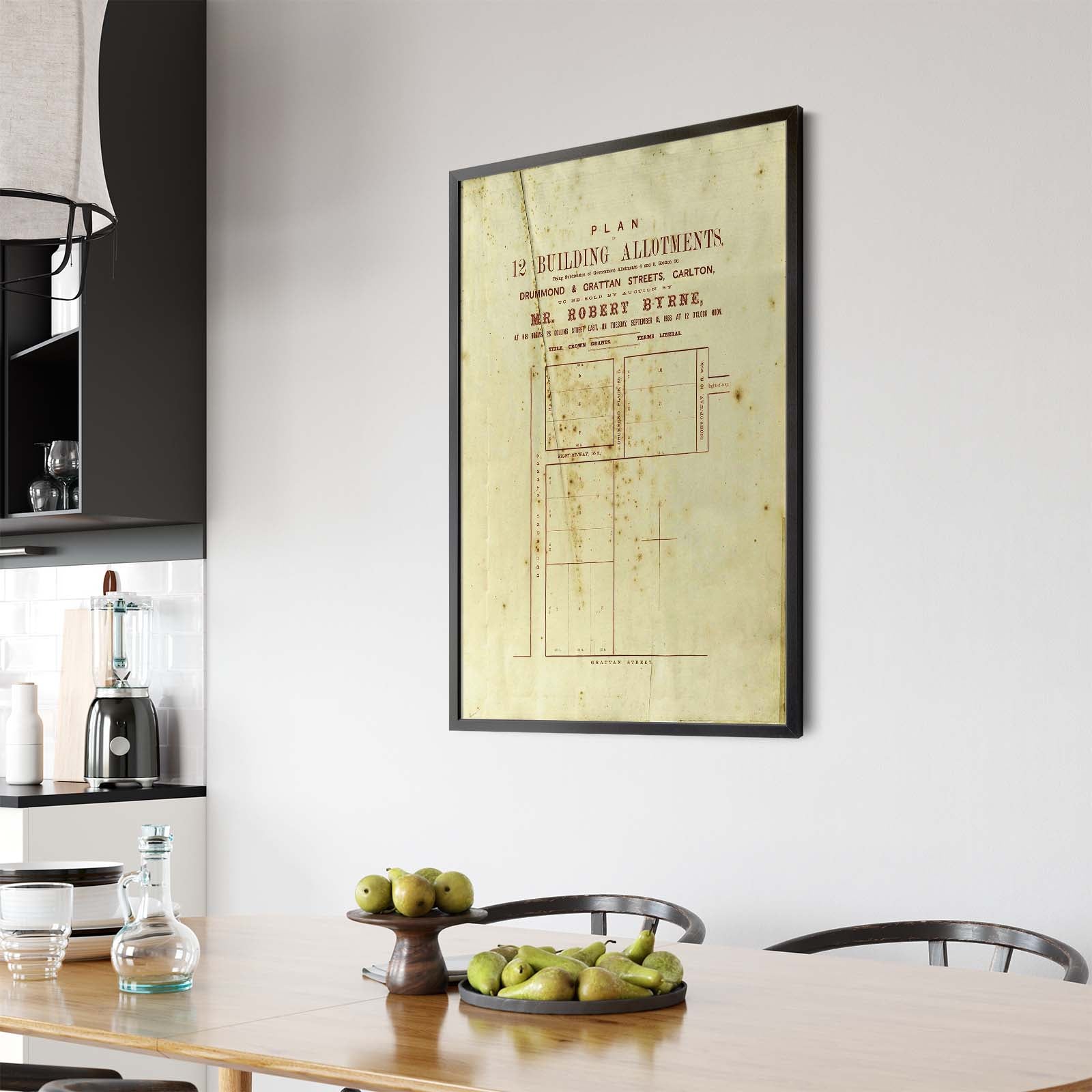 Recently moving to Harcourt and being interested in the history of the area, it seemed fitting to purchase a vintage map of the area which is displayed on our kitchen wall for us to study easily, identifying the block of land we bought. Nicely framed too.