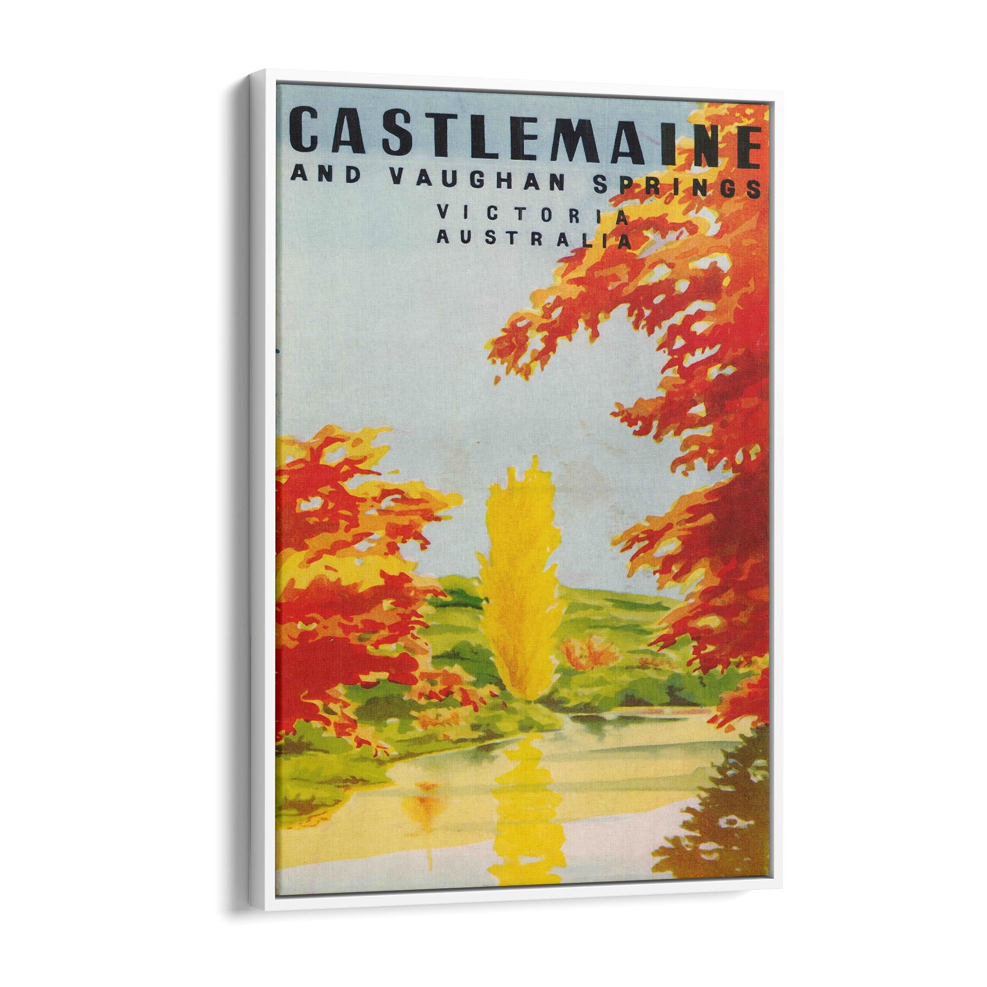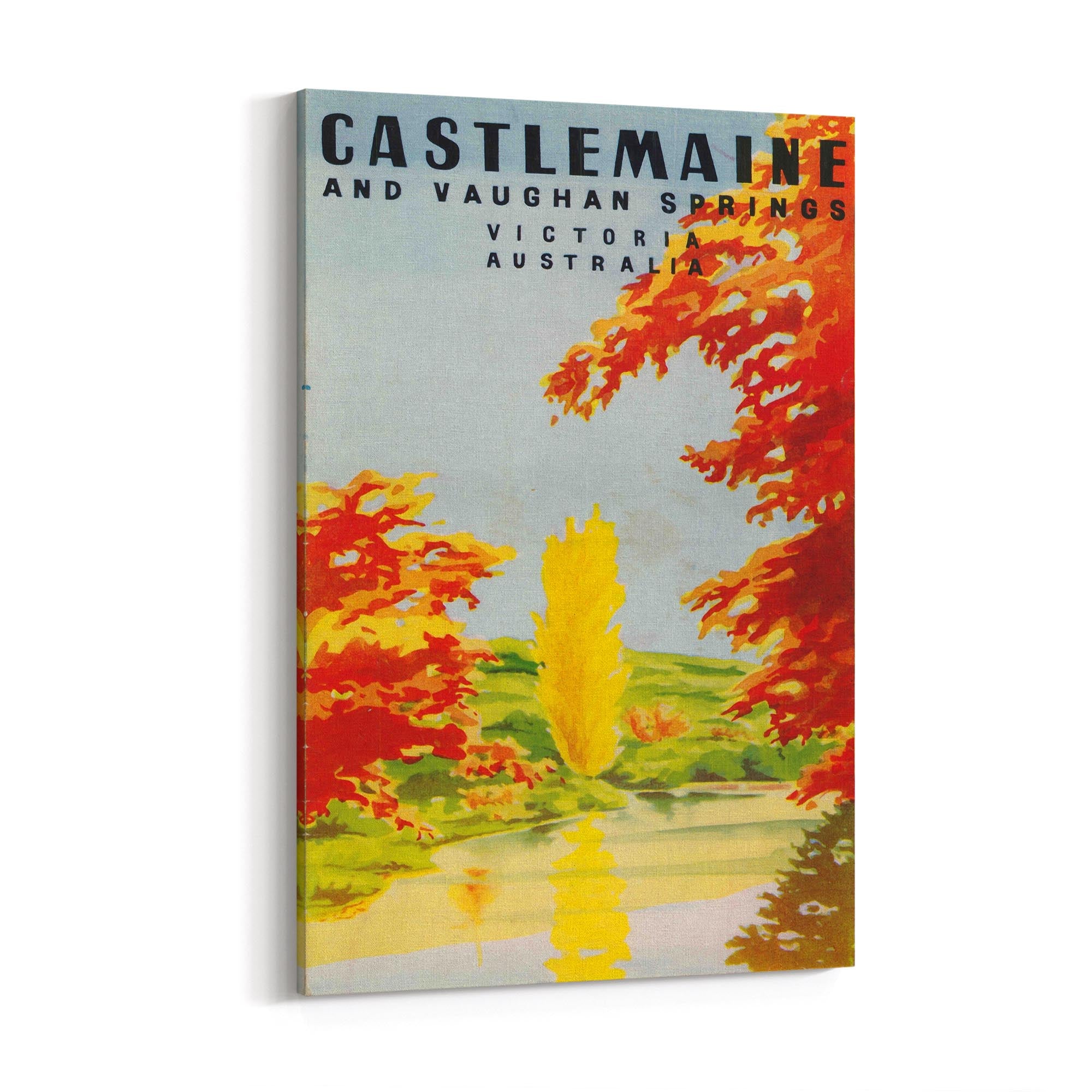 Travel advert for Castlemaine and Vaughan Springs, Victoria, Australia. Issued by the Victorian Railways Commissioners, Melbourne, in conjunction with the Castlemaine Tourist and Publicity Association. 1949?