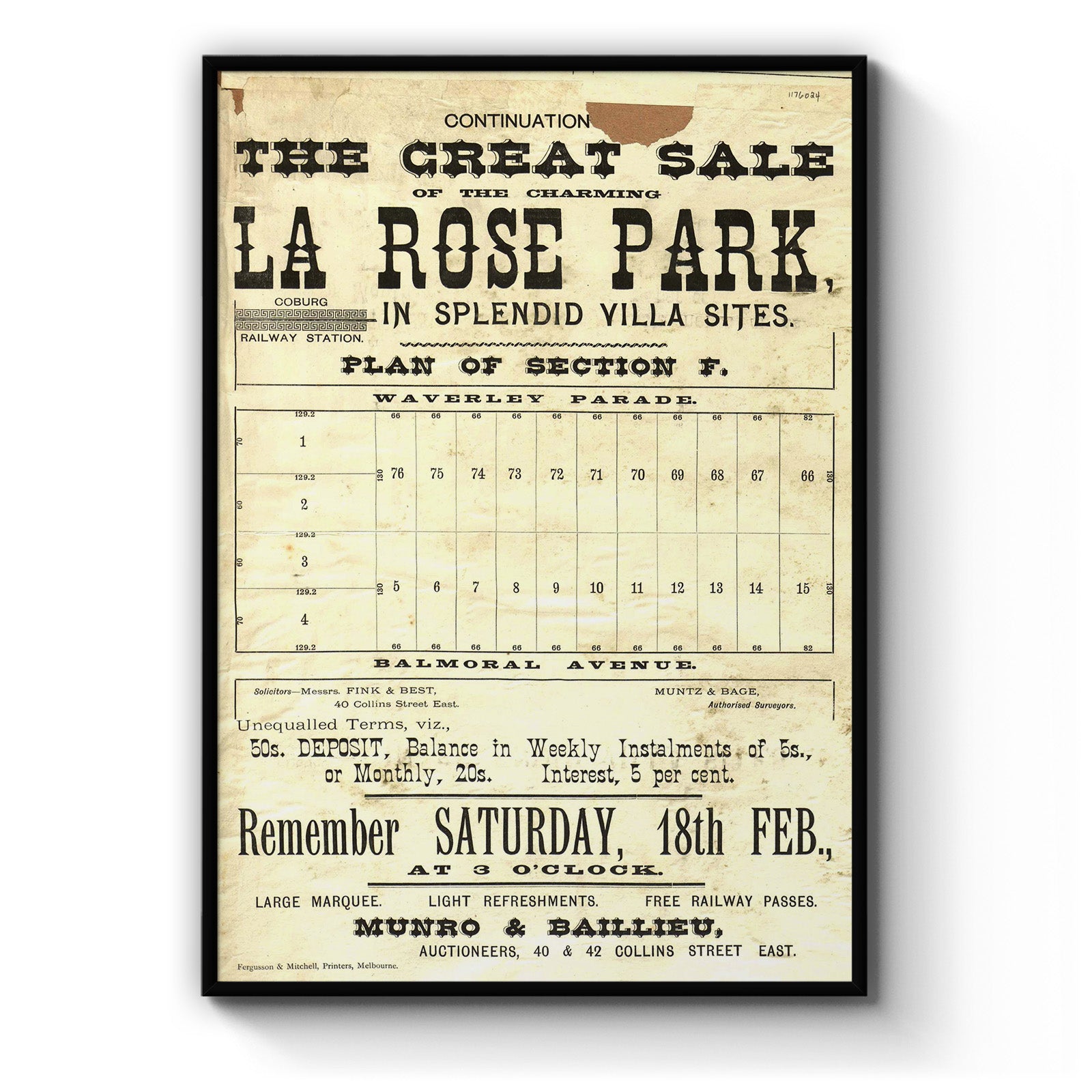 La Rose Park, Plan of section F. [1888?] [cartographic material].