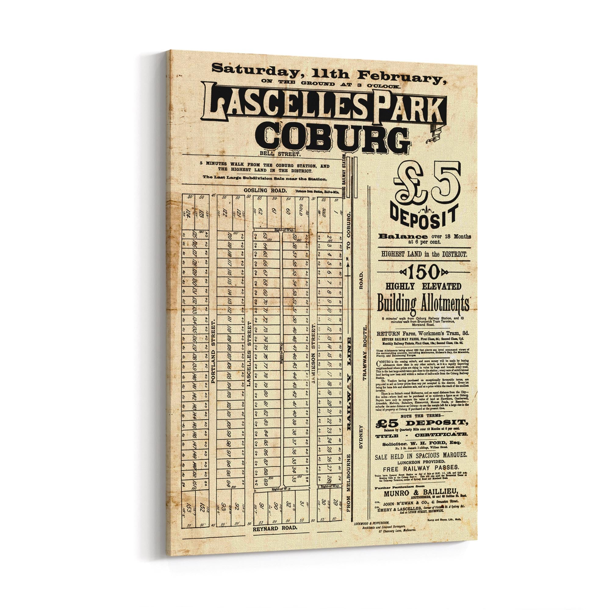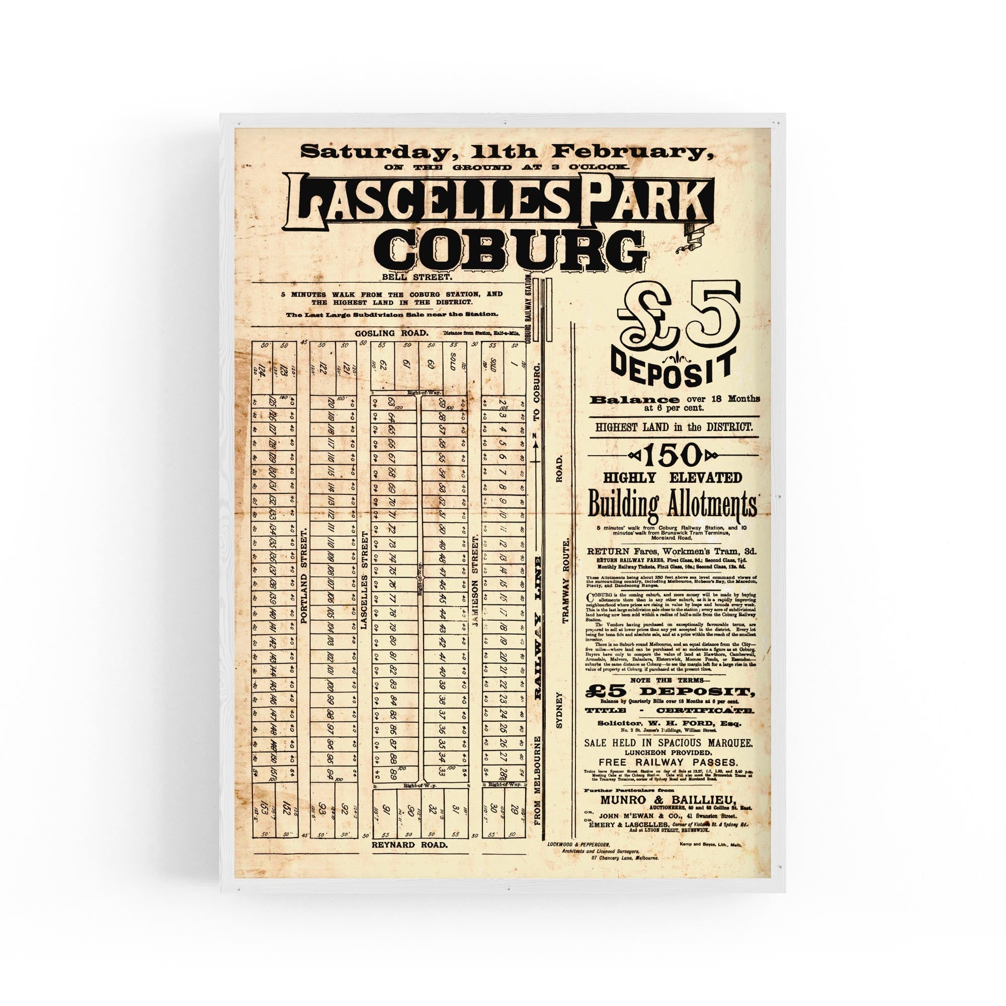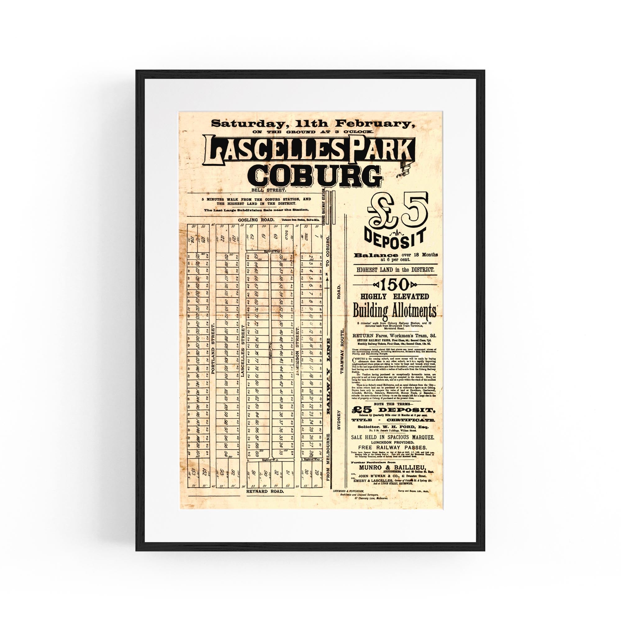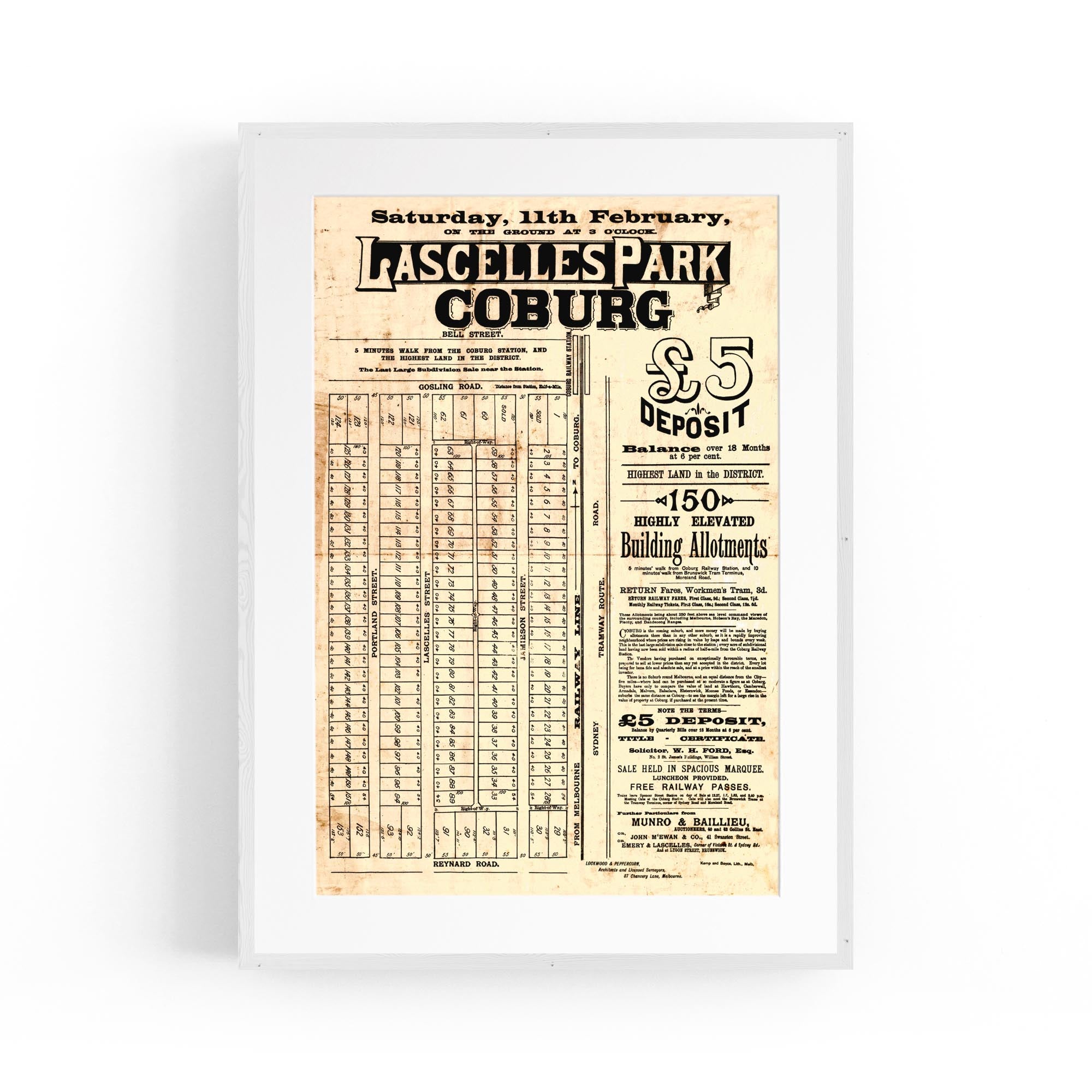 1888 Vintage Map of Coburg, Victoria Australia