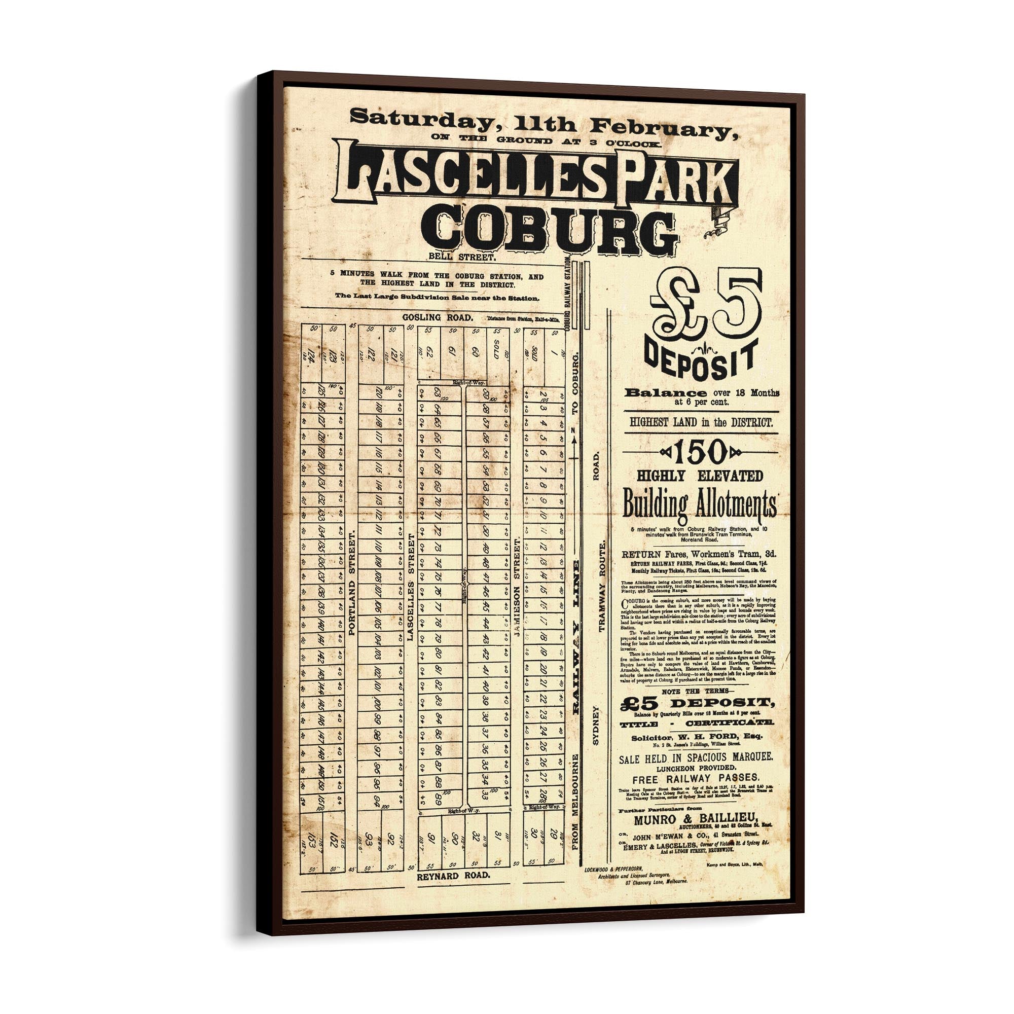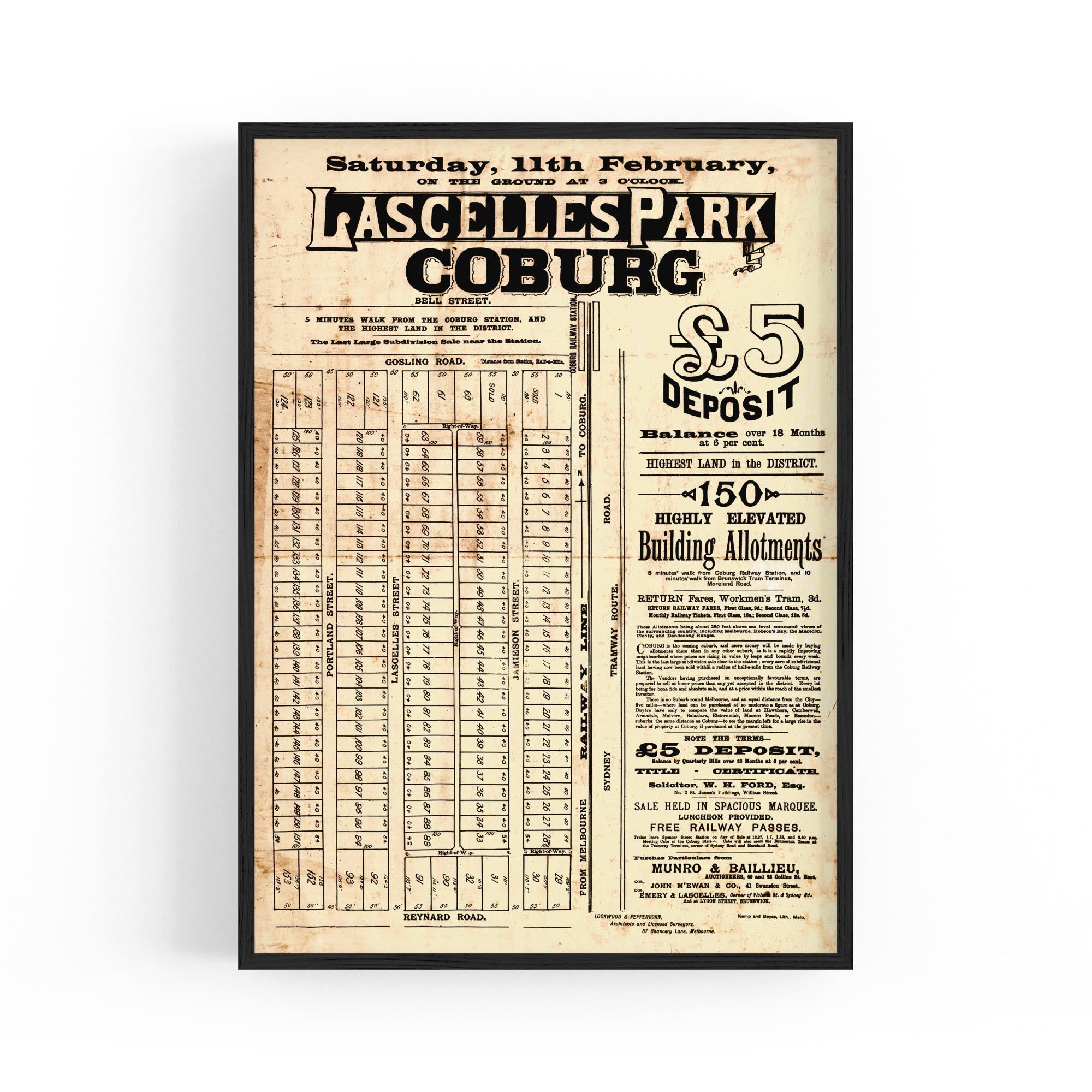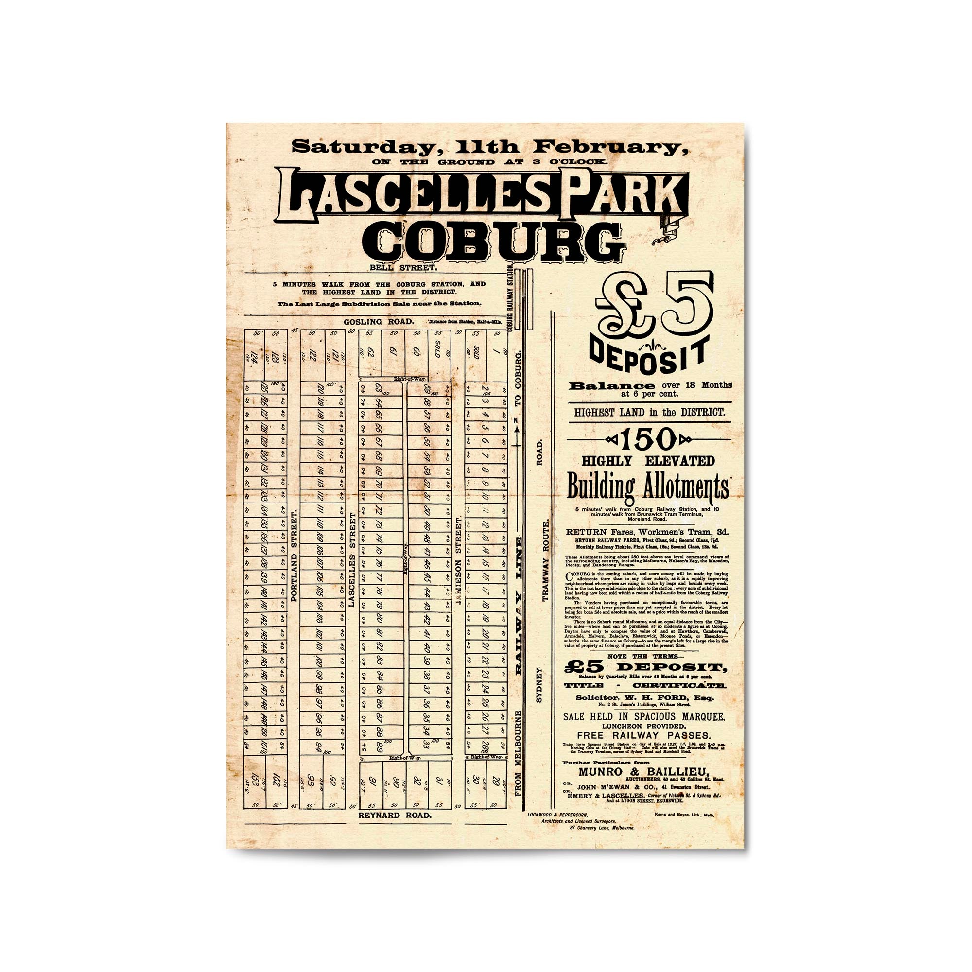 1888 Vintage Map of Coburg, Victoria Australia