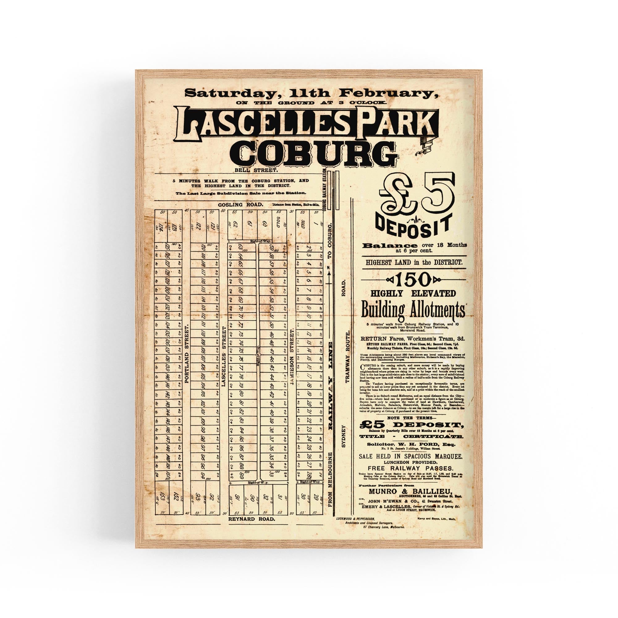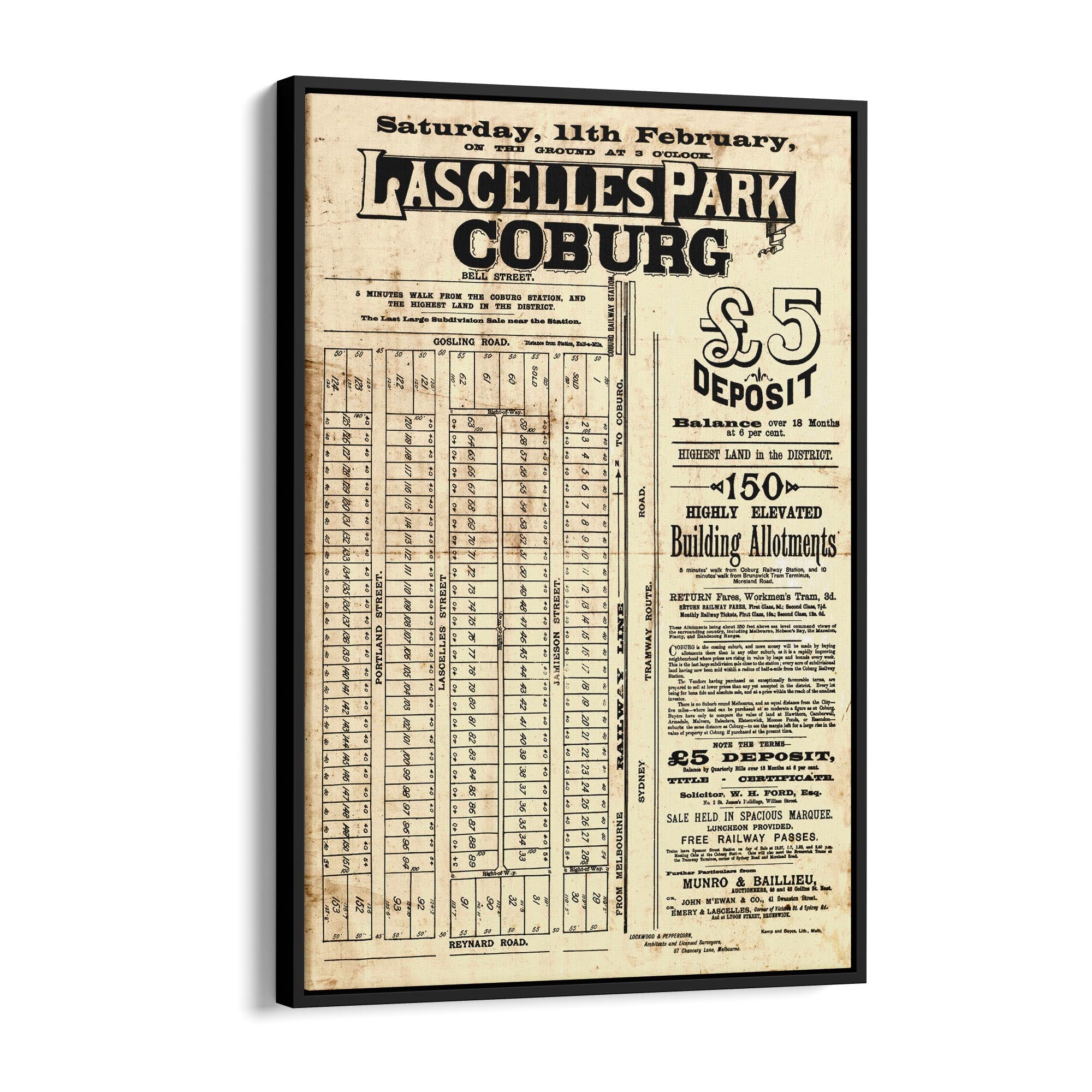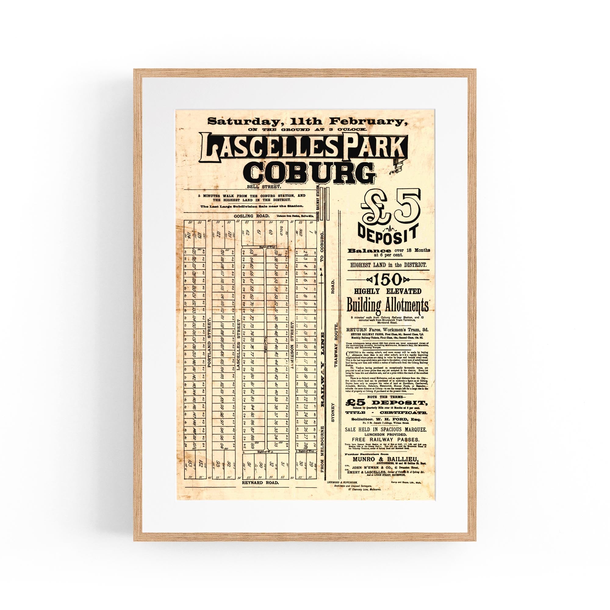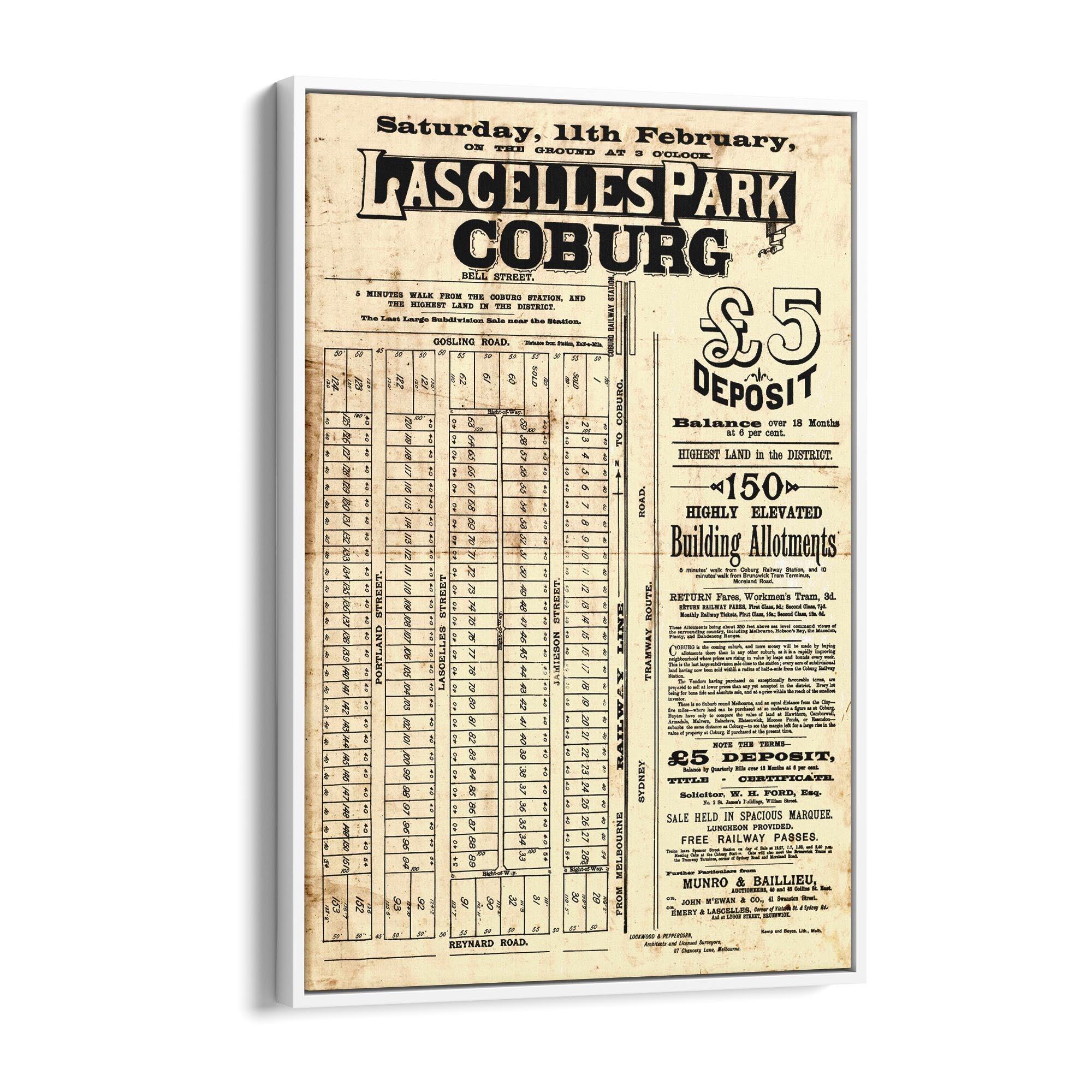 1888 Vintage Map of Coburg, Victoria Australia