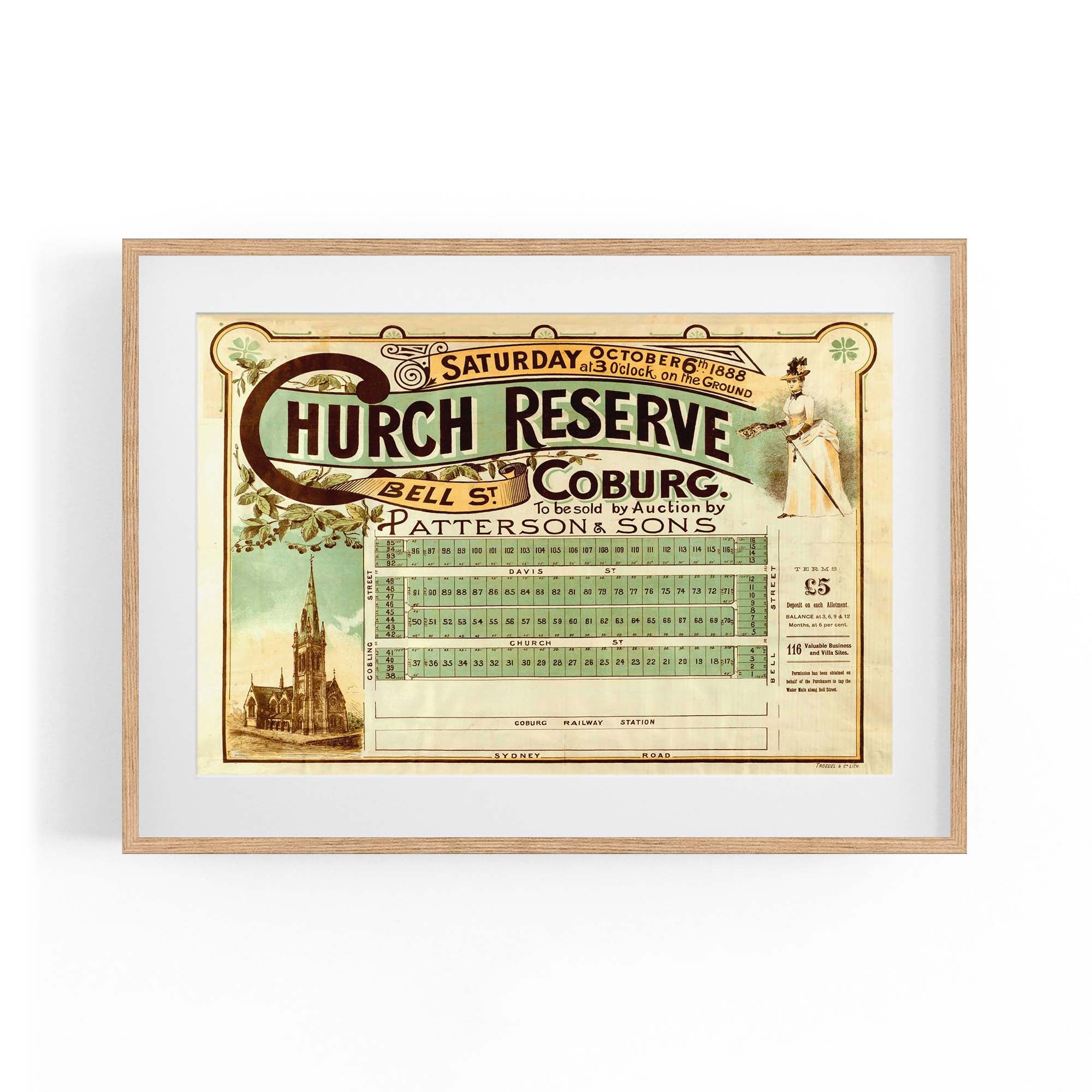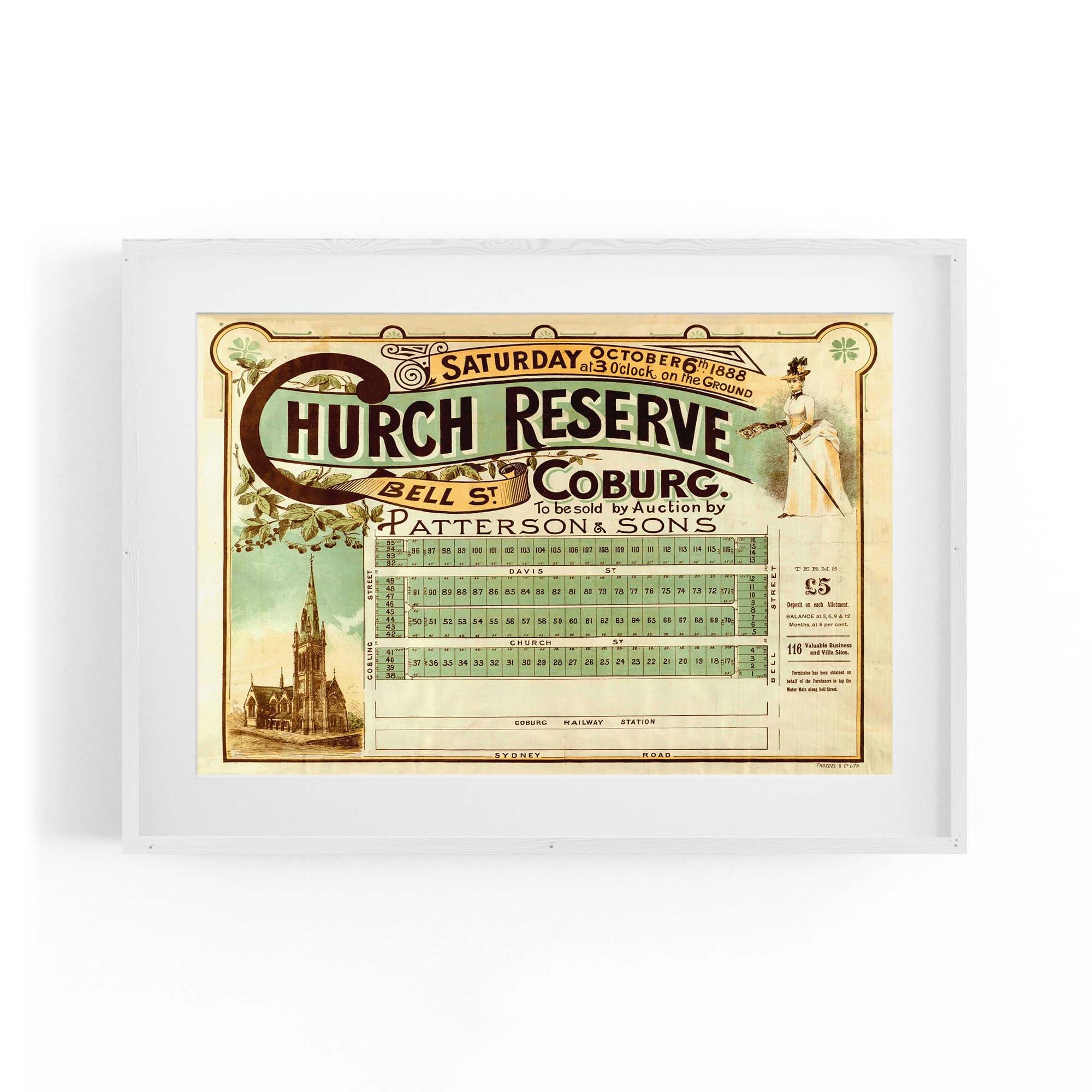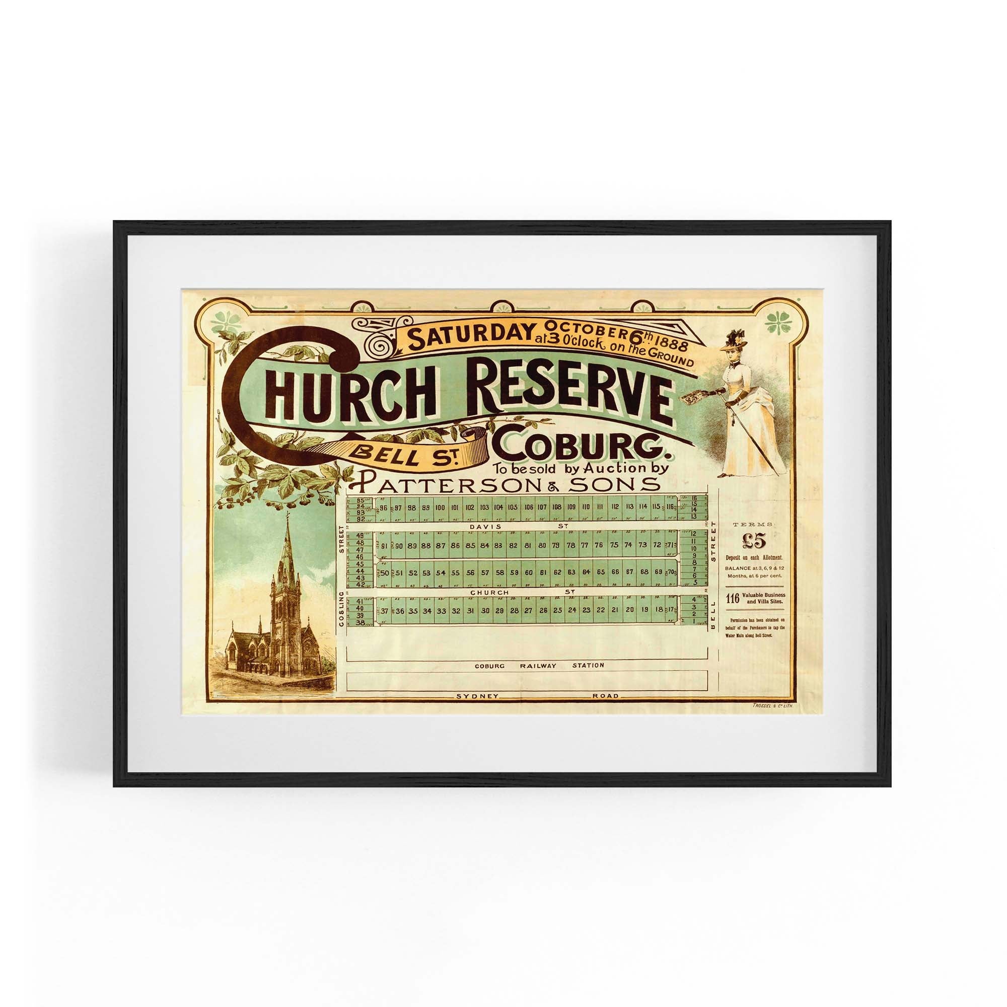 1888 Vintage Map of Coburg, Victoria Australia