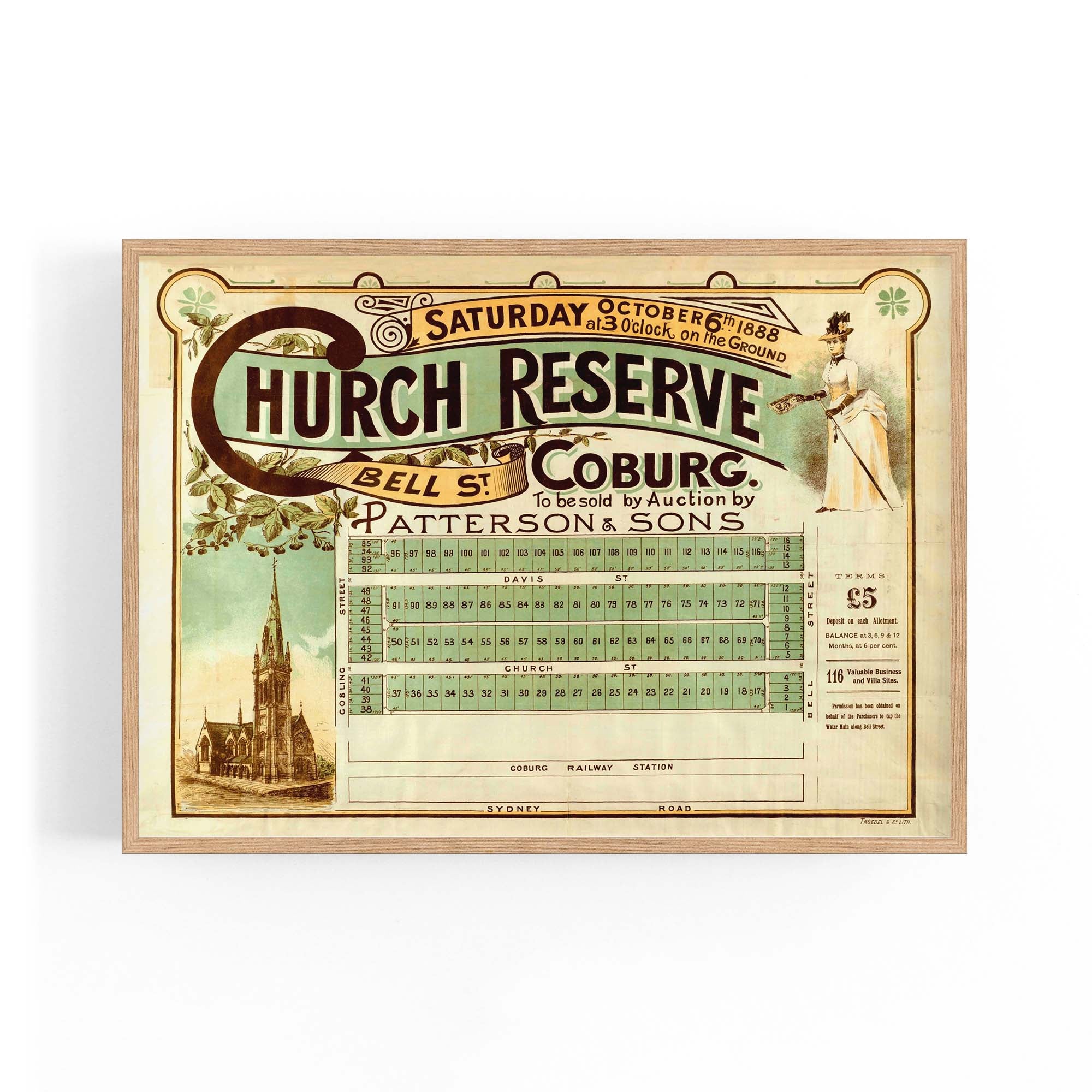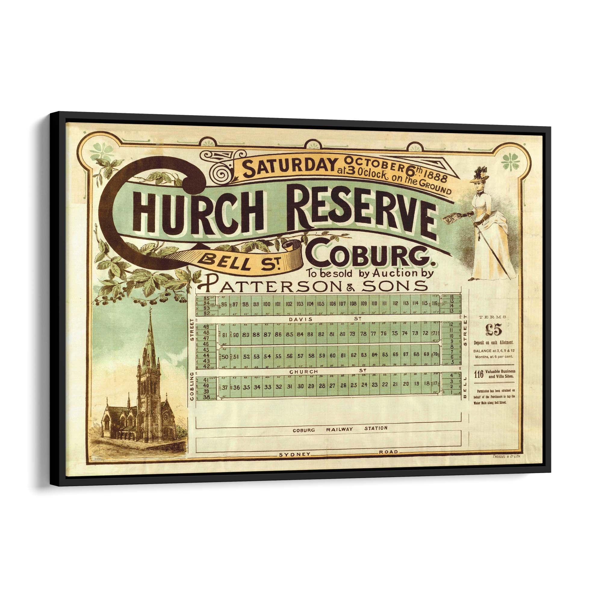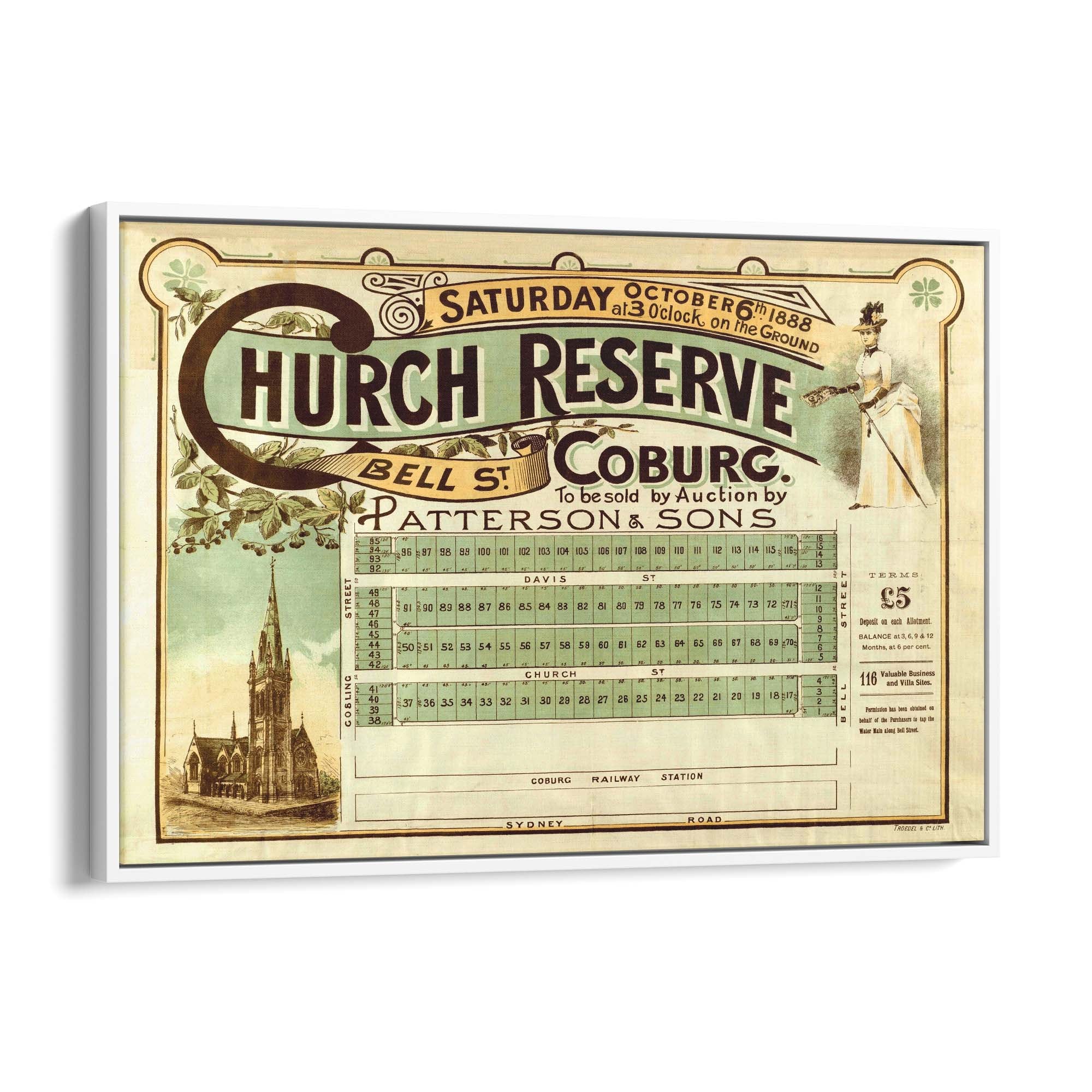 1888 Vintage Map of Coburg, Victoria Australia