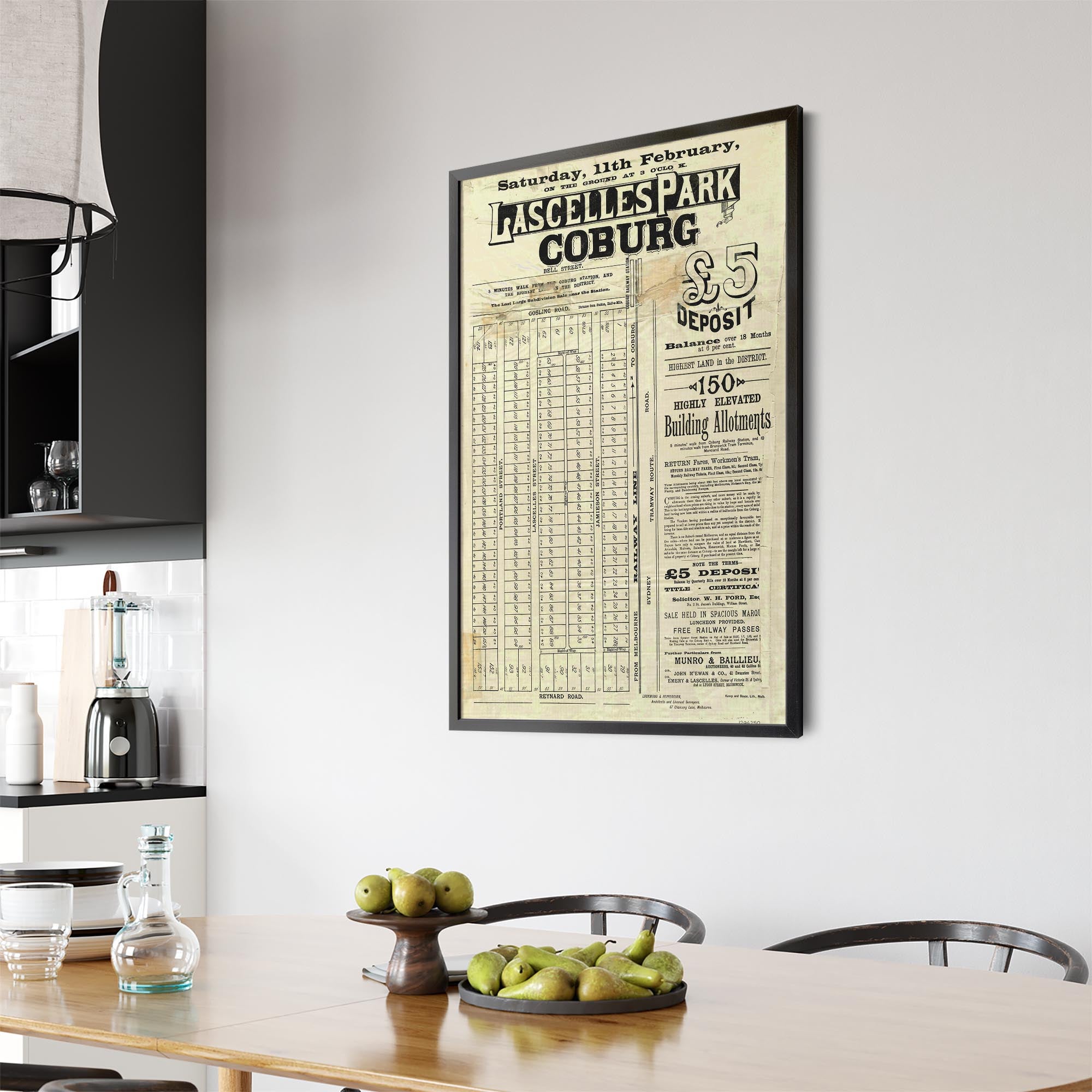 Recently moving to Harcourt and being interested in the history of the area, it seemed fitting to purchase a vintage map of the area which is displayed on our kitchen wall for us to study easily, identifying the block of land we bought. Nicely framed too.