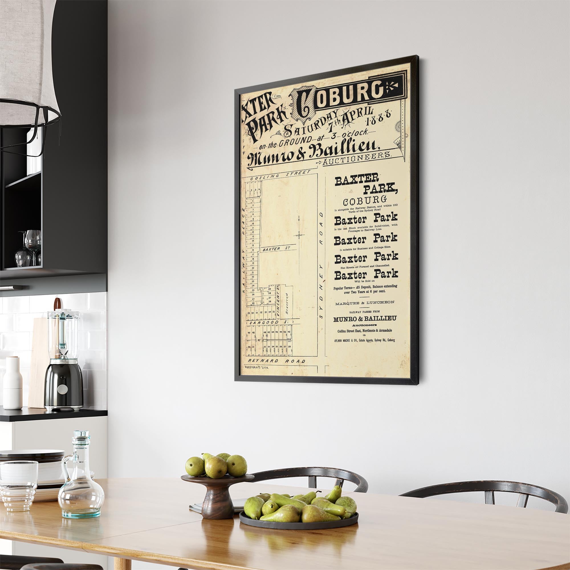 Recently moving to Harcourt and being interested in the history of the area, it seemed fitting to purchase a vintage map of the area which is displayed on our kitchen wall for us to study easily, identifying the block of land we bought. Nicely framed too.