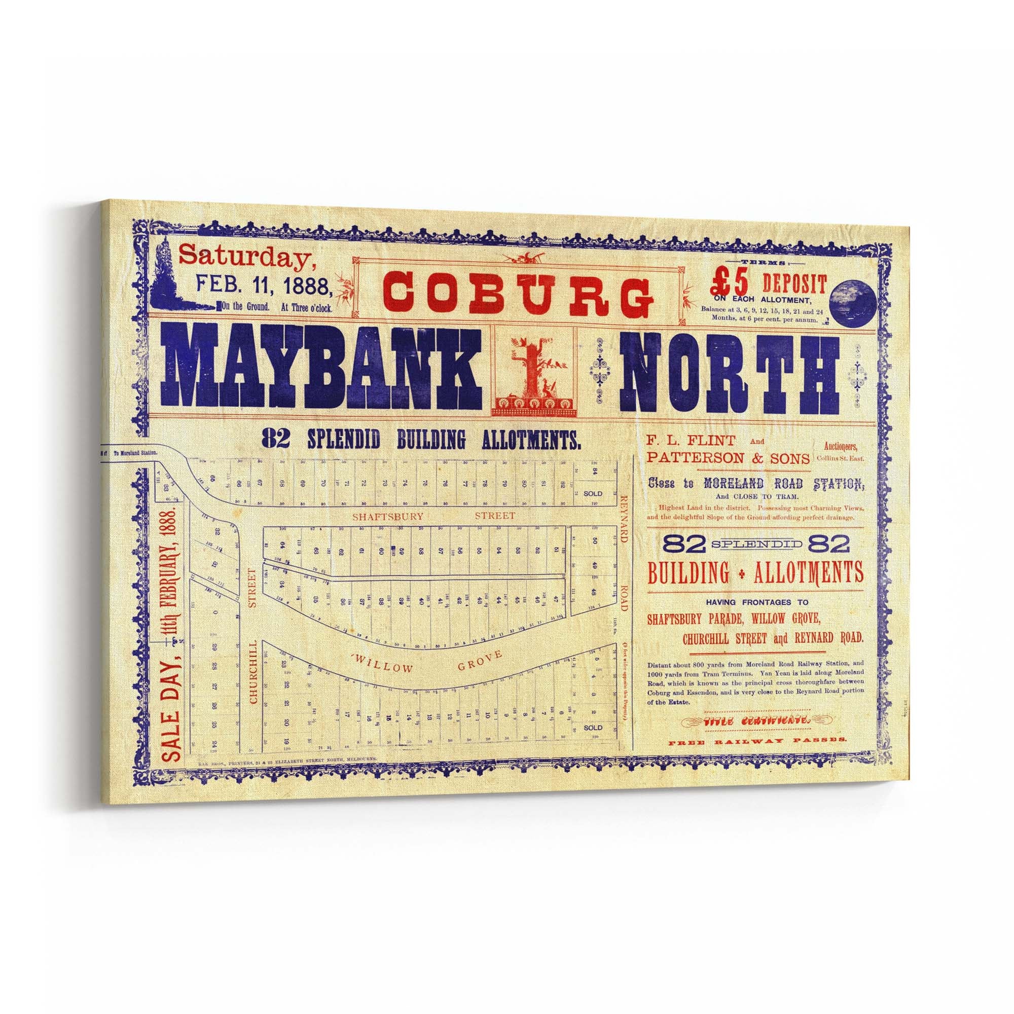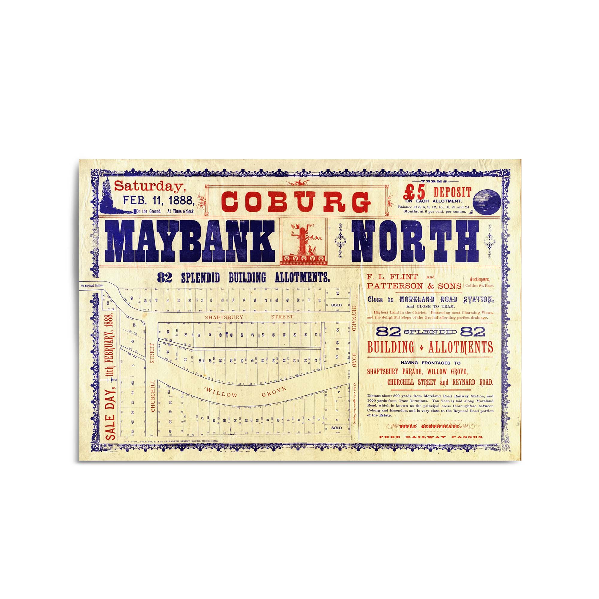 1888 Real Estate Map of "Maybank North" Coburg, Victoria