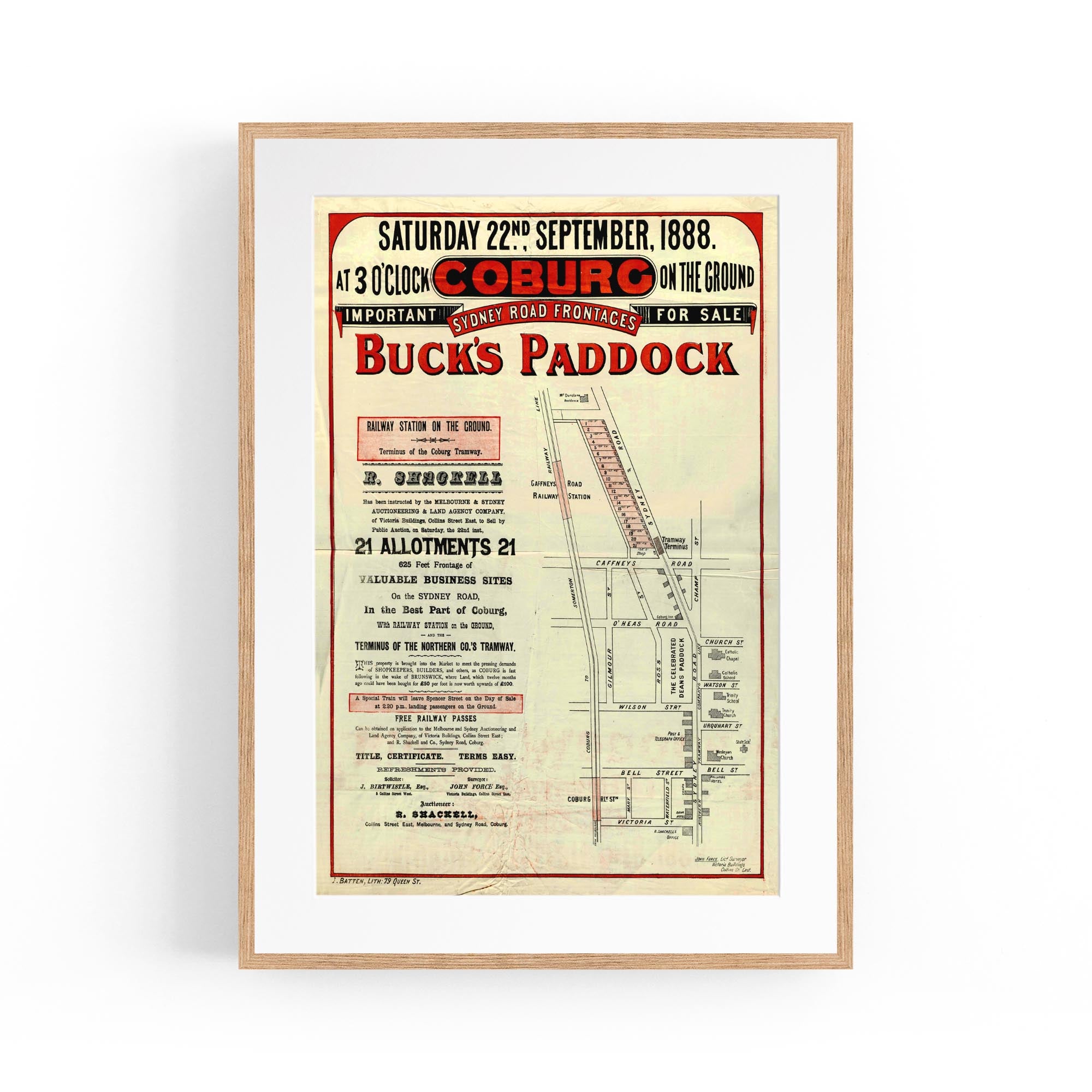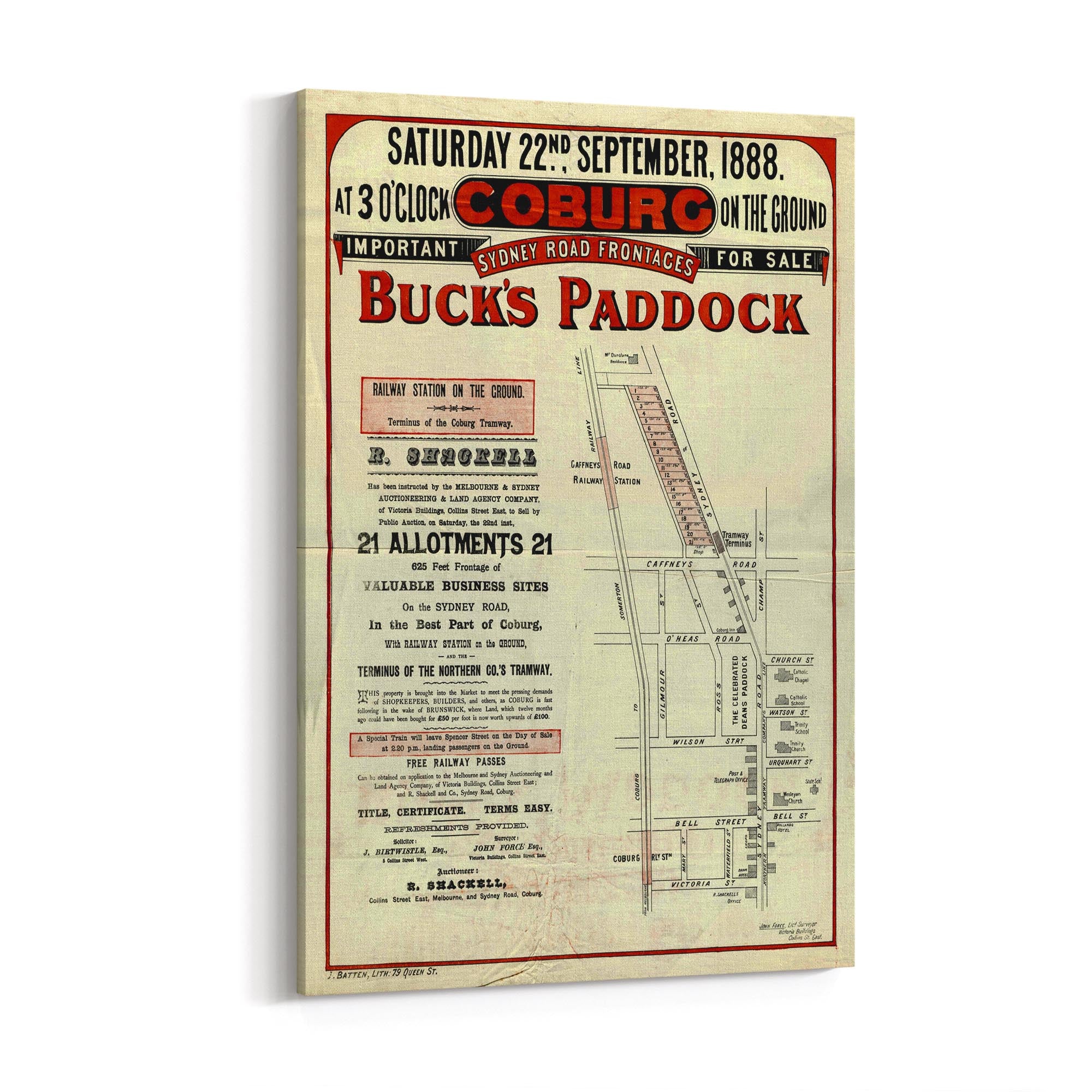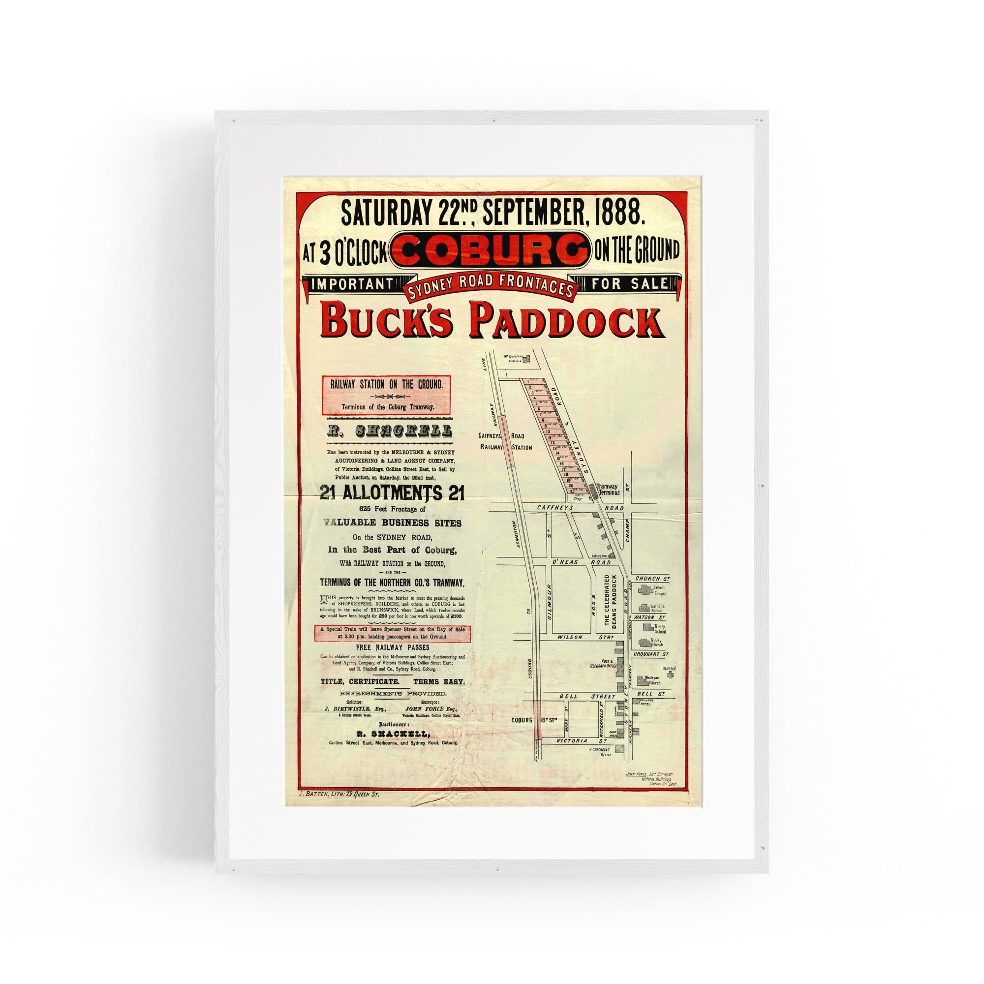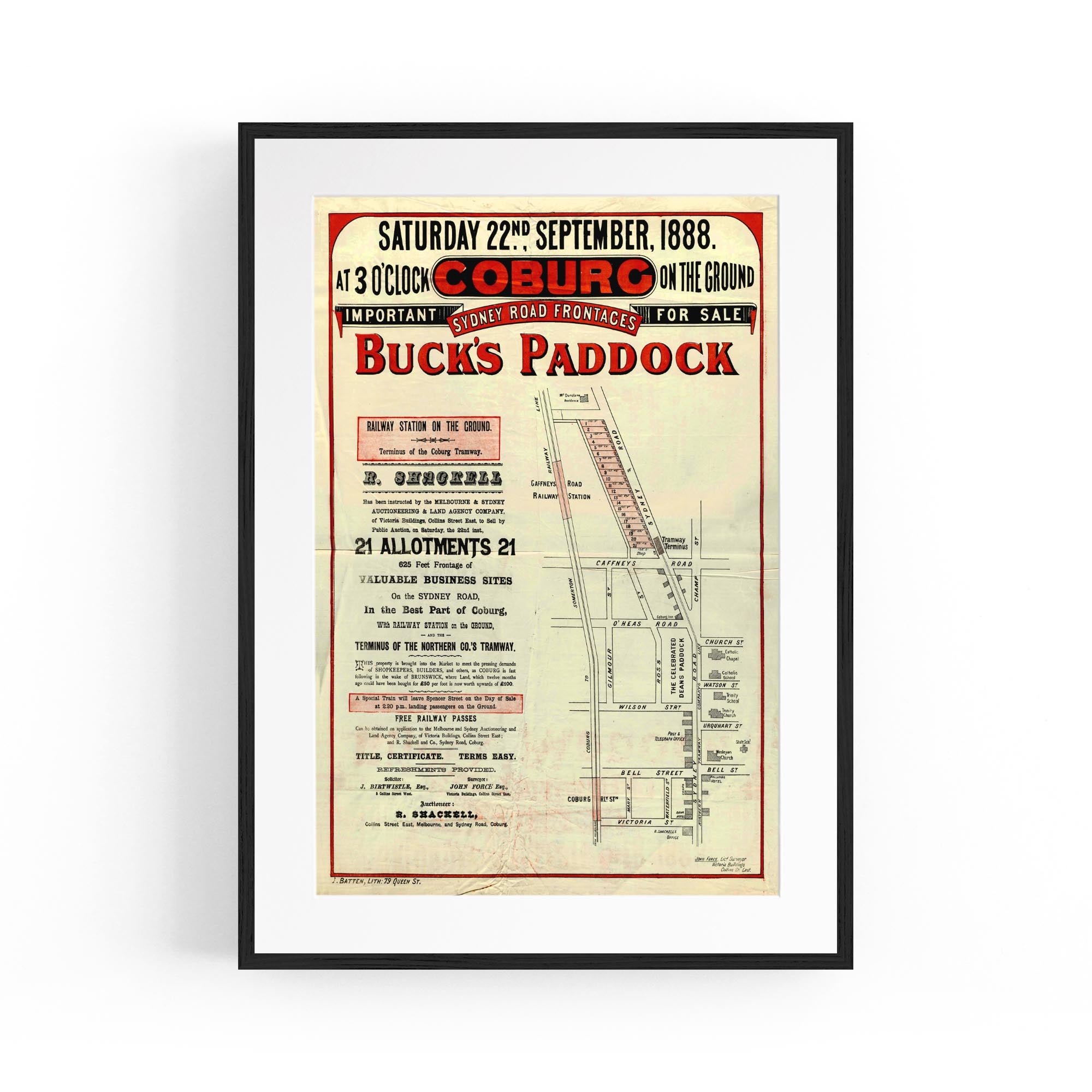 1888 Vintage Map of Coburg, Victoria Australia