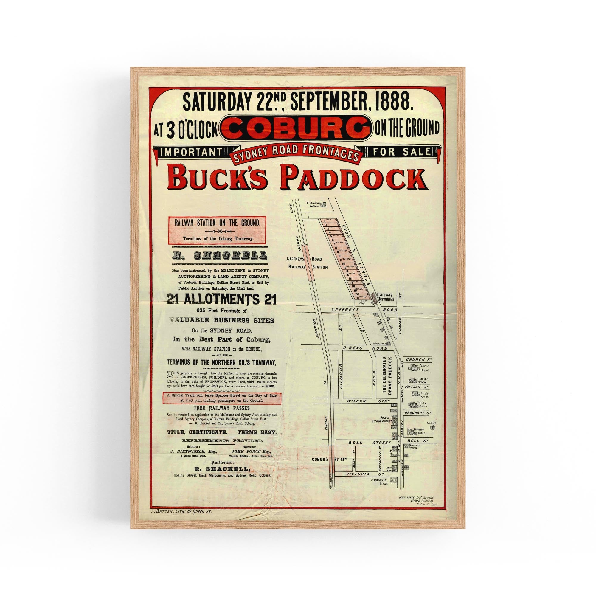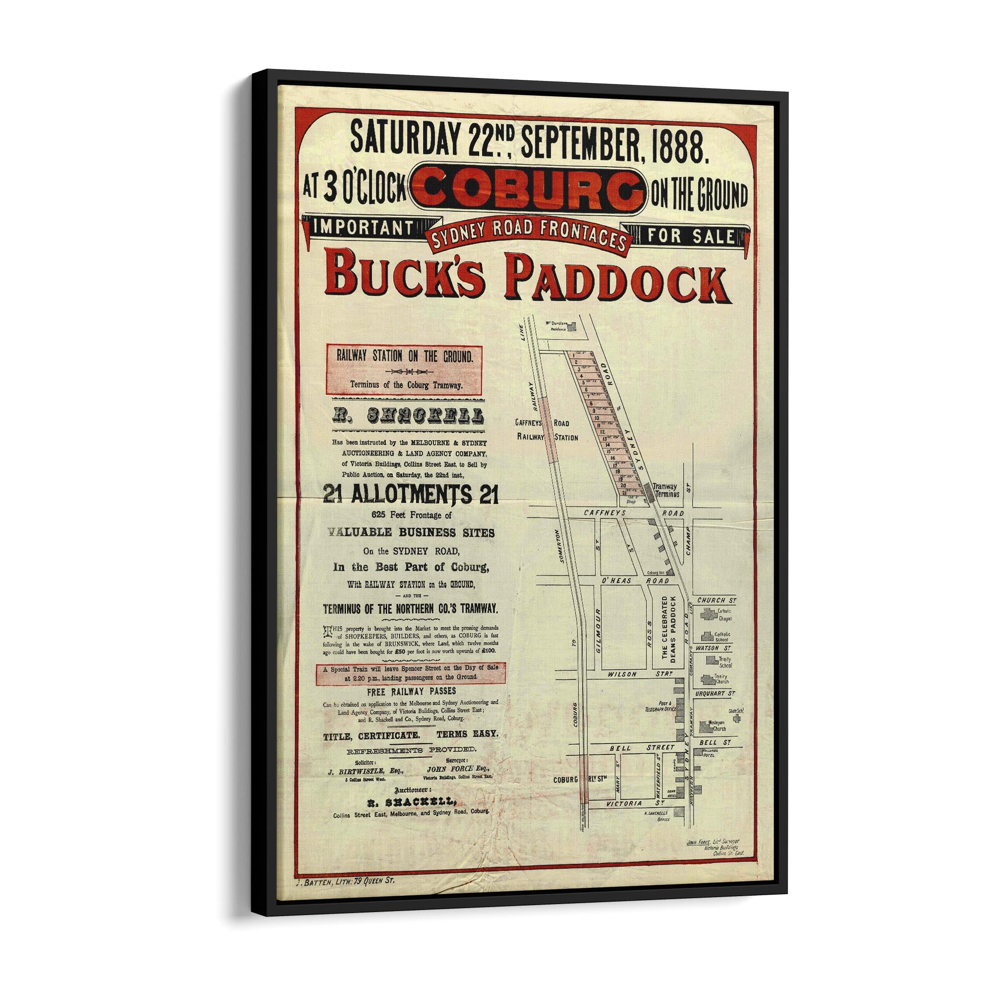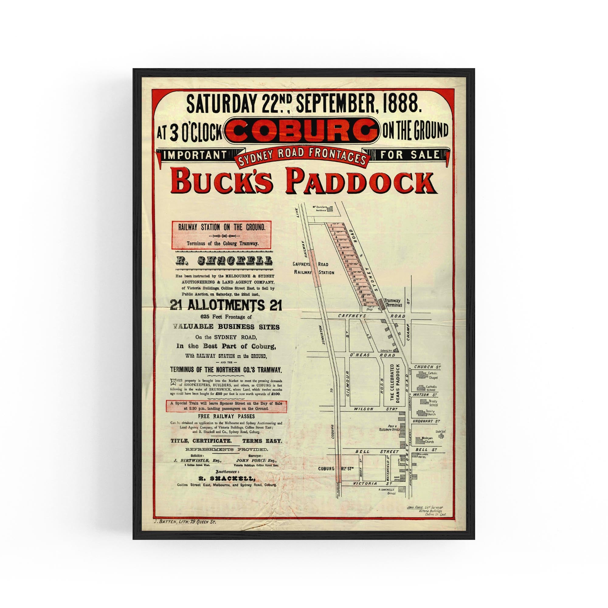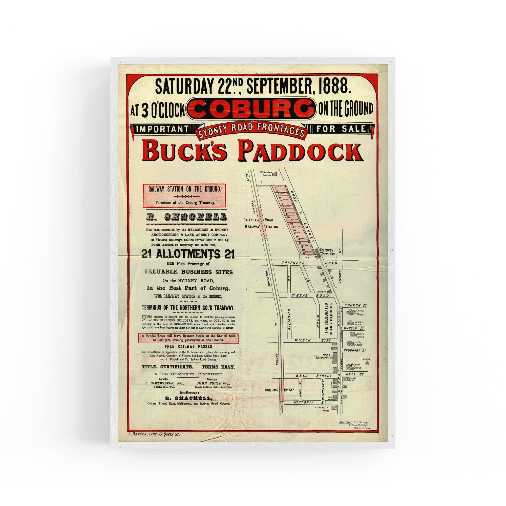 1888 Vintage Map of Coburg, Victoria Australia