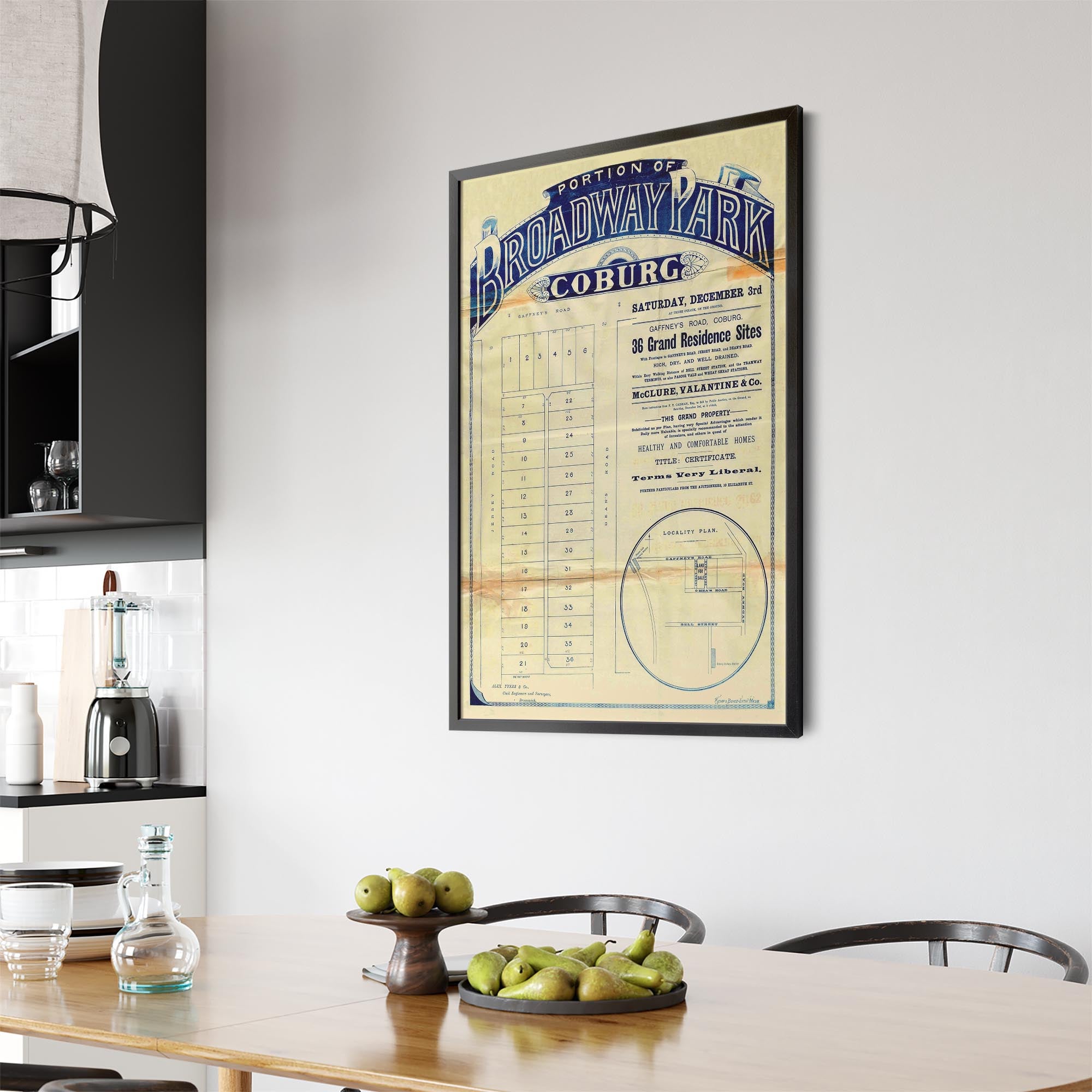 Recently moving to Harcourt and being interested in the history of the area, it seemed fitting to purchase a vintage map of the area which is displayed on our kitchen wall for us to study easily, identifying the block of land we bought. Nicely framed too.