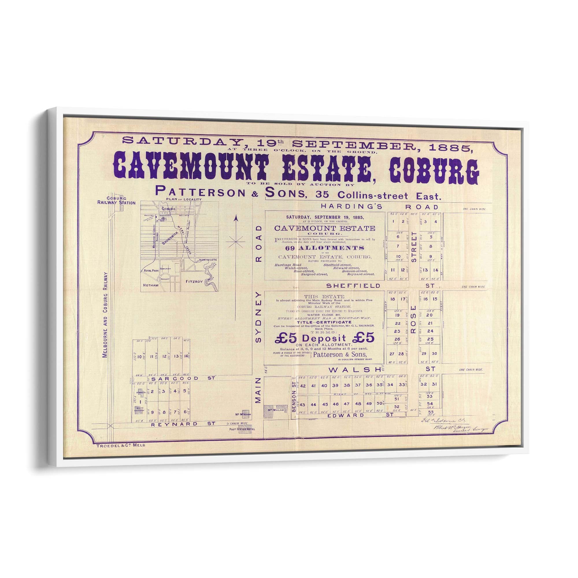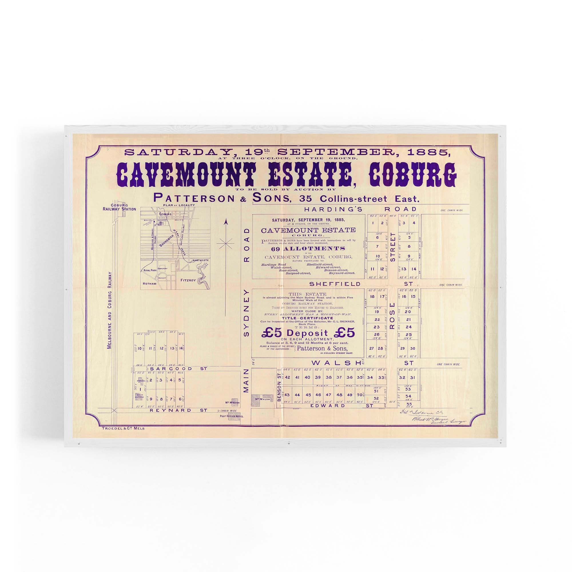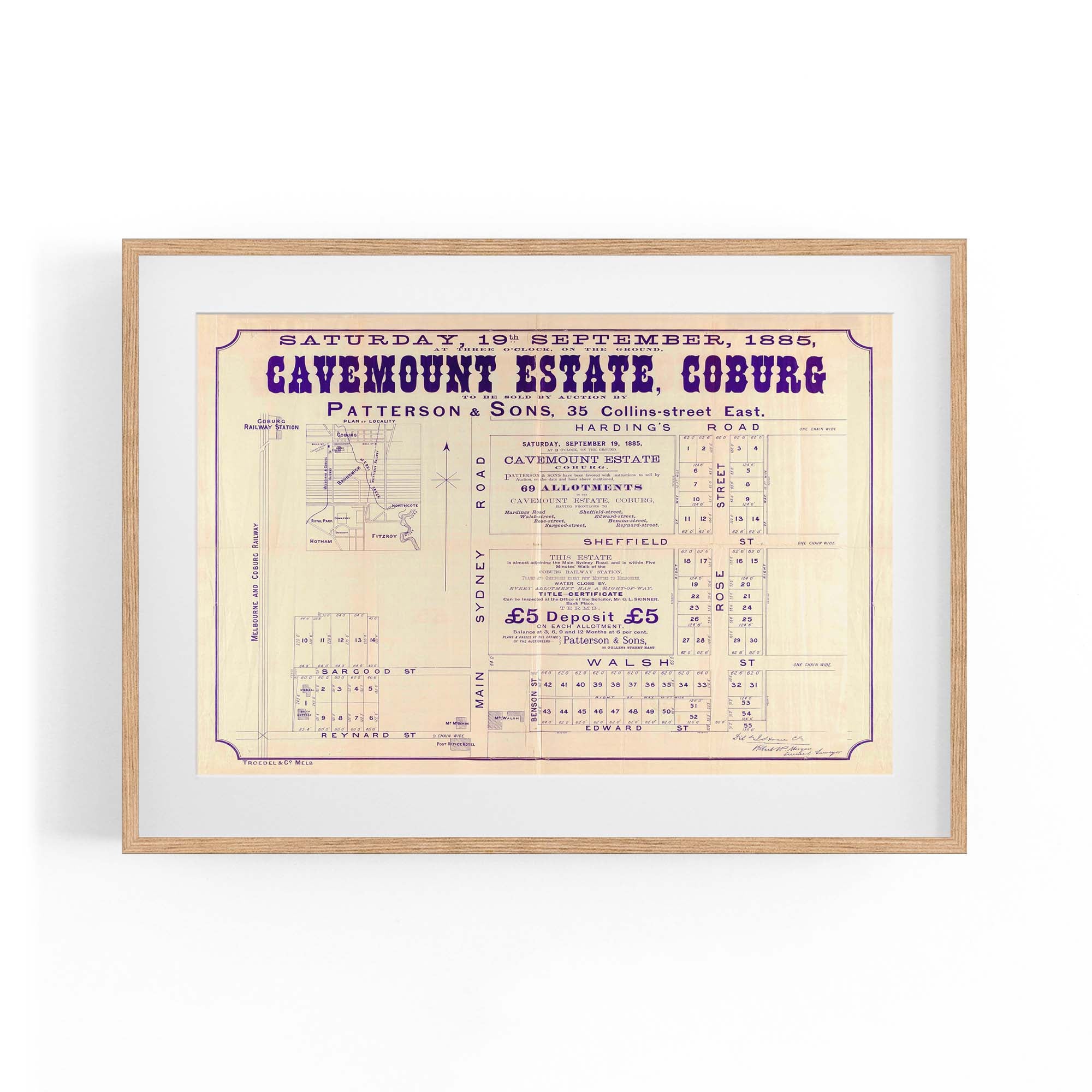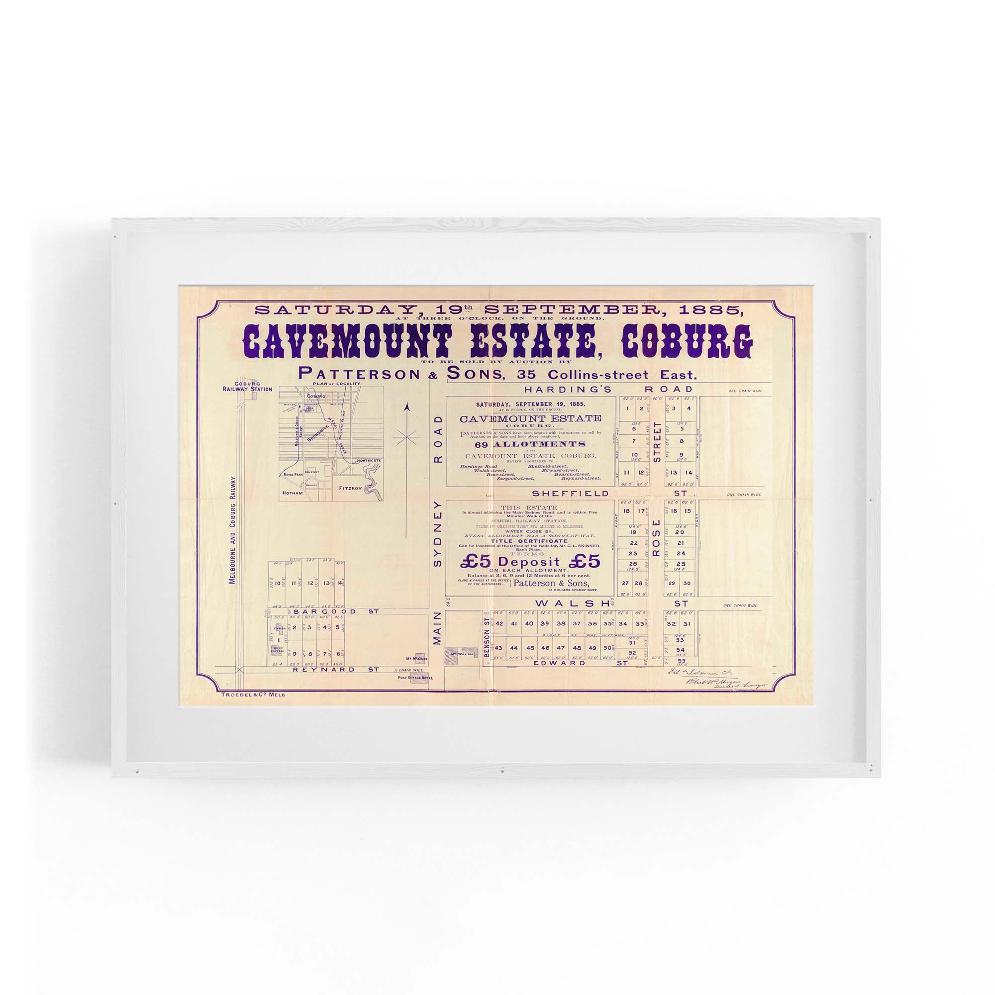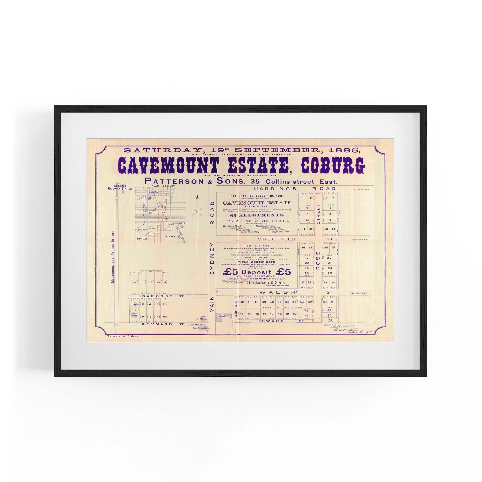 1885 Vintage Map of Coburg, Victoria Australia