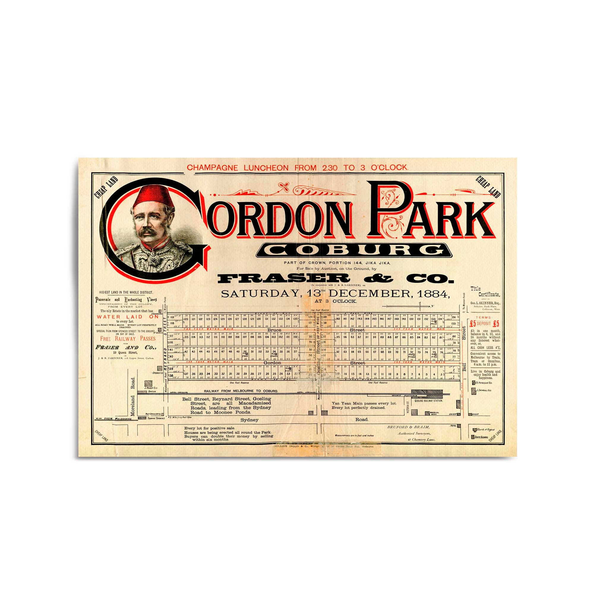 "For sale by auction, on the ground, by Fraser & Co. Saturday, 13th December, 1884, at 3 o'clock."