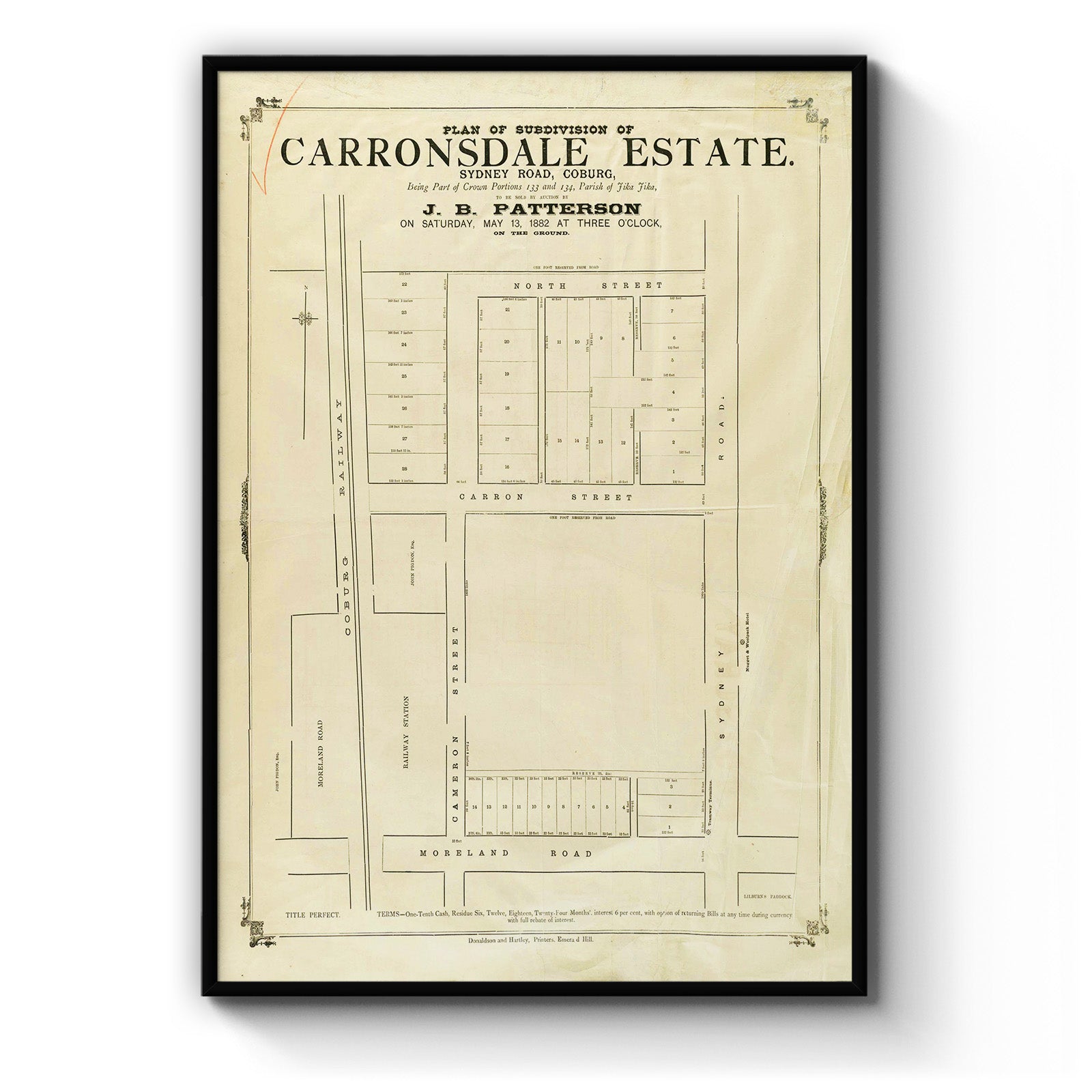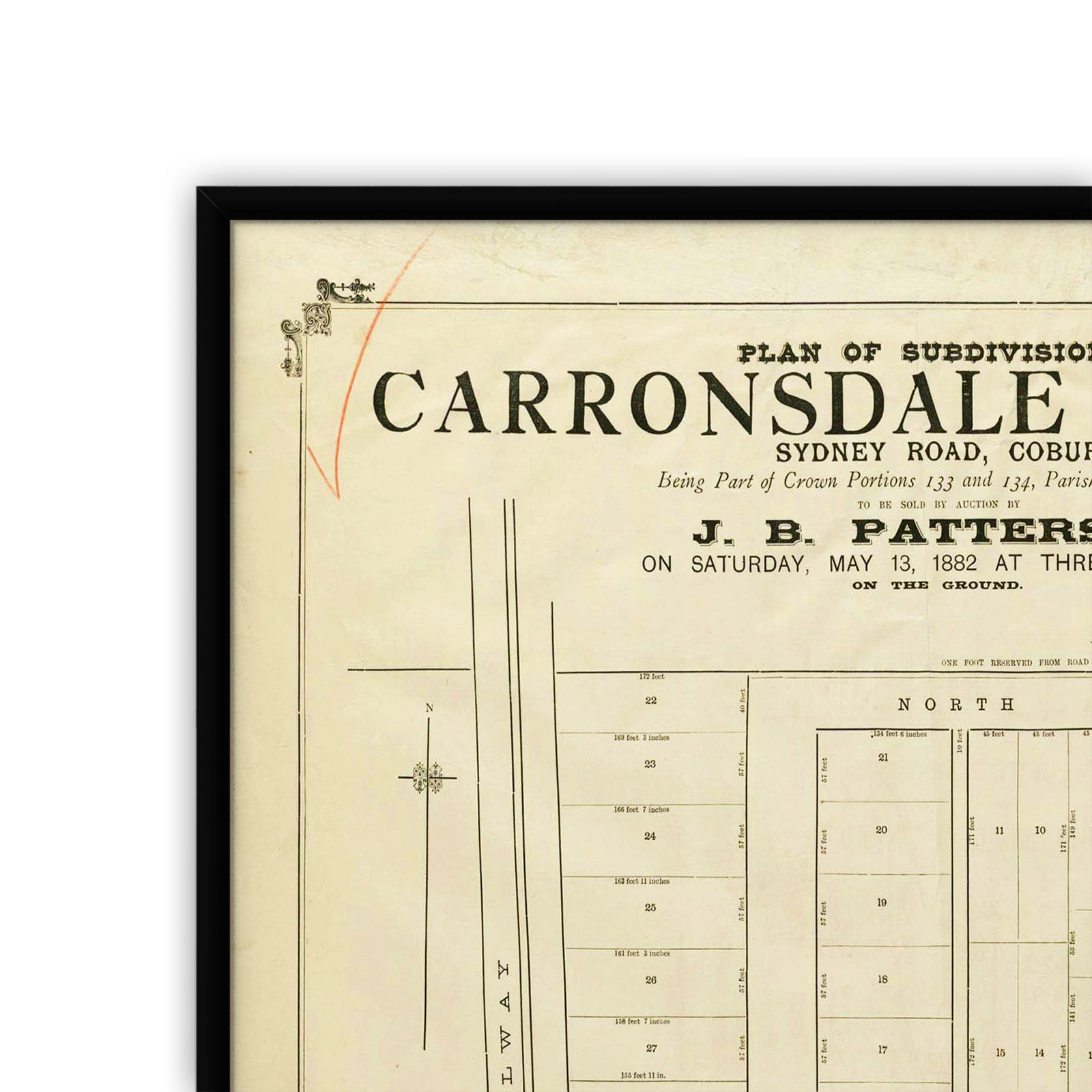 Plan of subdivision of Carronsdale Estate, Sydney Road, Coburg [cartographic material]. 1882