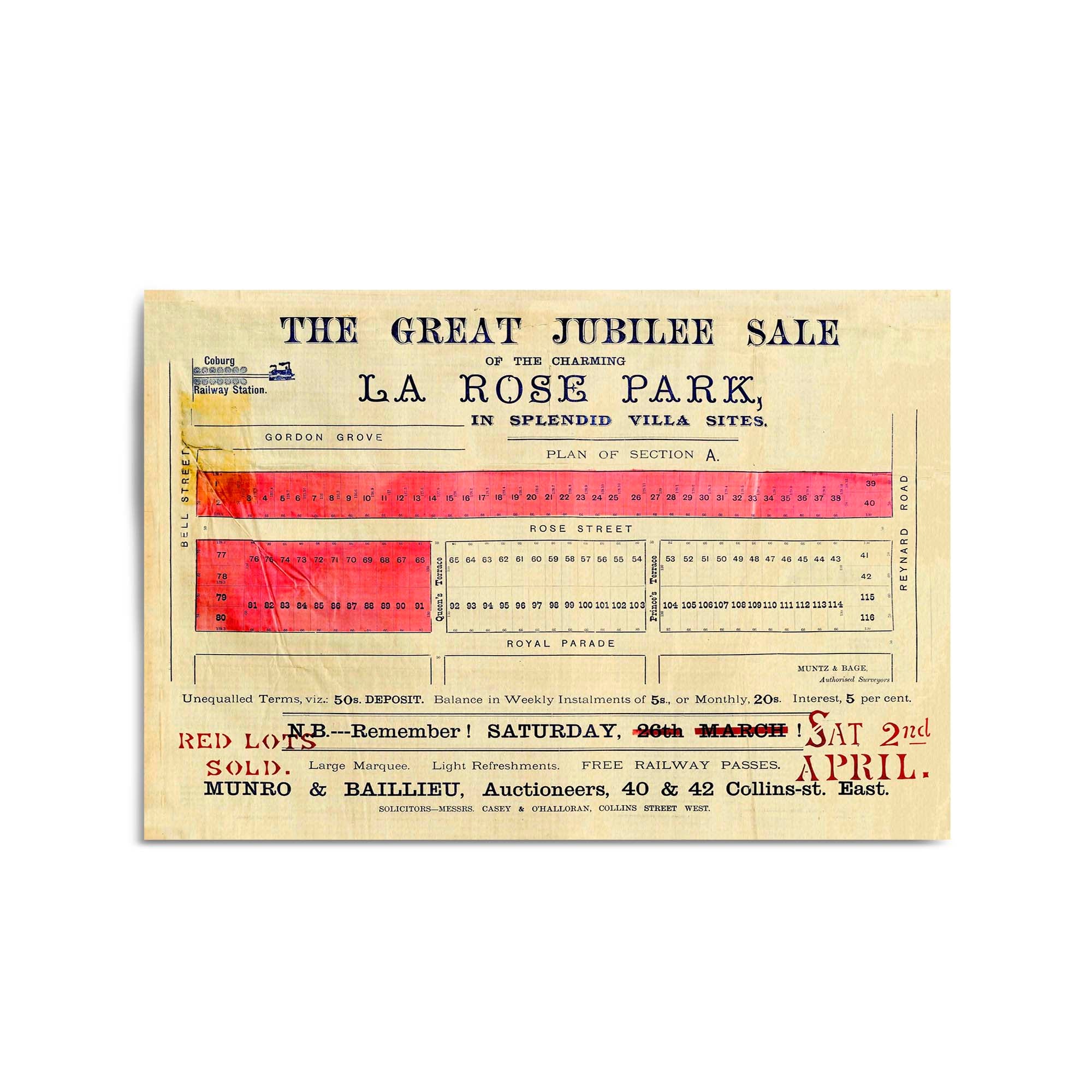 Map has an illustration of Queen Victoria and poetry describing La Rose on verso.