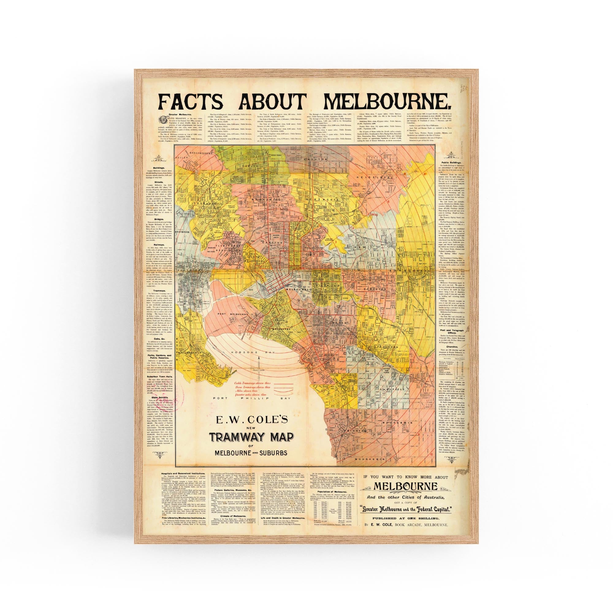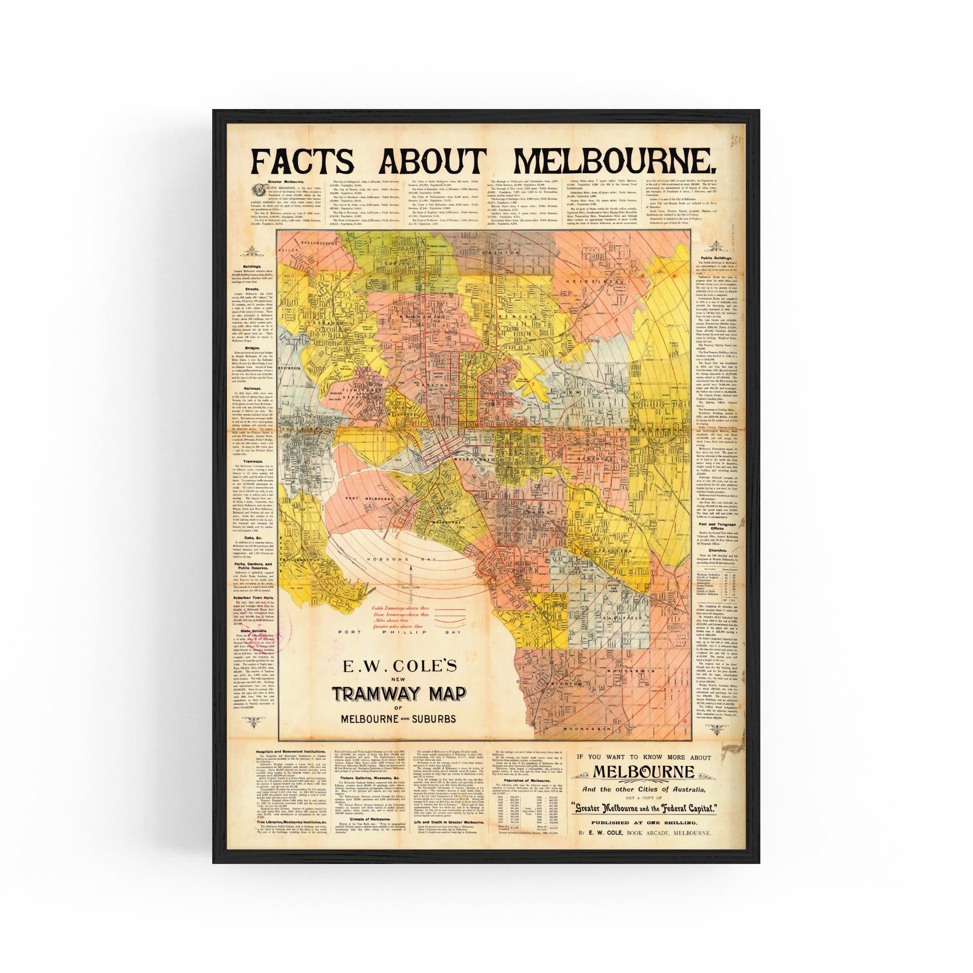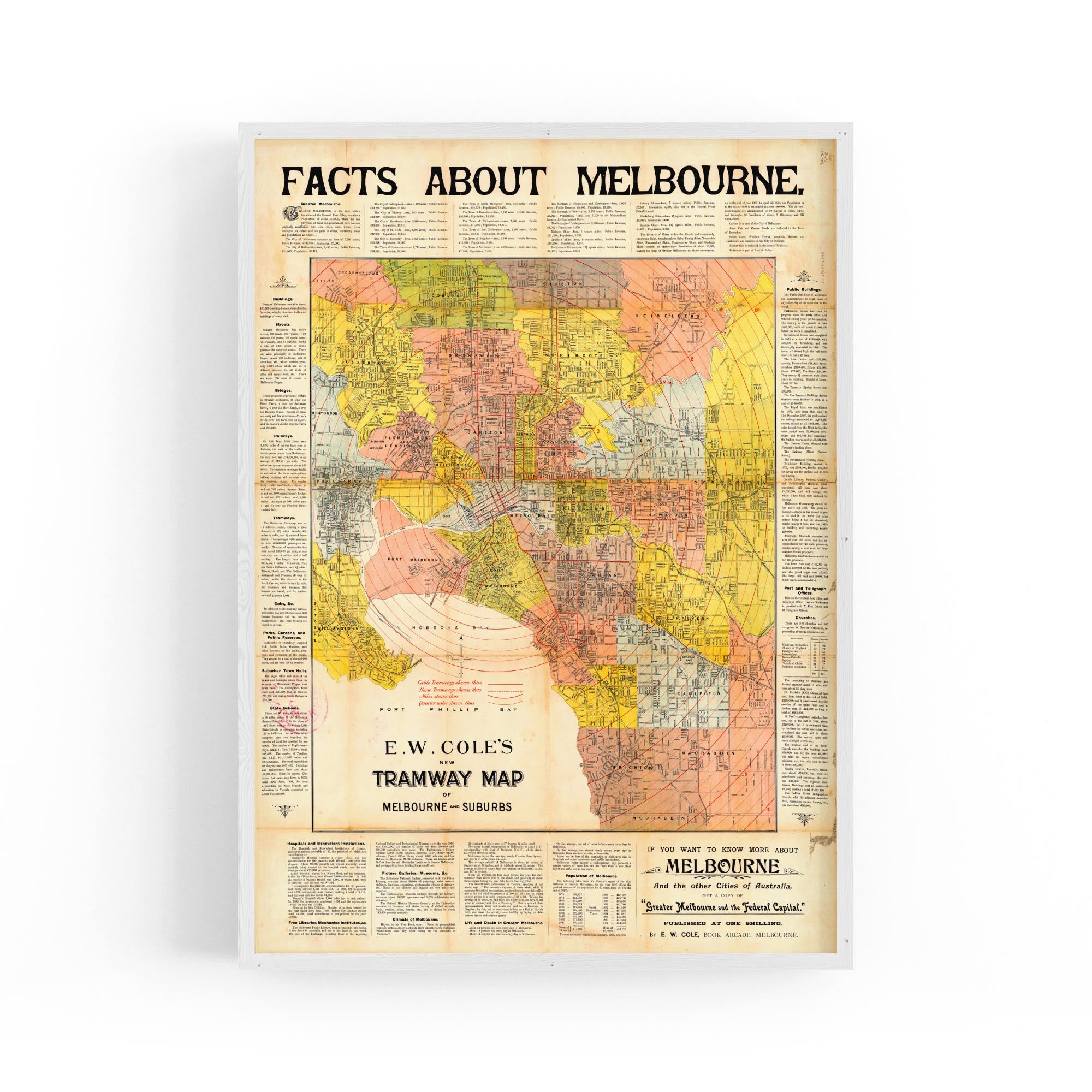 E.W. Cole's New Tramway Map of Melbourne And Suburbs (1900)
