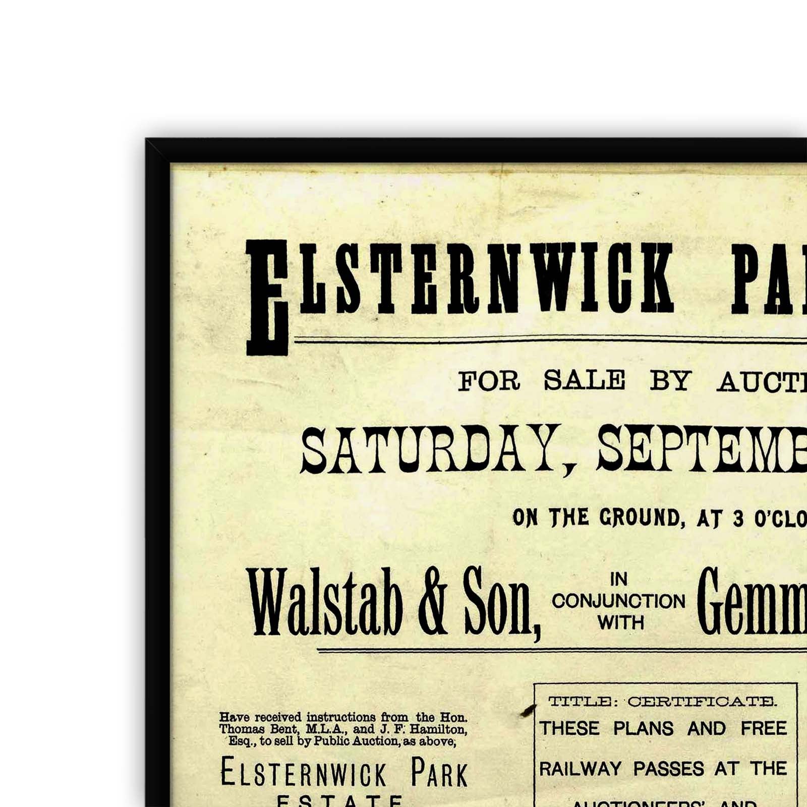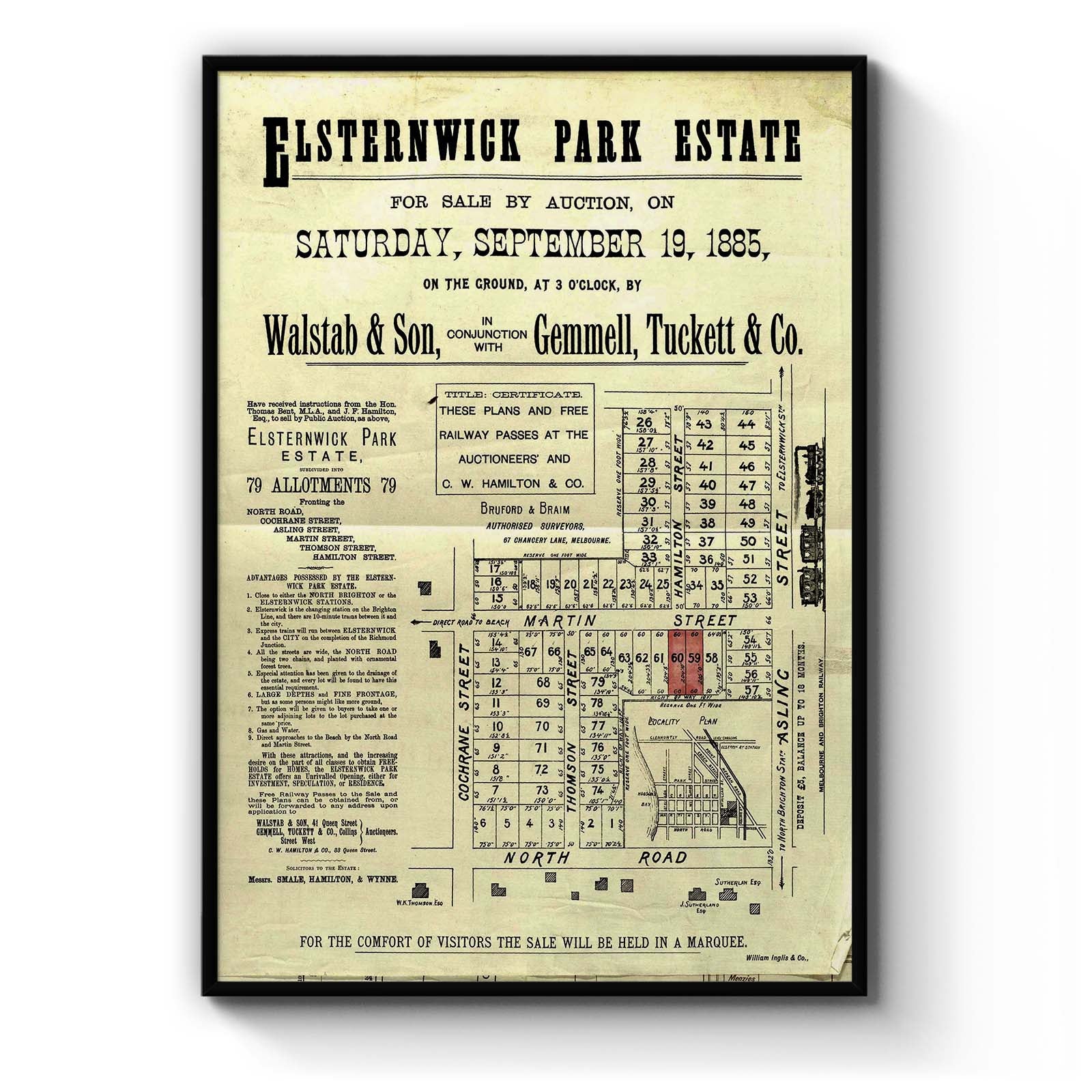 "For sale by auction, on Saturday, September 19, 1885, ... by Walstab & Son, in conjunction with Gemmell, Tuckett & Co."